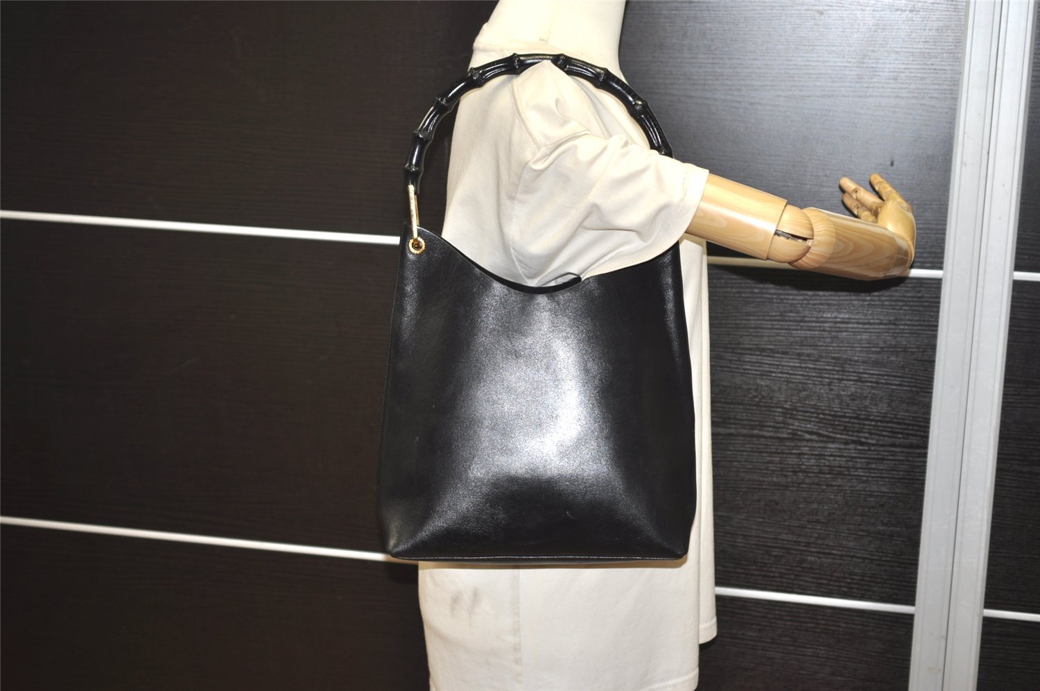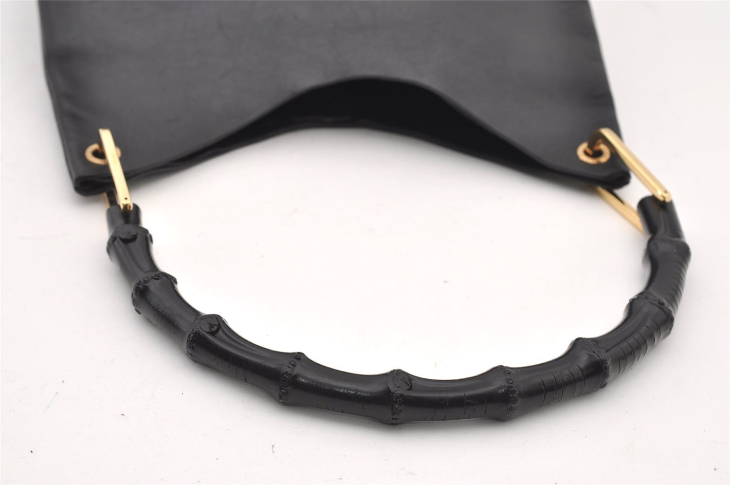 | Authentic GUCCI Vintage Bamboo Shoulder Hand Bag Purse Leather Black | |