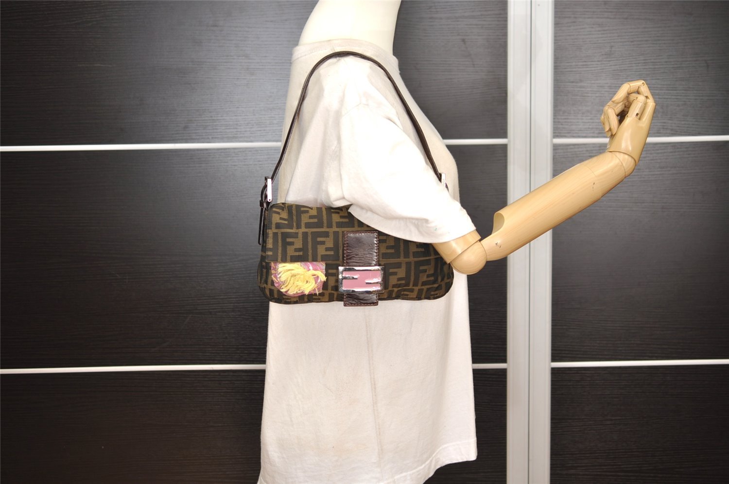 | Authentic FENDI Zucca Mamma Baguette Shoulder Bag Nylon Leather Brown | |