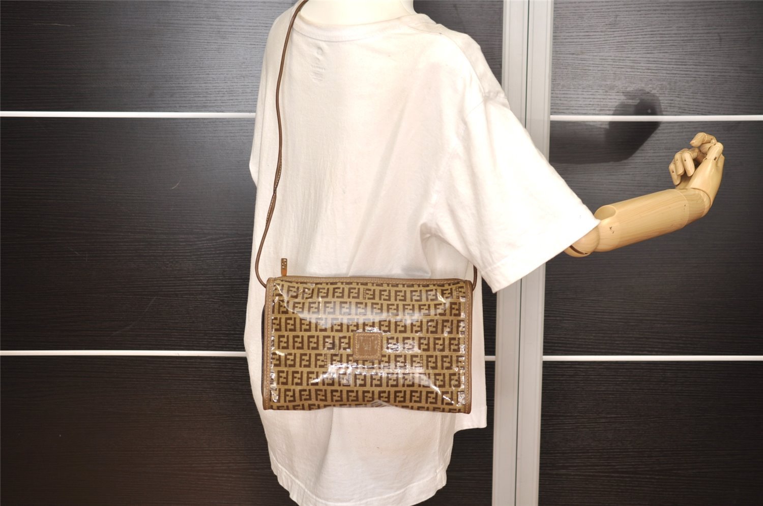 | Authentic FENDI Zucchino Shoulder Cross Body Bag Purse PVC Leather Brown | |