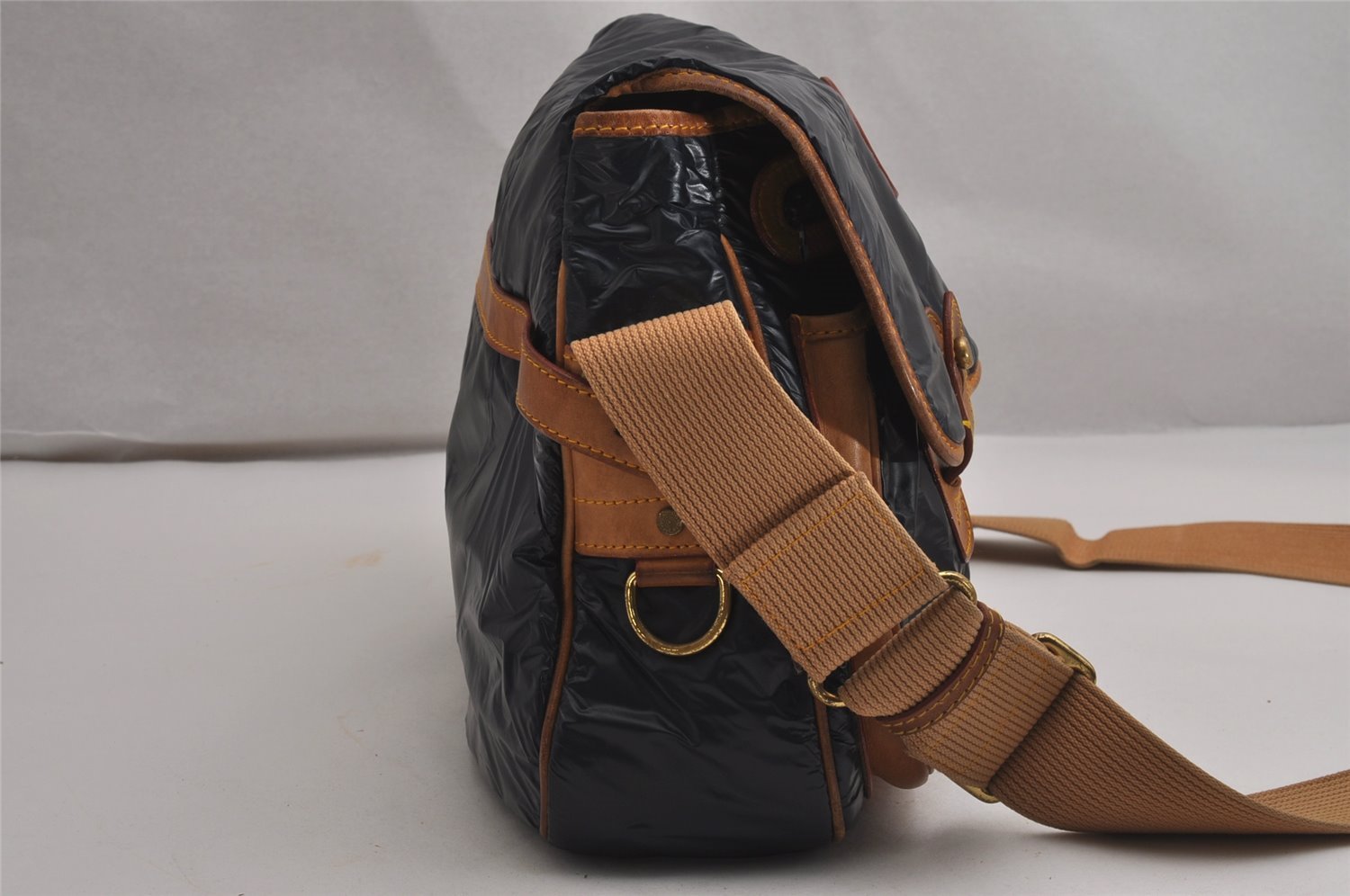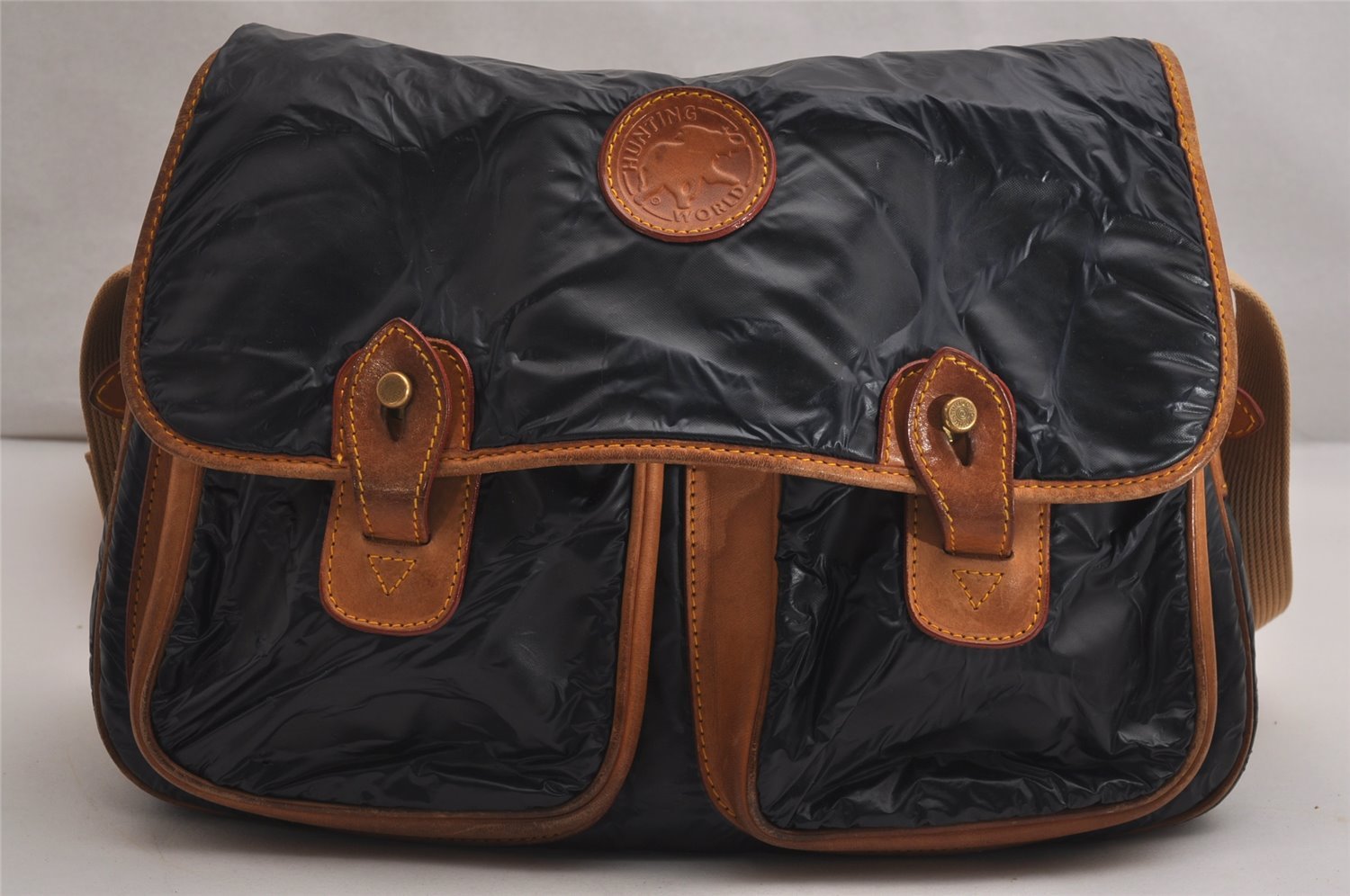 | Authentic HUNTING WORLD Logos Shoulder Cross Bag PVC Leather Navy | |