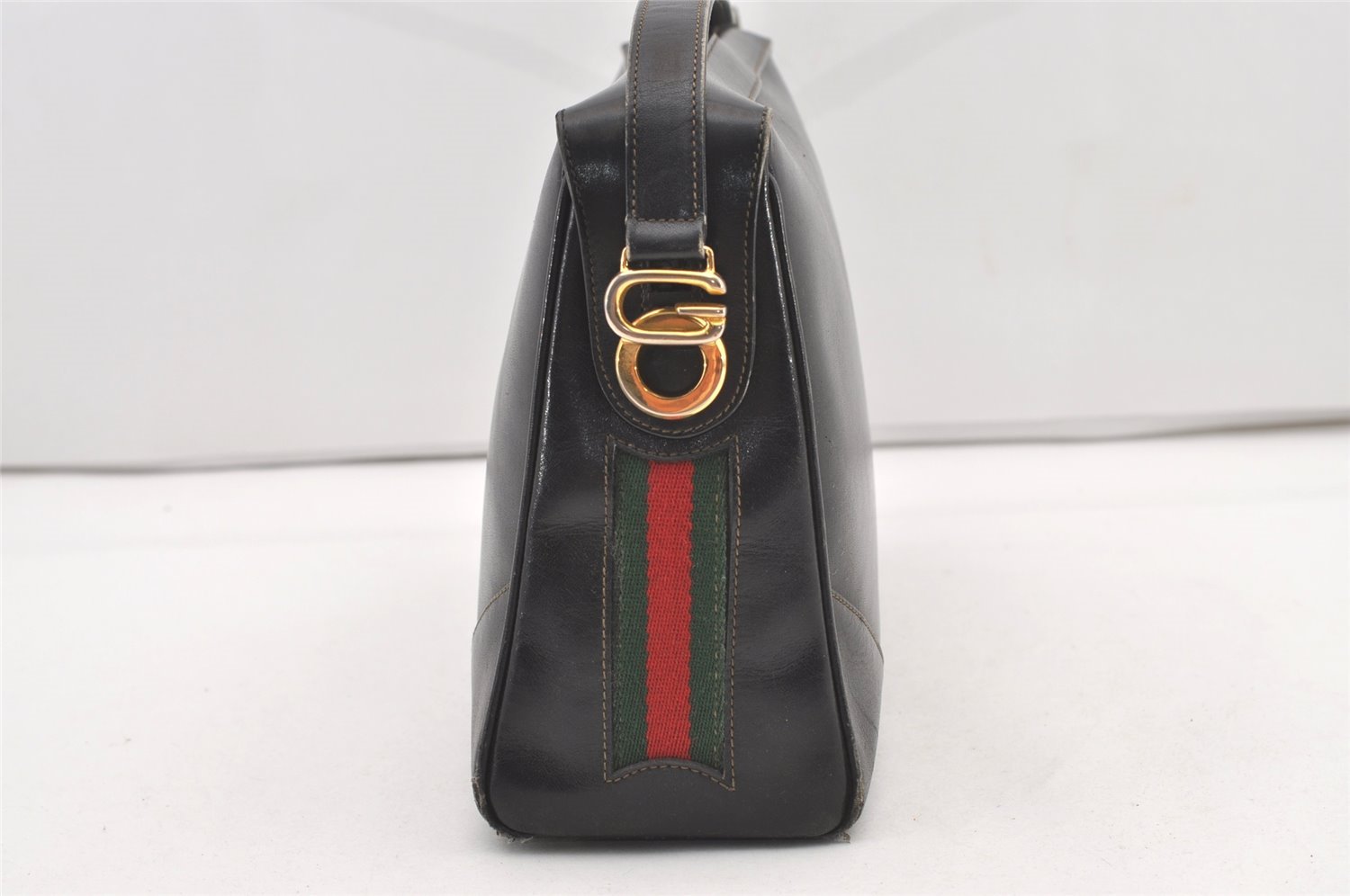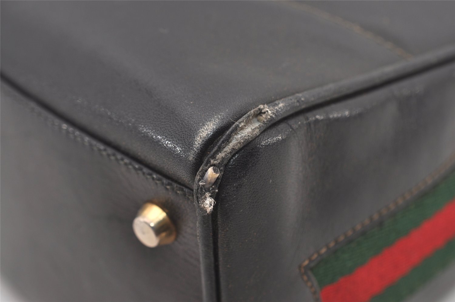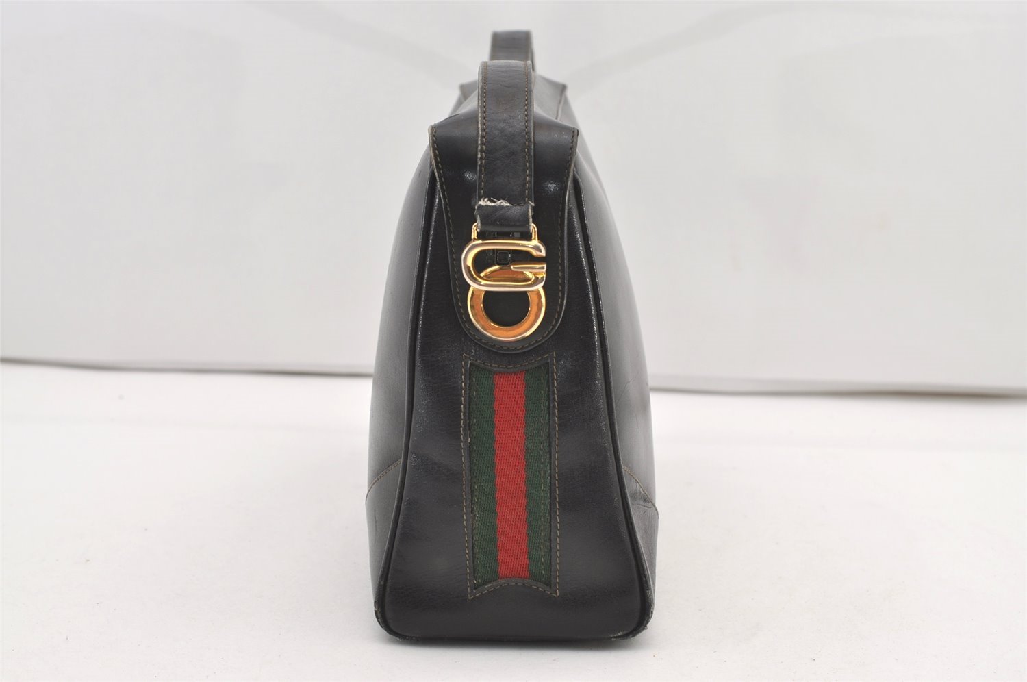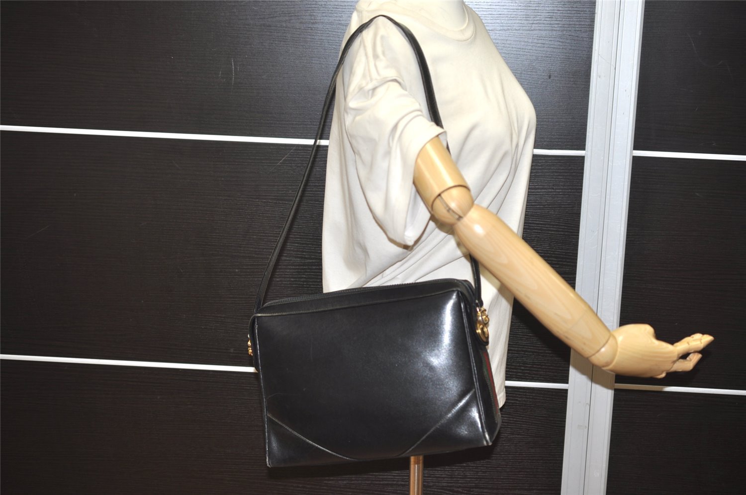 | Authentic GUCCI Web Sherry Line Shoulder Bag Purse Leather Black Junk | |