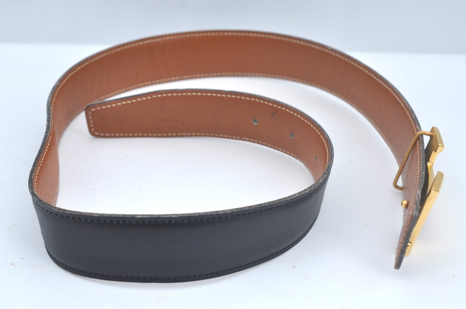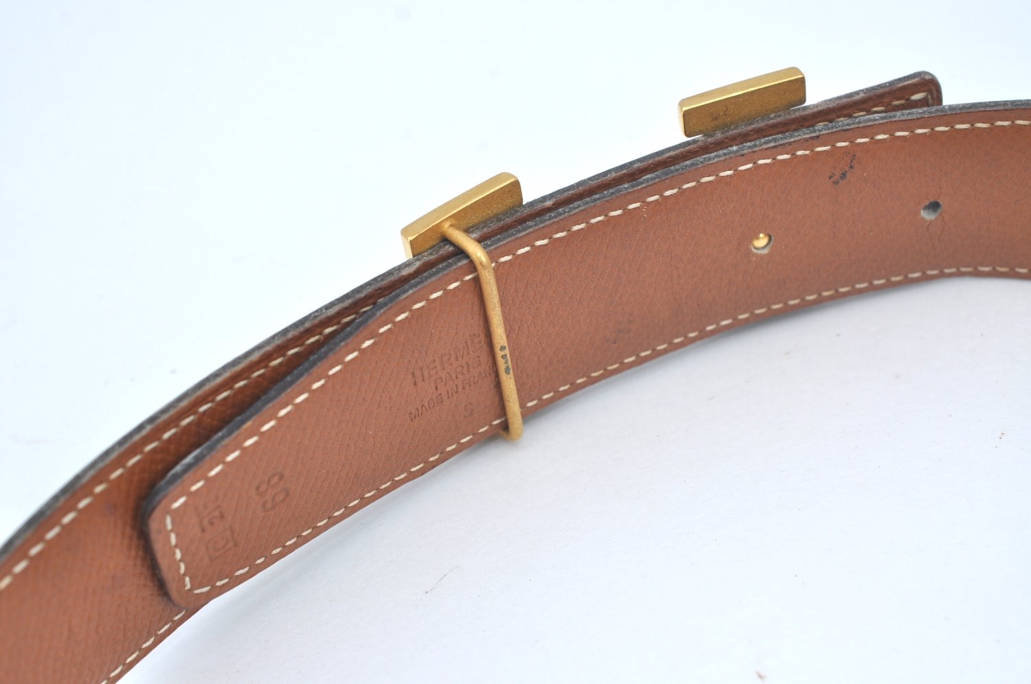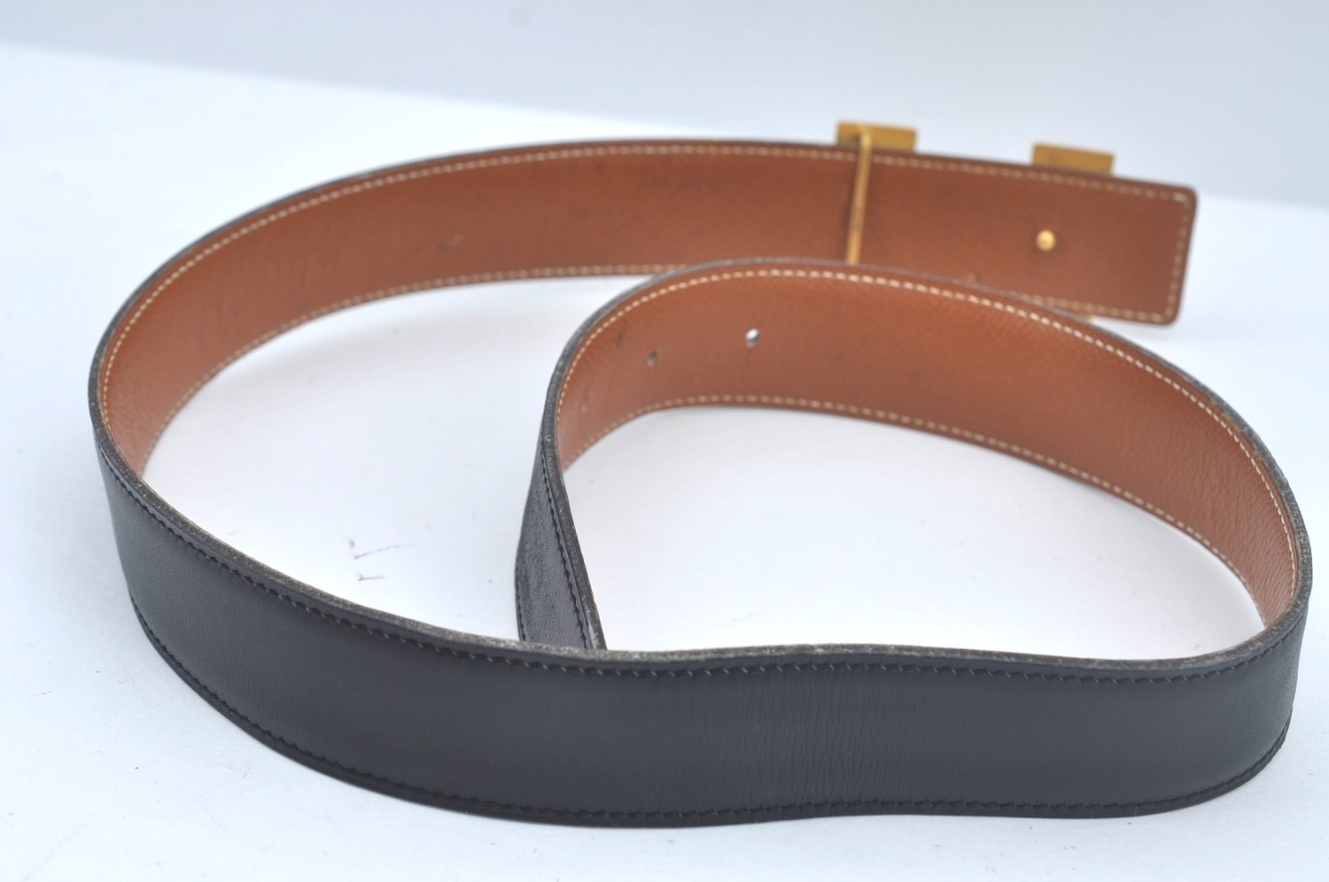 | Authentic HERMES Constance Leather Belt Size 68cm 26.8" Brown Black | |