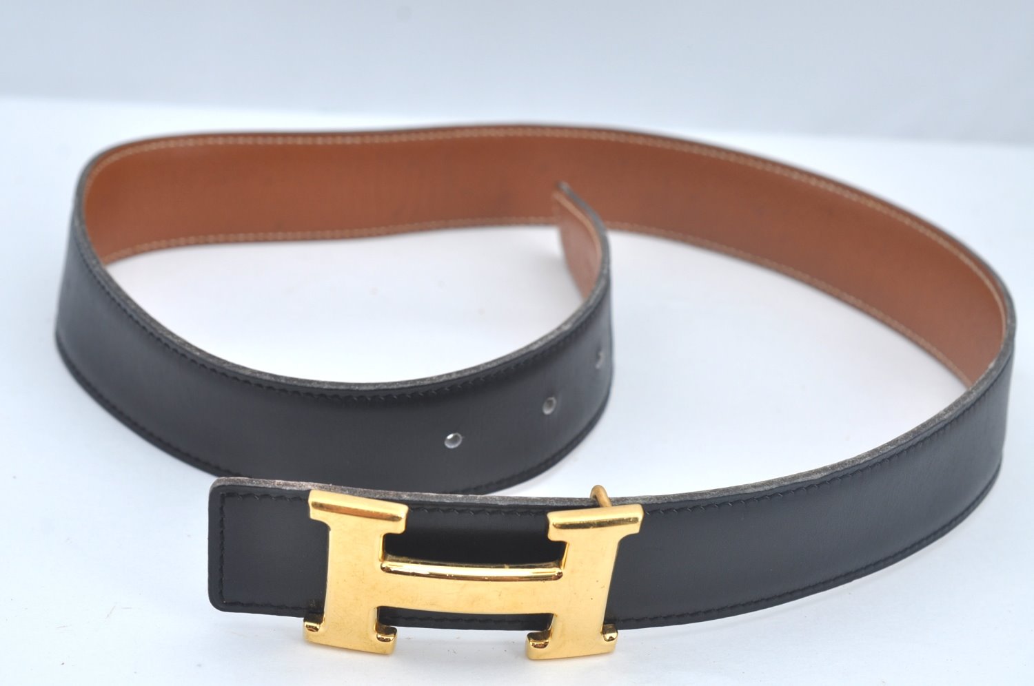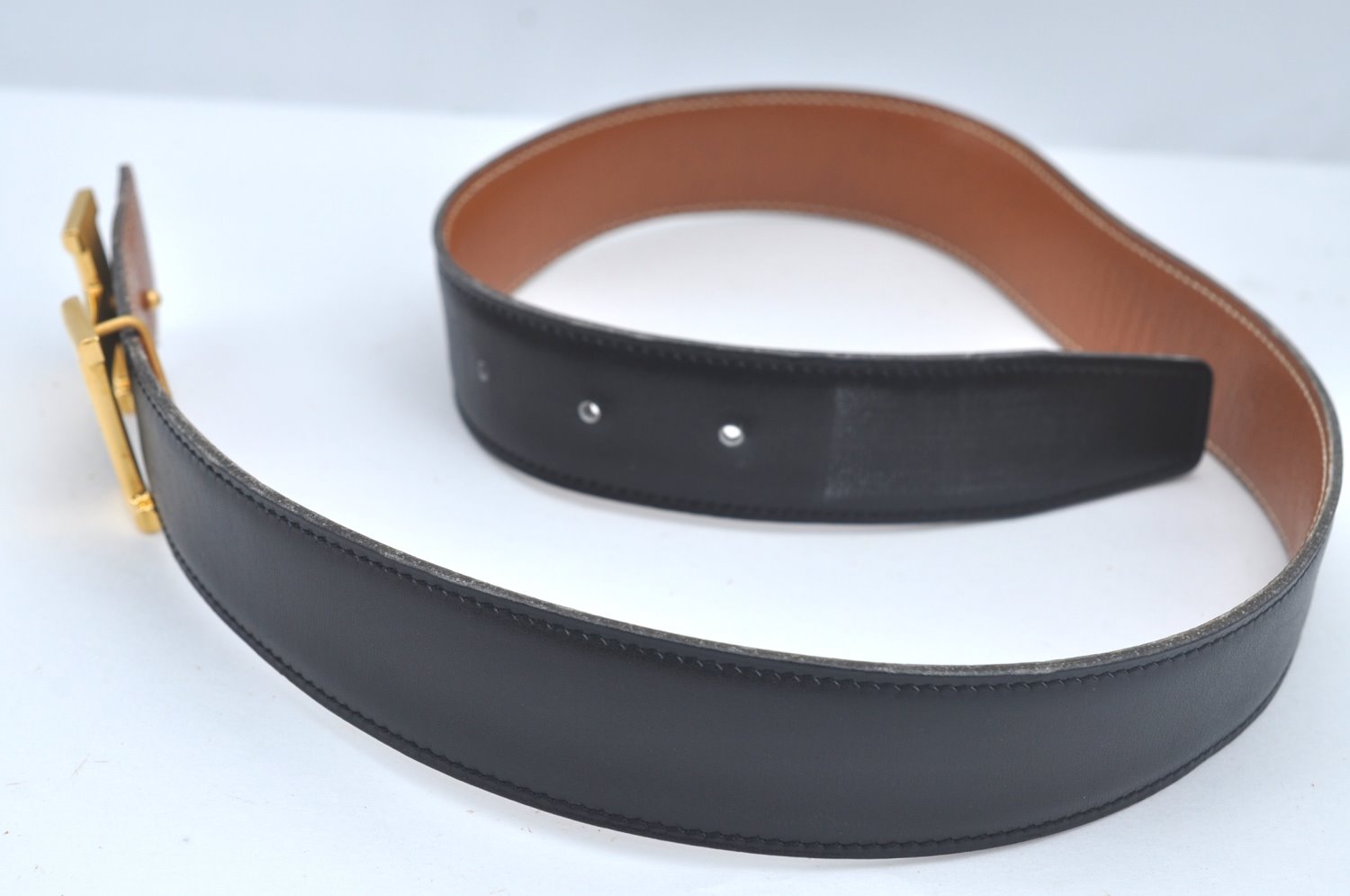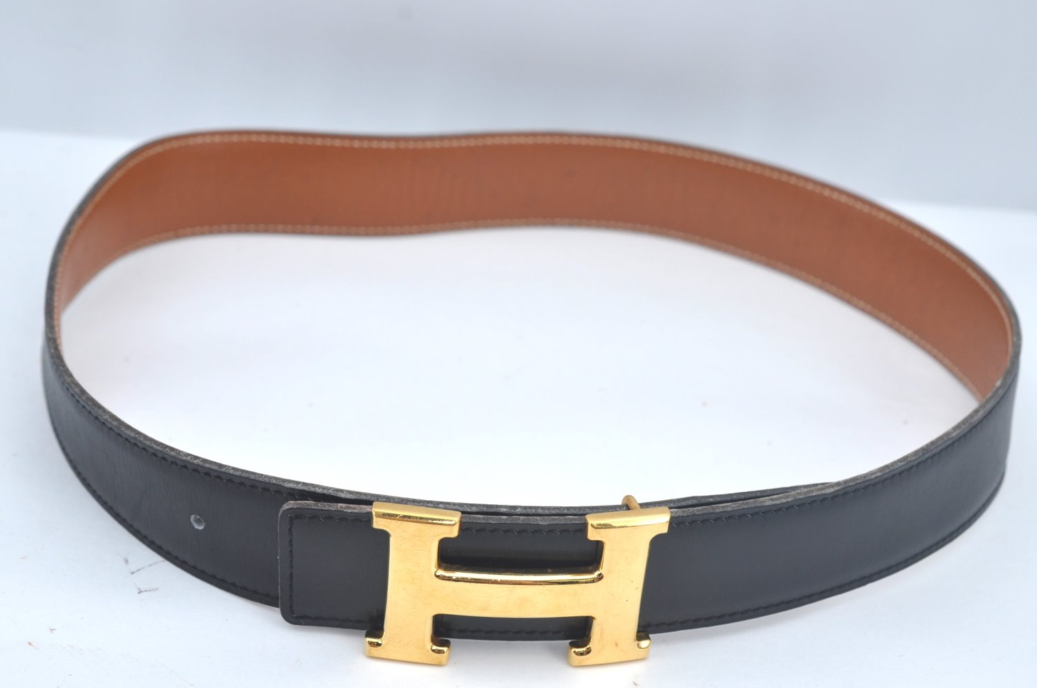 | Authentic HERMES Constance Leather Belt Size 68cm 26.8" Brown Black | |