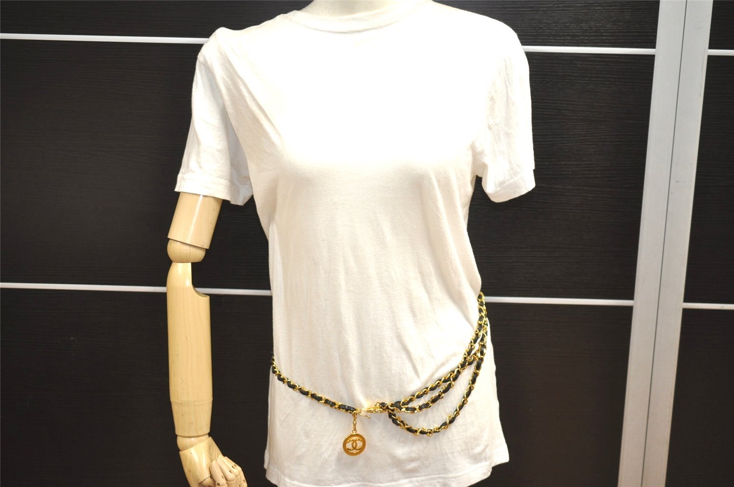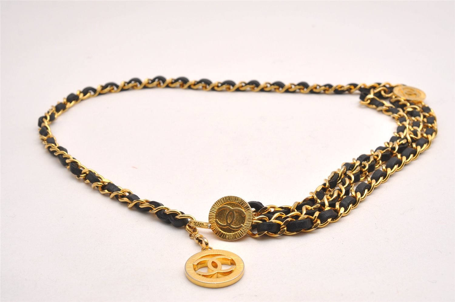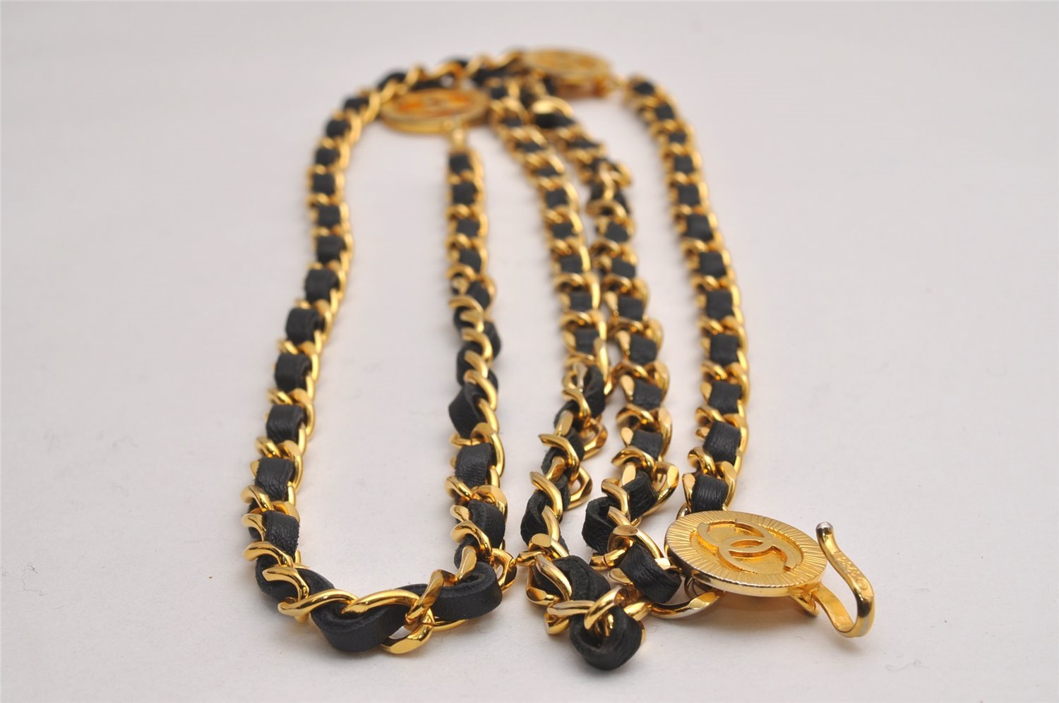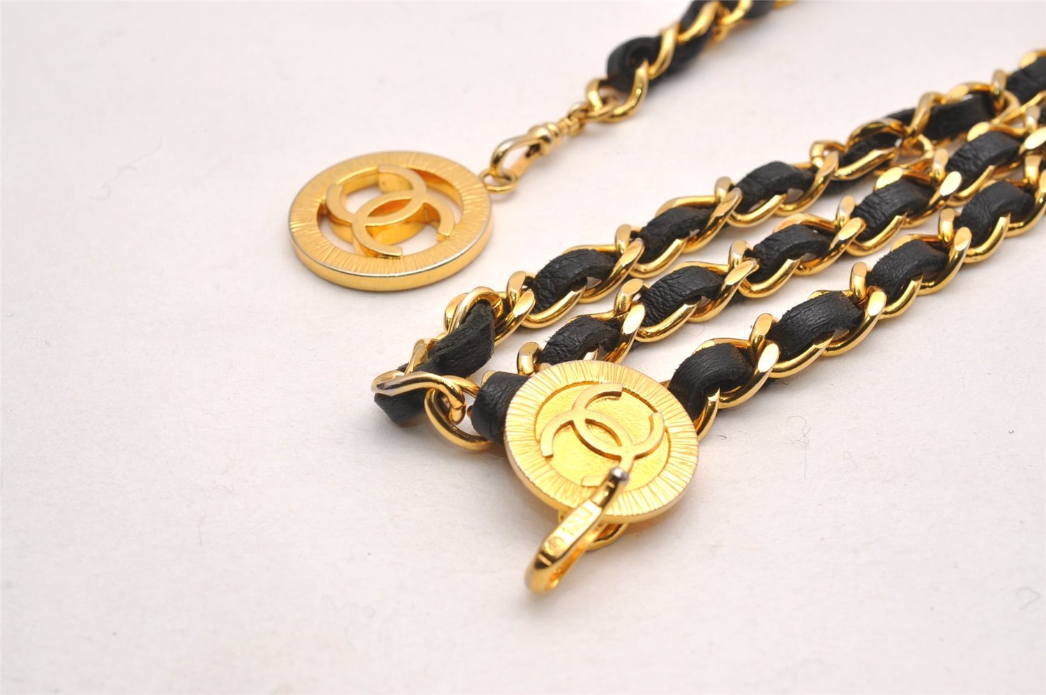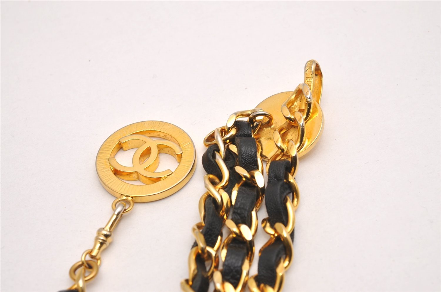 | Authentic CHANEL Triple Chain Belt CC 35.2" Gold Plating Leather Black Box | |