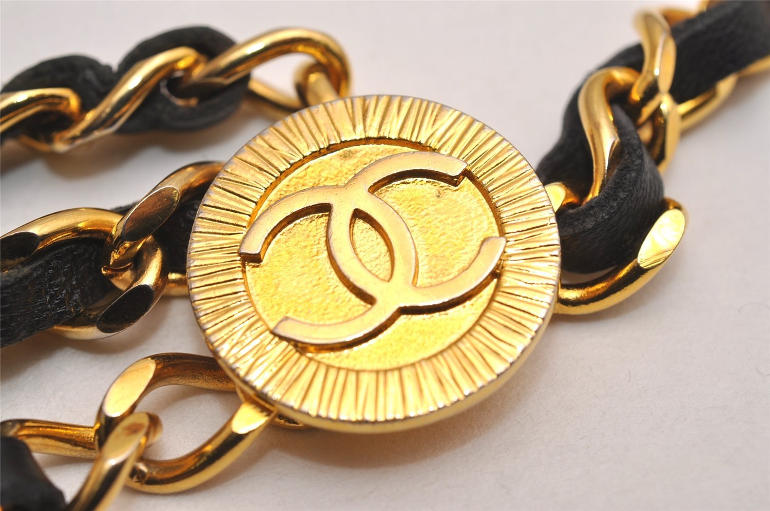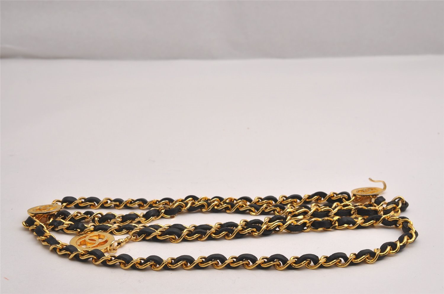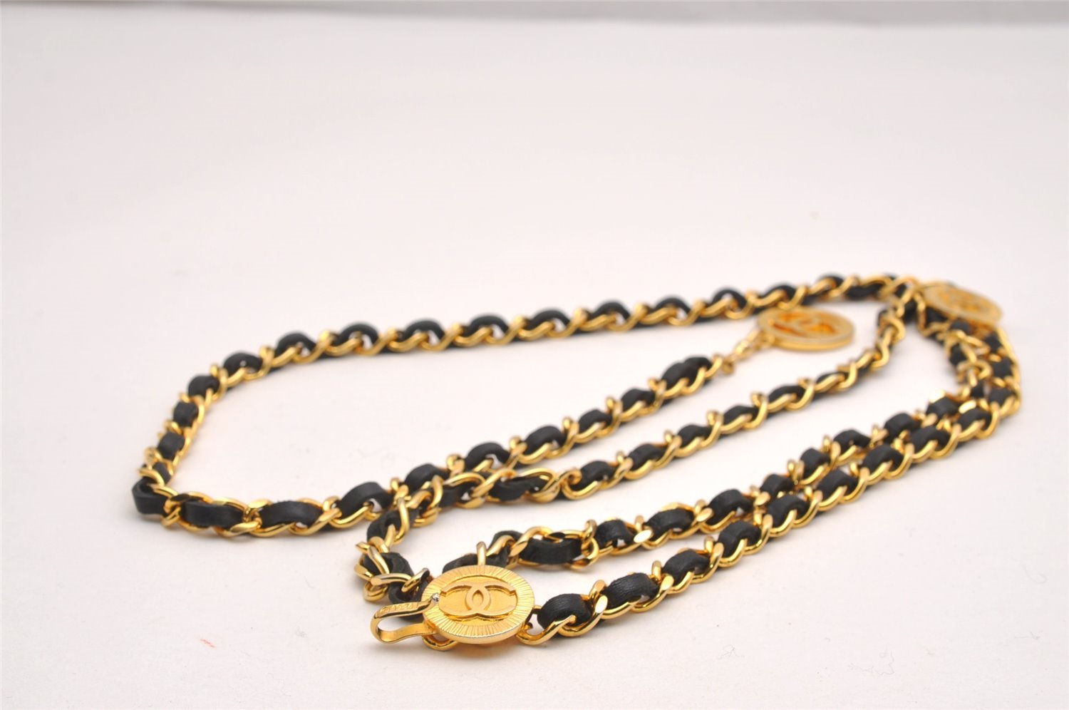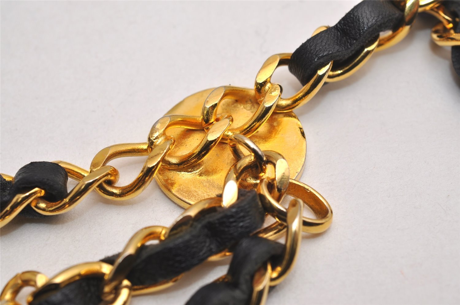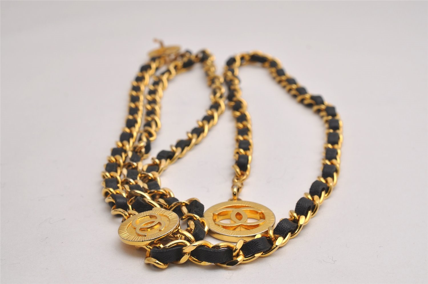 | Authentic CHANEL Triple Chain Belt CC 35.2" Gold Plating Leather Black Box | |