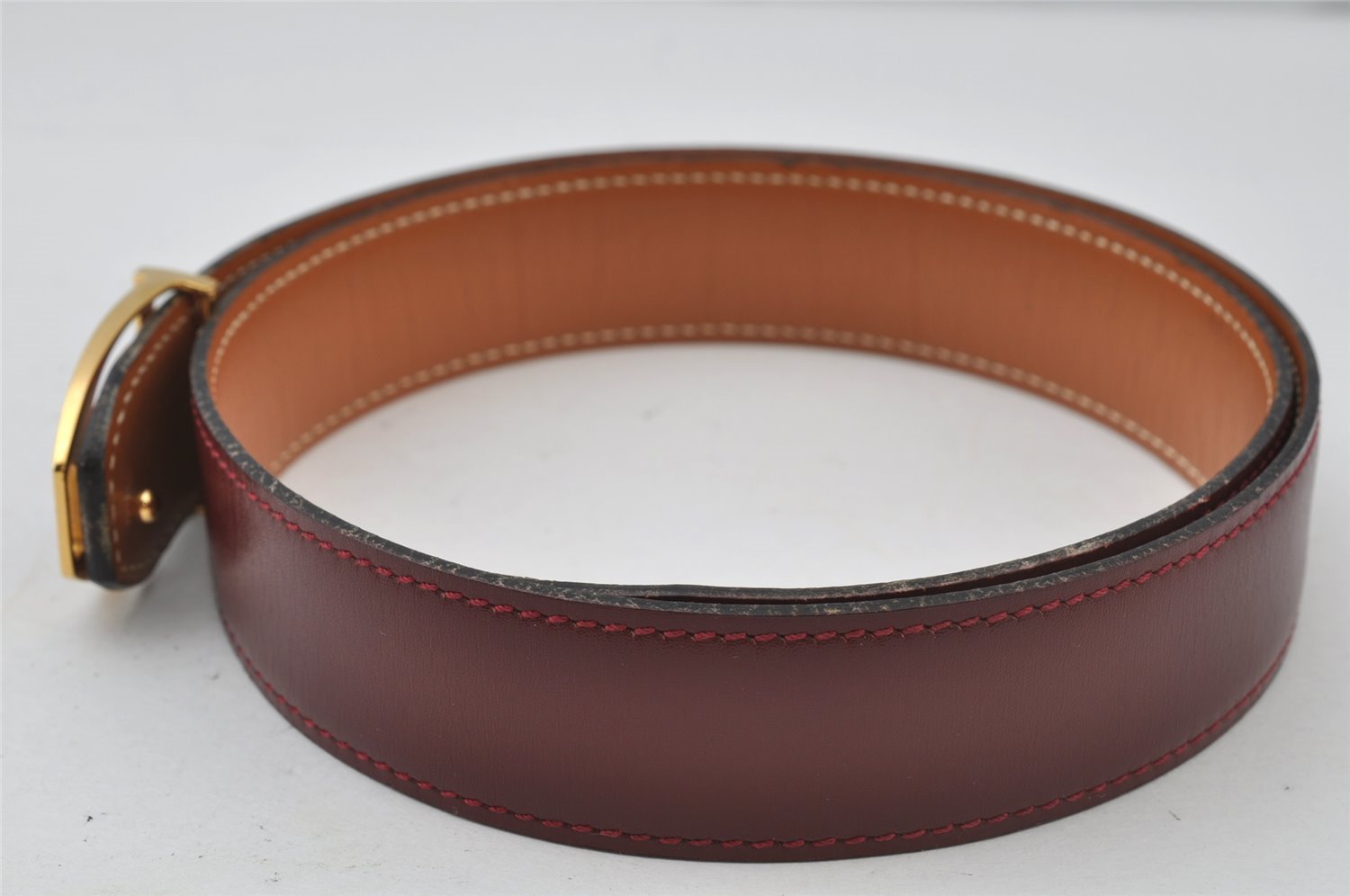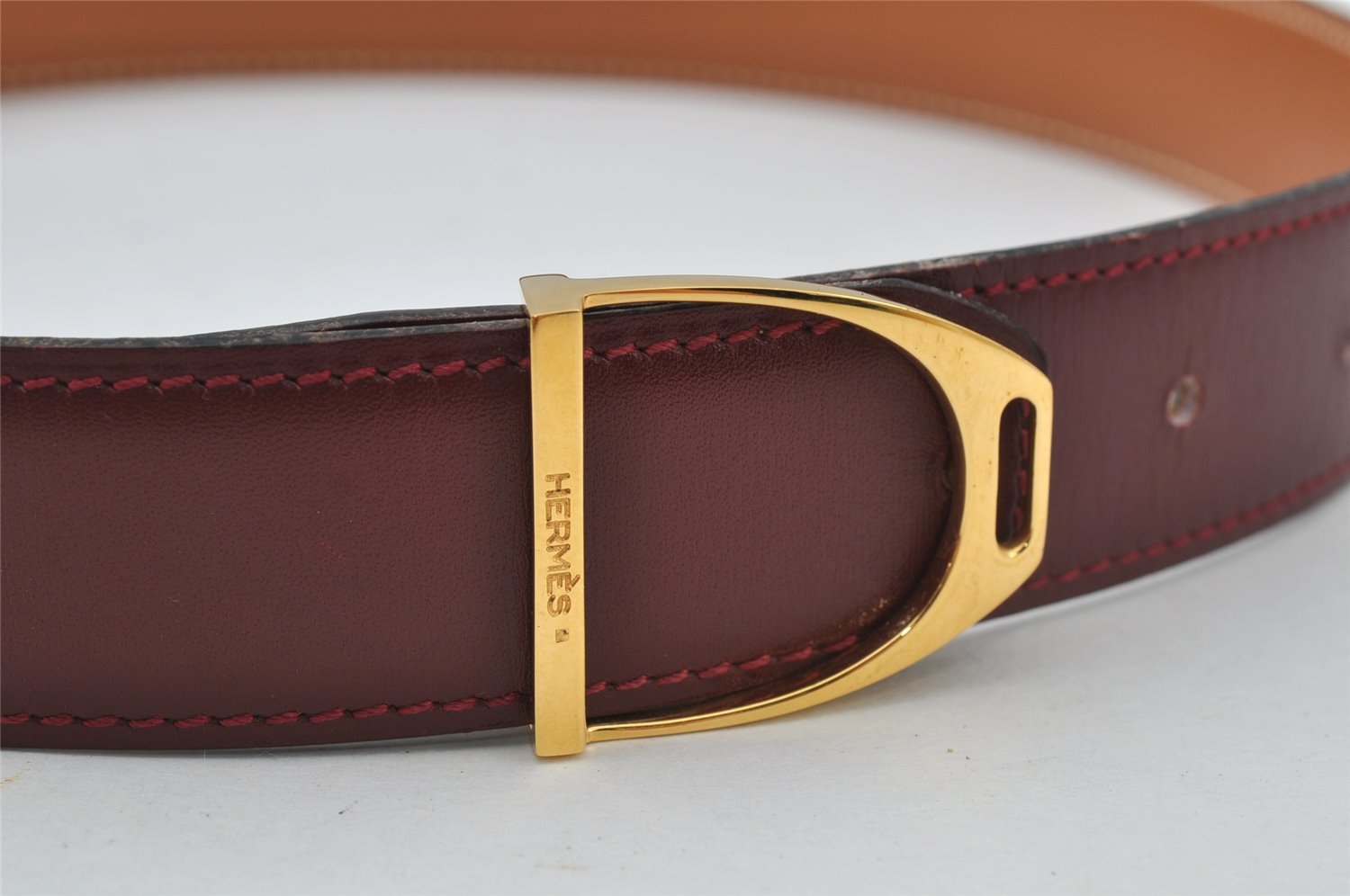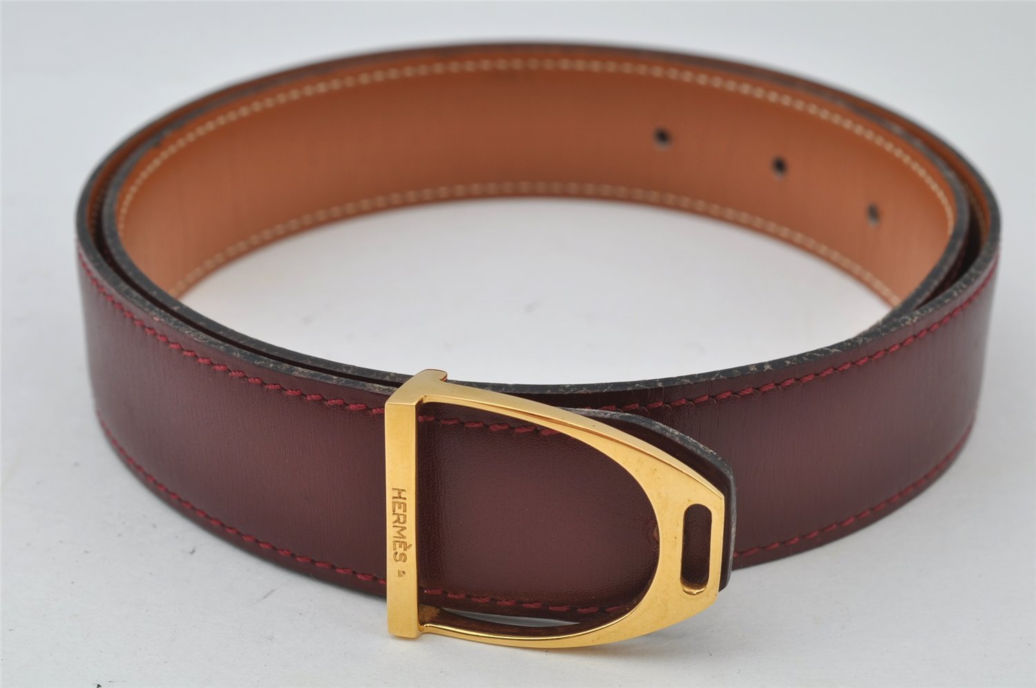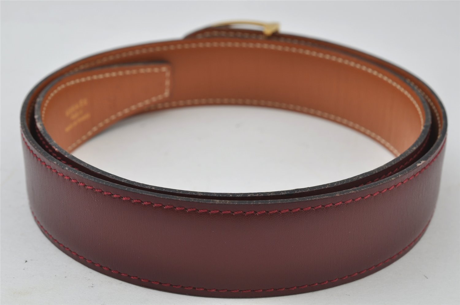 | Authentic HERMES Etrier Leather Belt Size 70cm 27.6" Bordeaux Brown | |