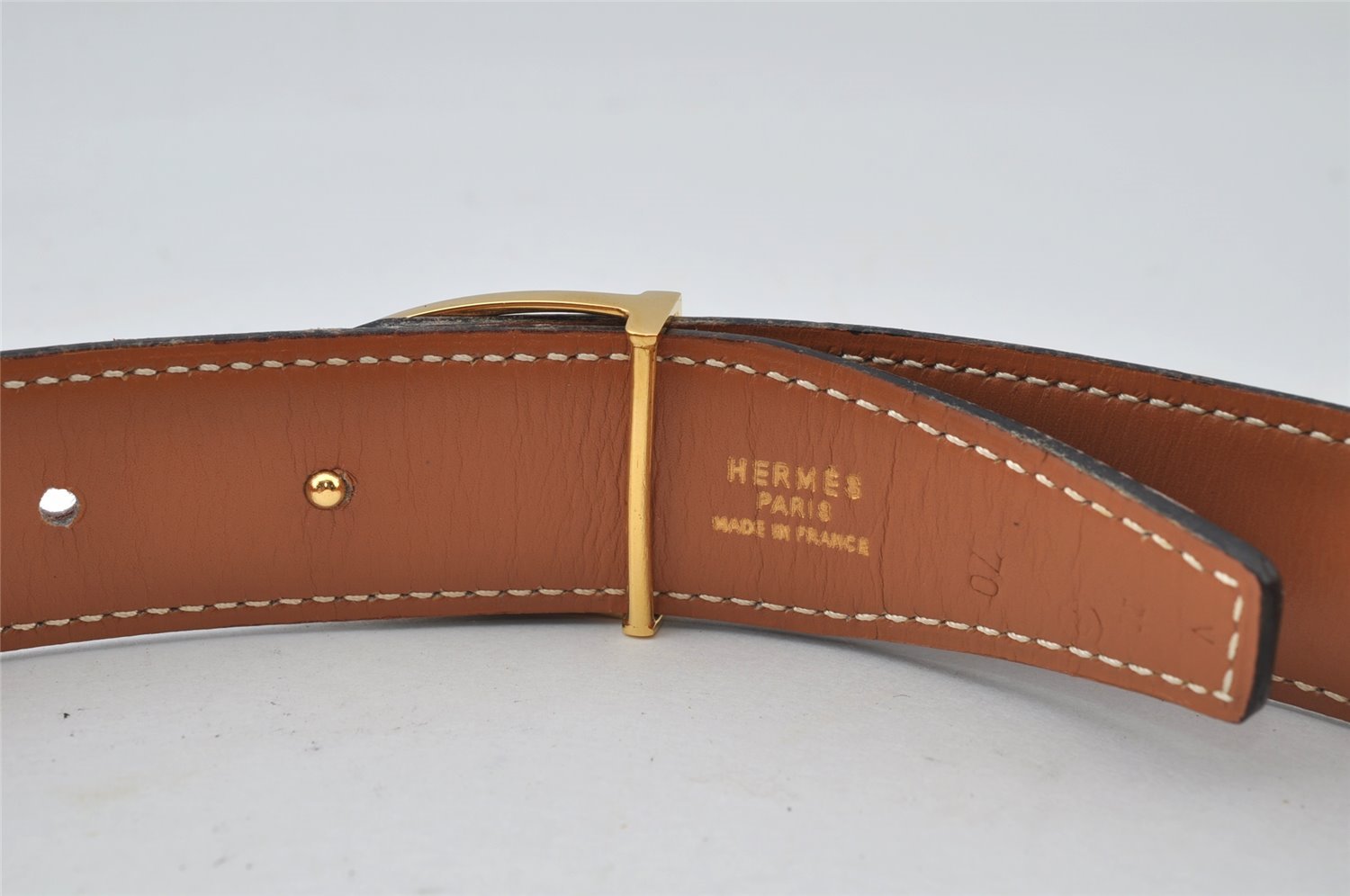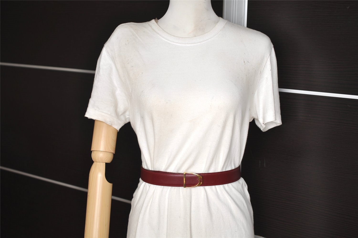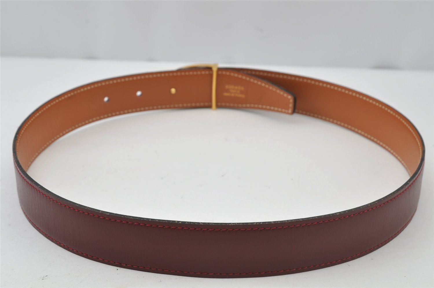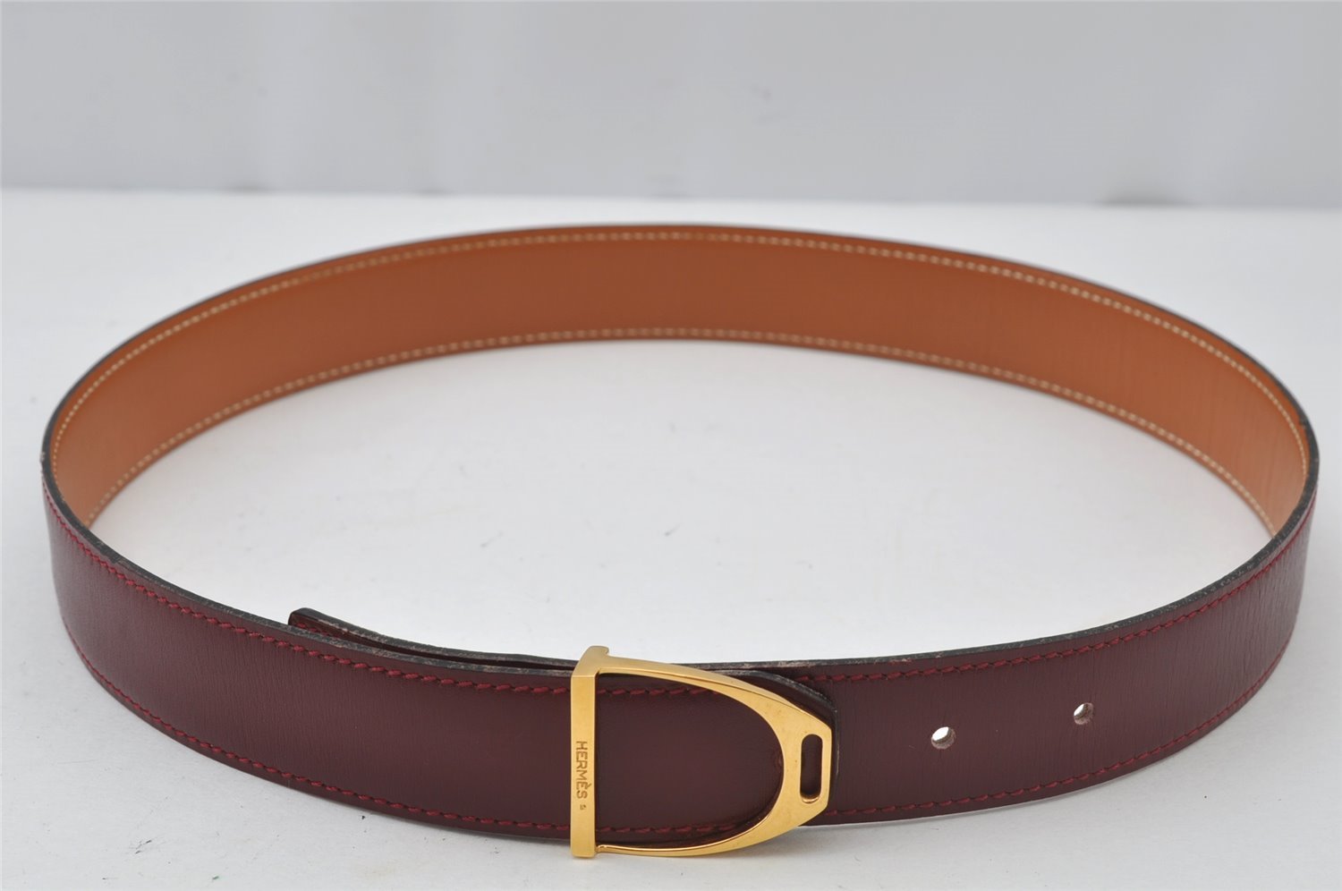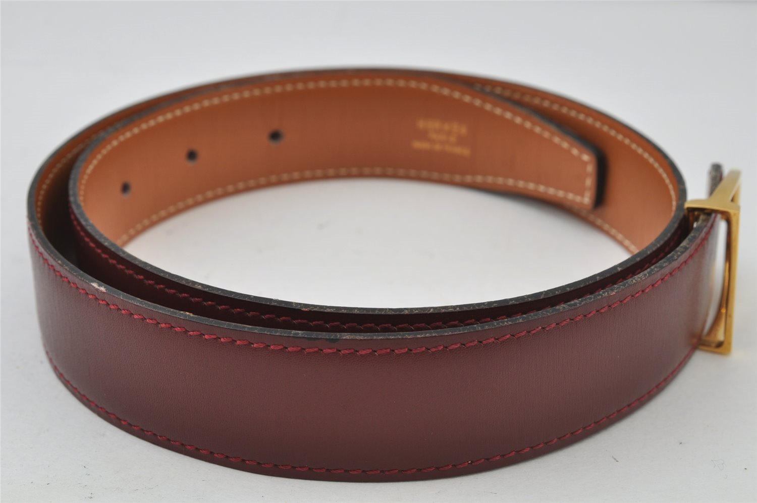 | Authentic HERMES Etrier Leather Belt Size 70cm 27.6" Bordeaux Brown | |