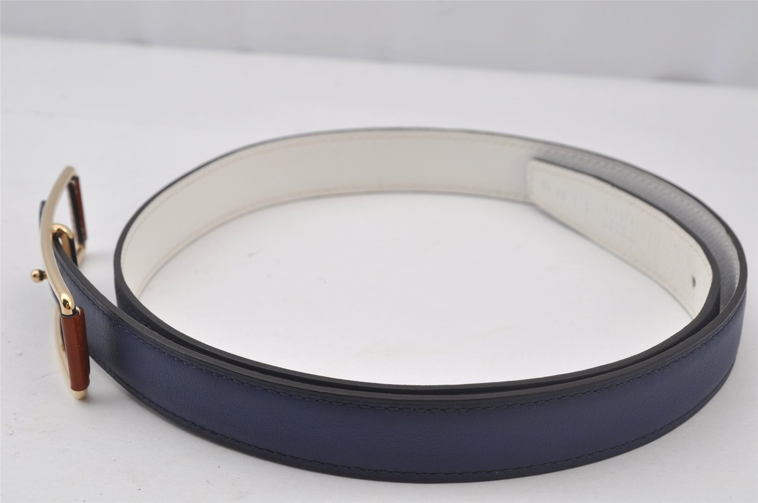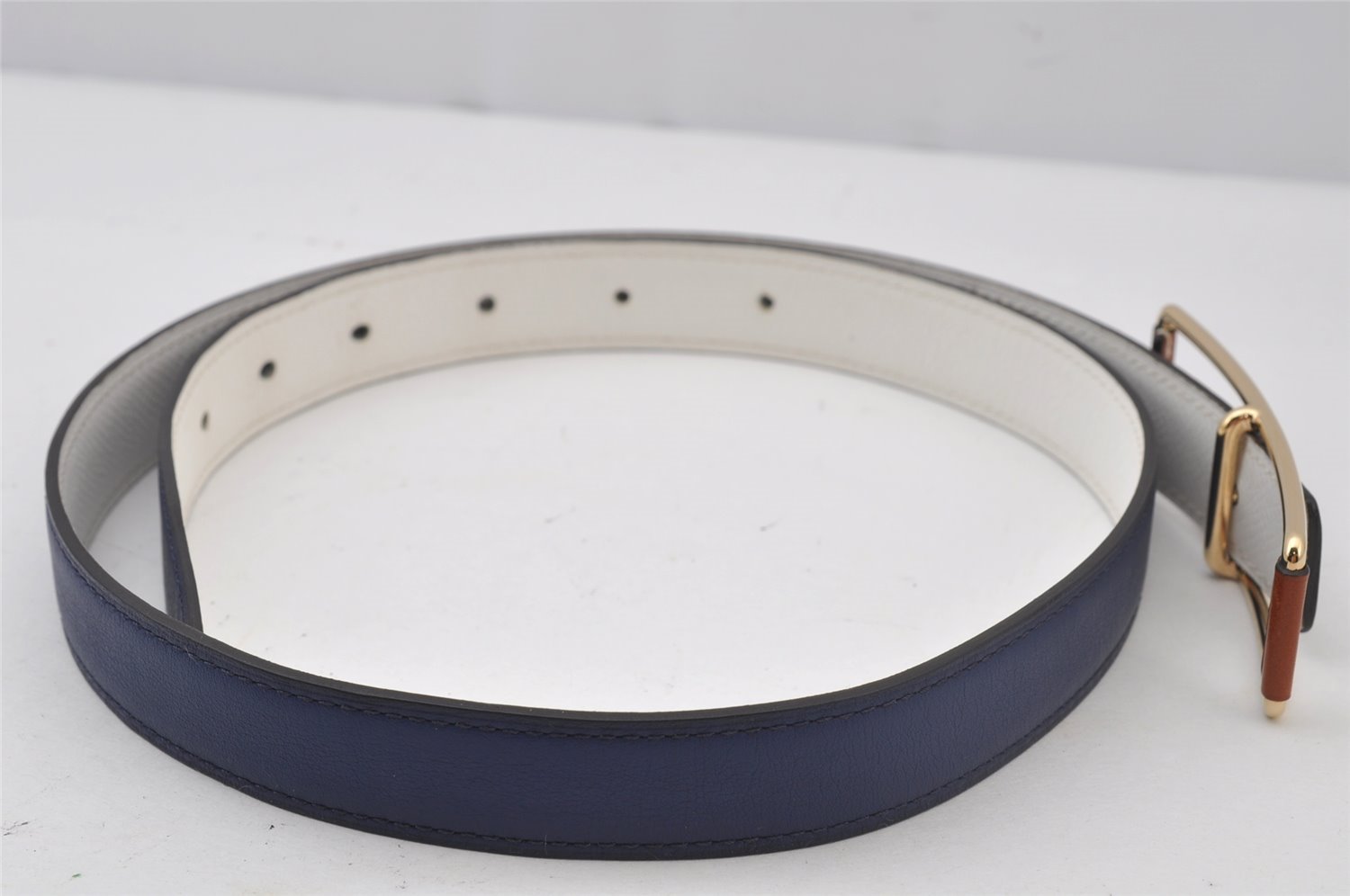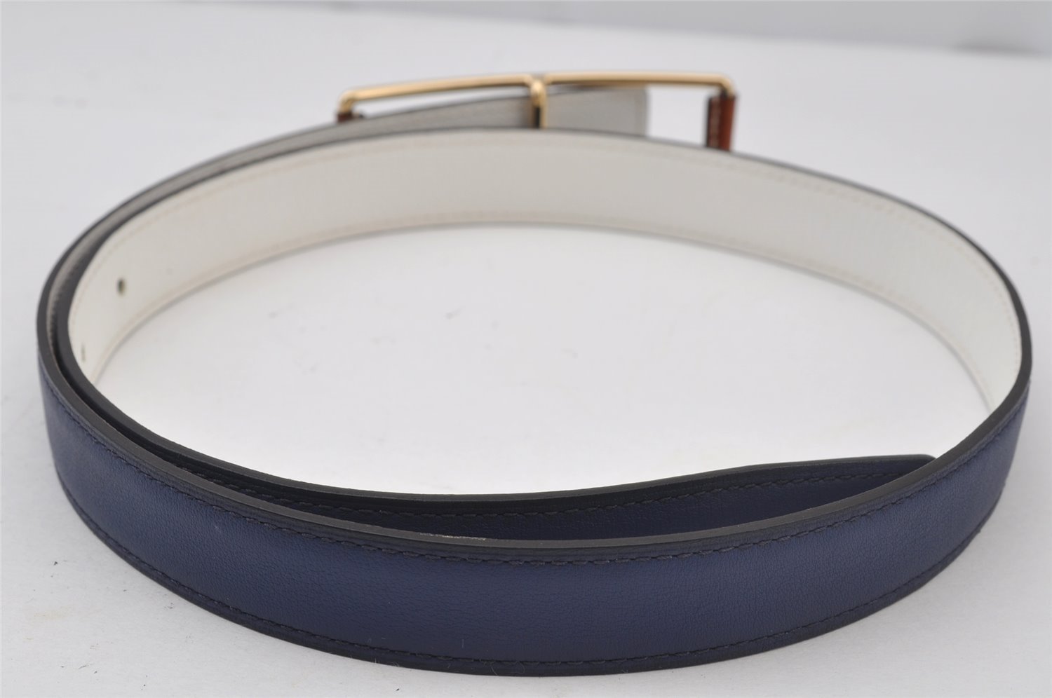 | Authentic HERMES Leather Reversible Belt Size 75cm 29.5" Blue White | |