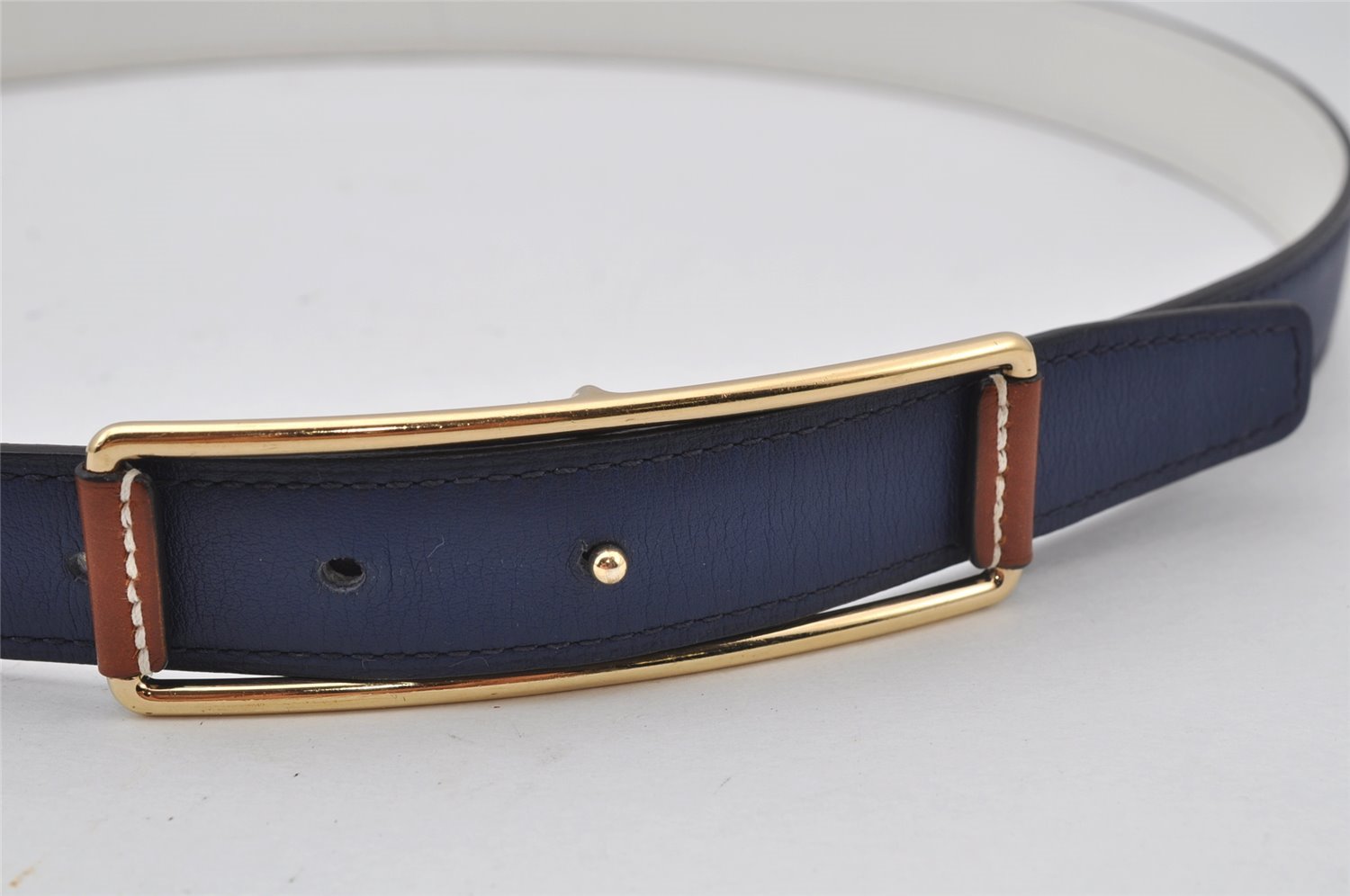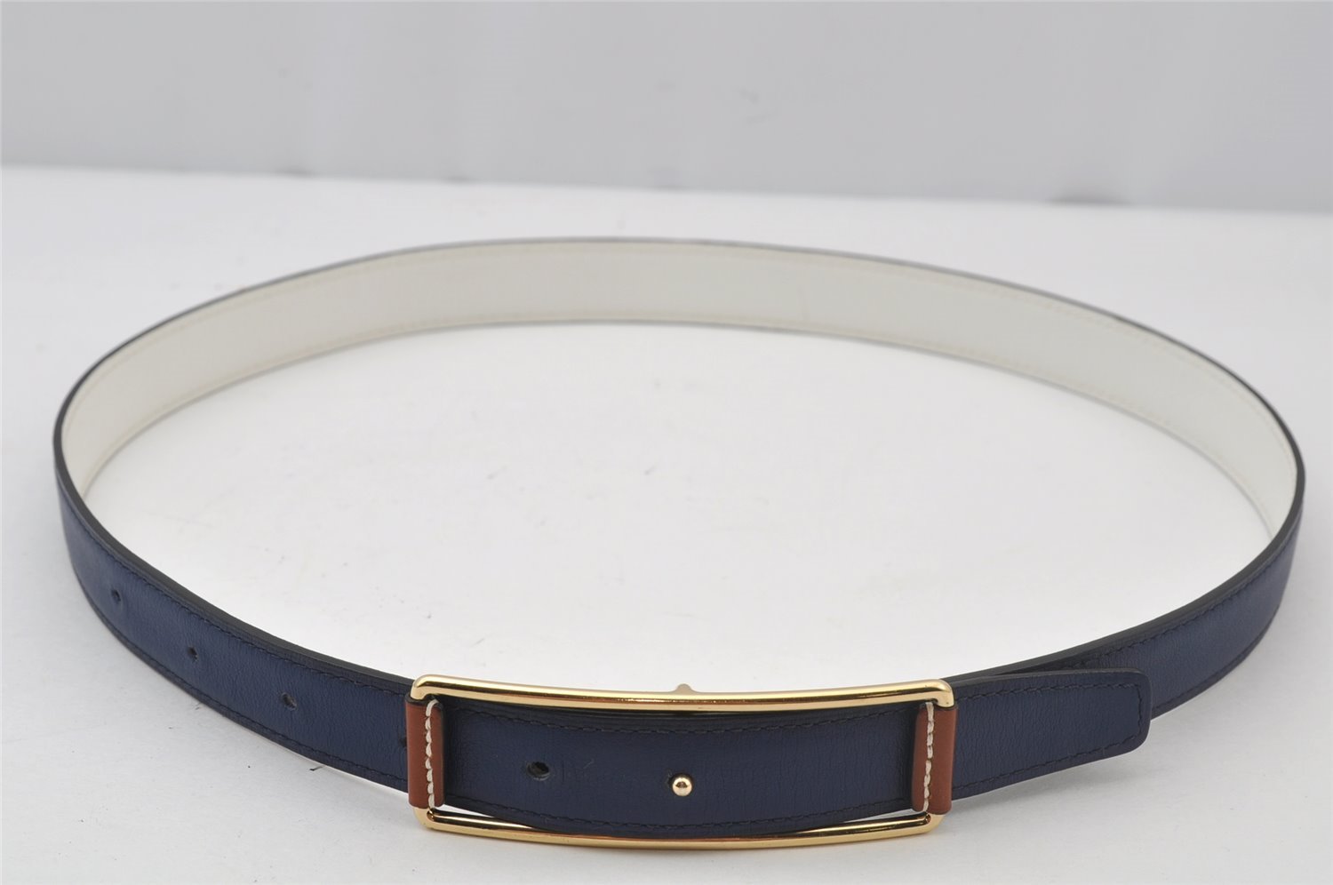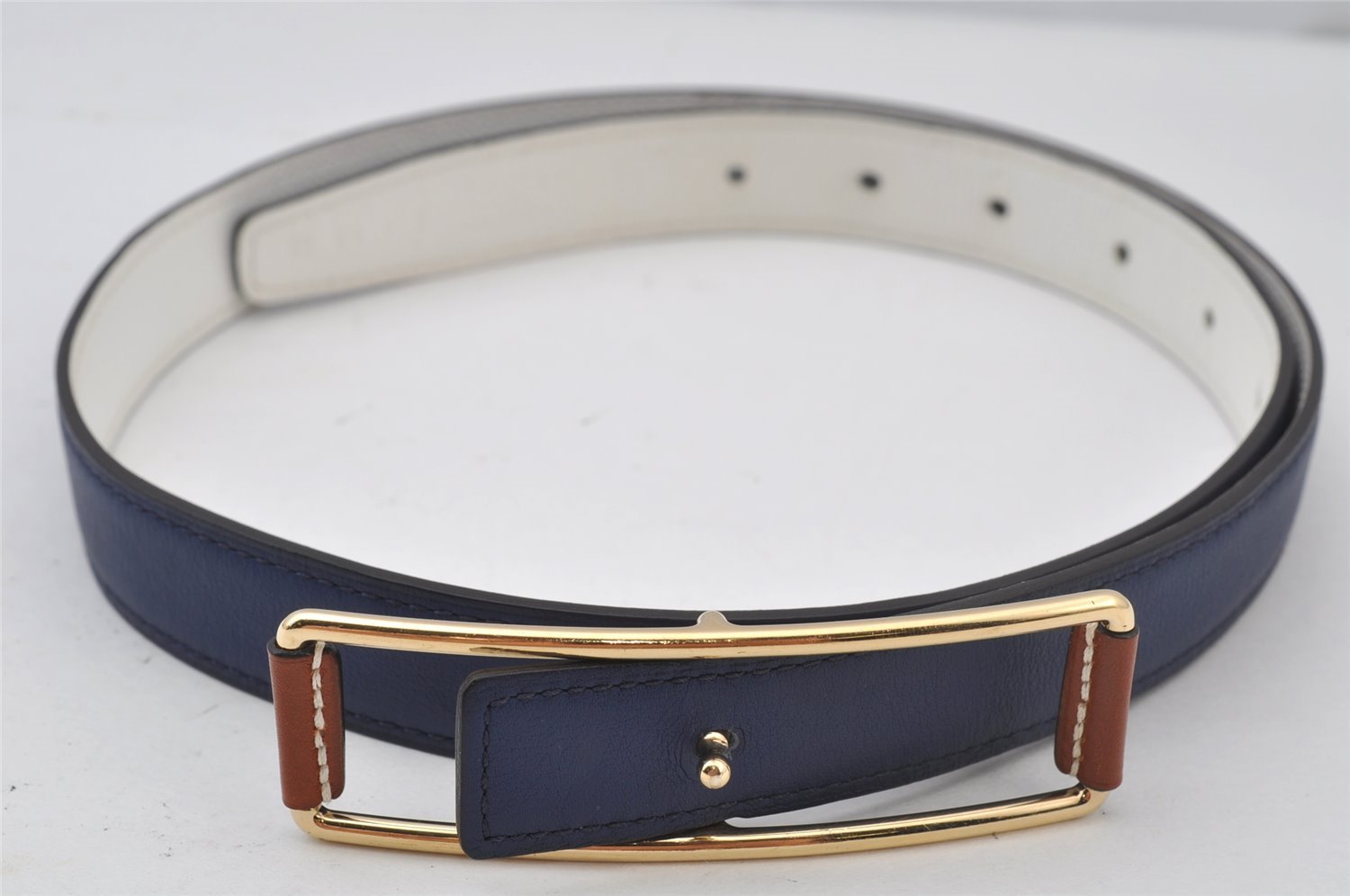 | Authentic HERMES Leather Reversible Belt Size 75cm 29.5" Blue White | |