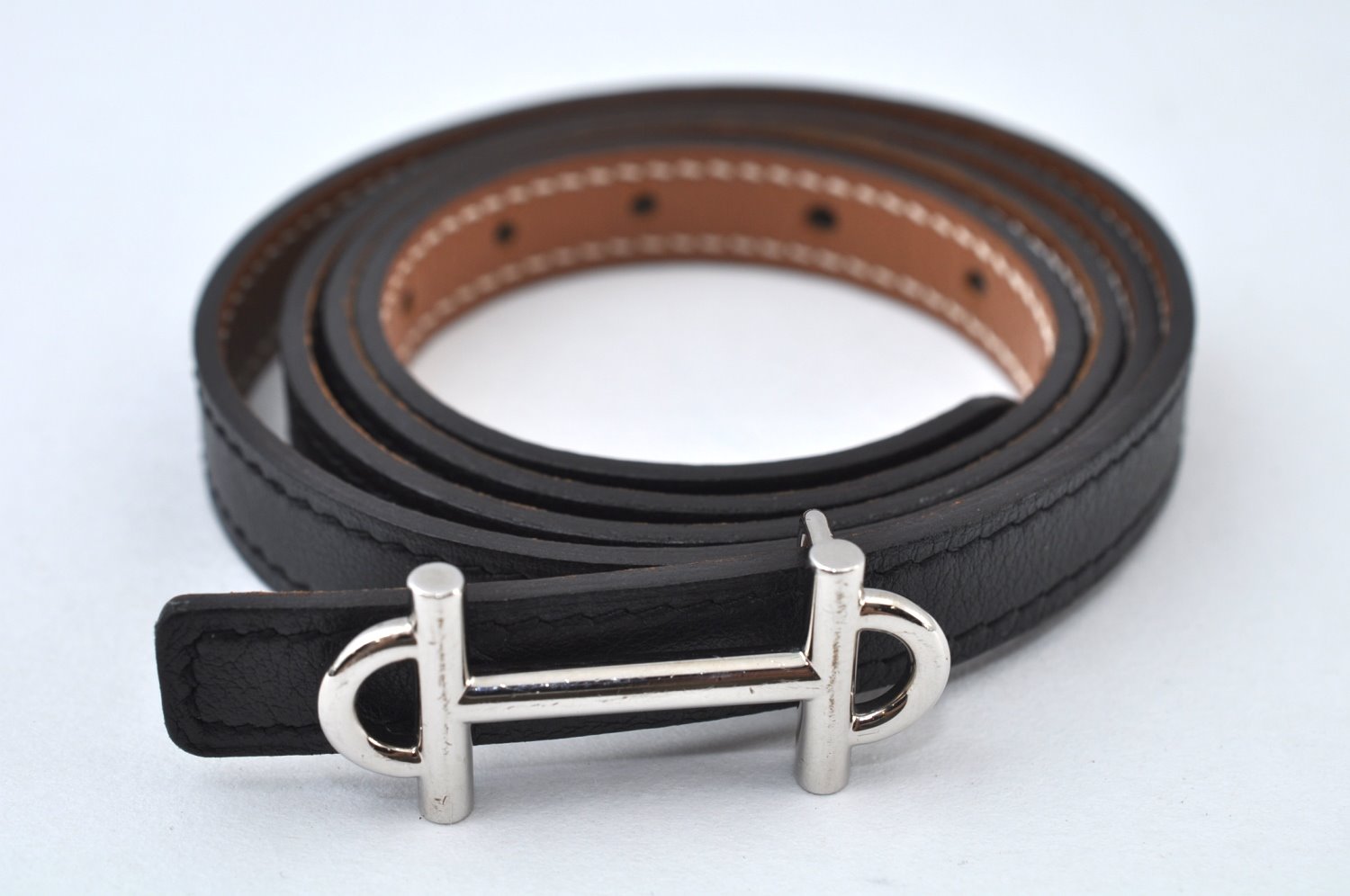 | Authentic HERMES Gamma Leather Belt Size 80cm 31.5inches Black Brown | |