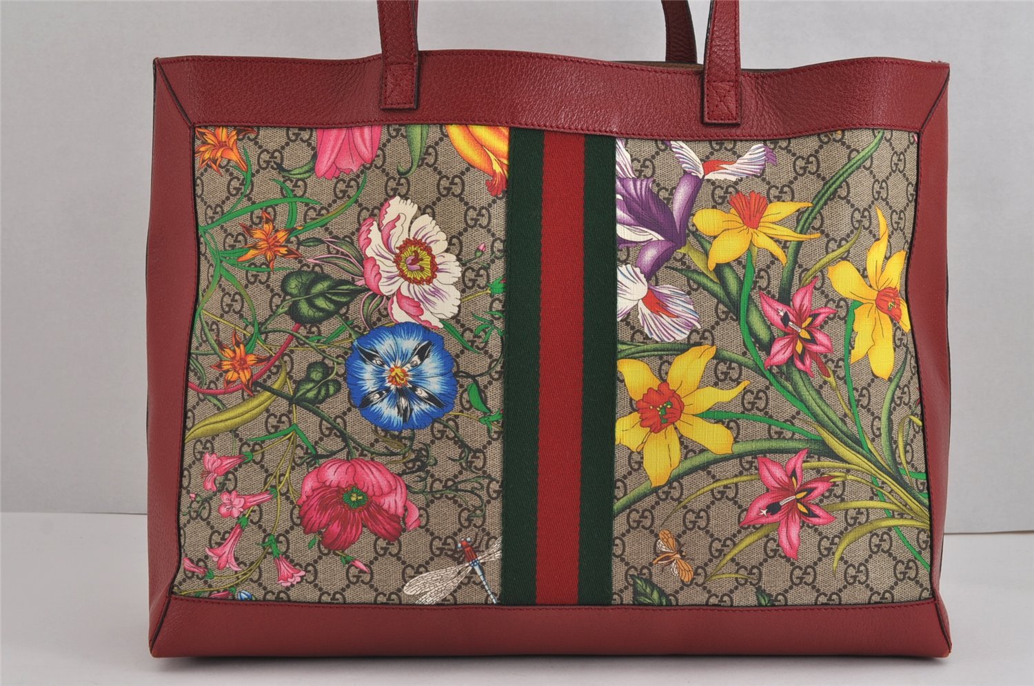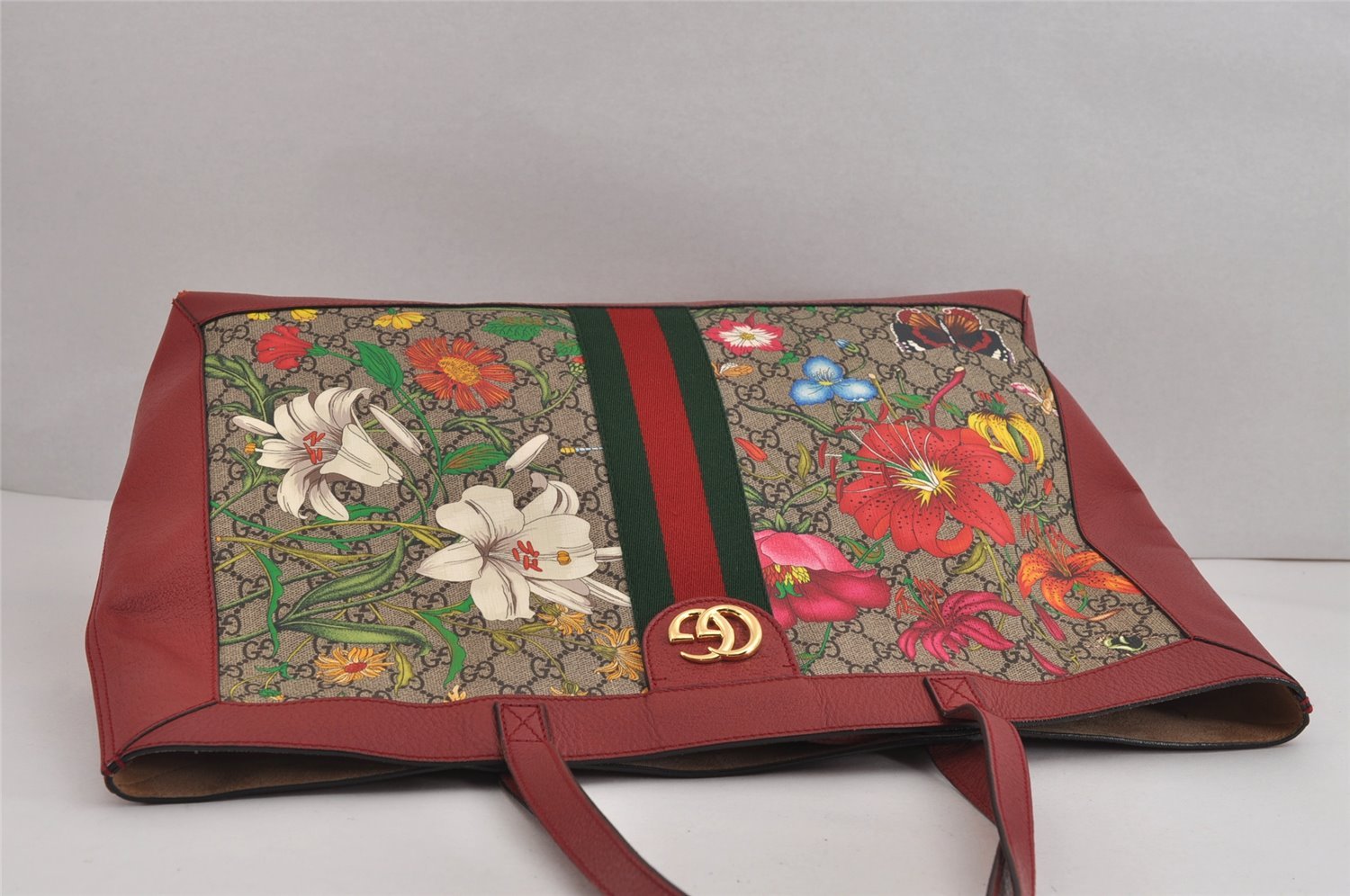 | Authentic GUCCI OPHIDIA GG Blooms Tote Bag GG PVC Leather 547947 Brown | |