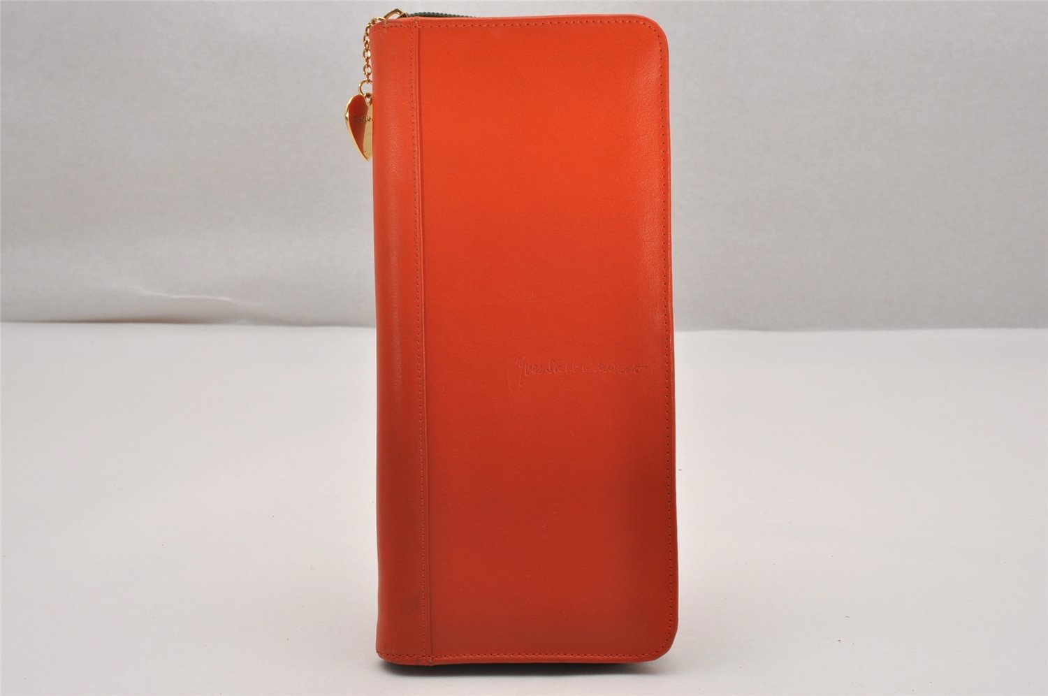| Authentic YVES SAINT LAURENT Round Zip Long Wallet Purse Leather Orange | |