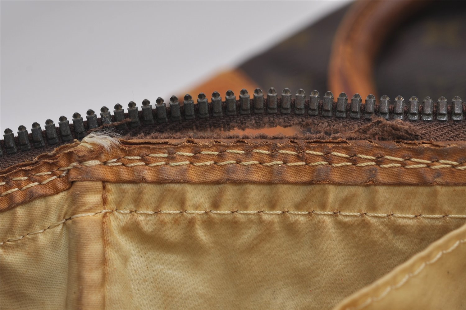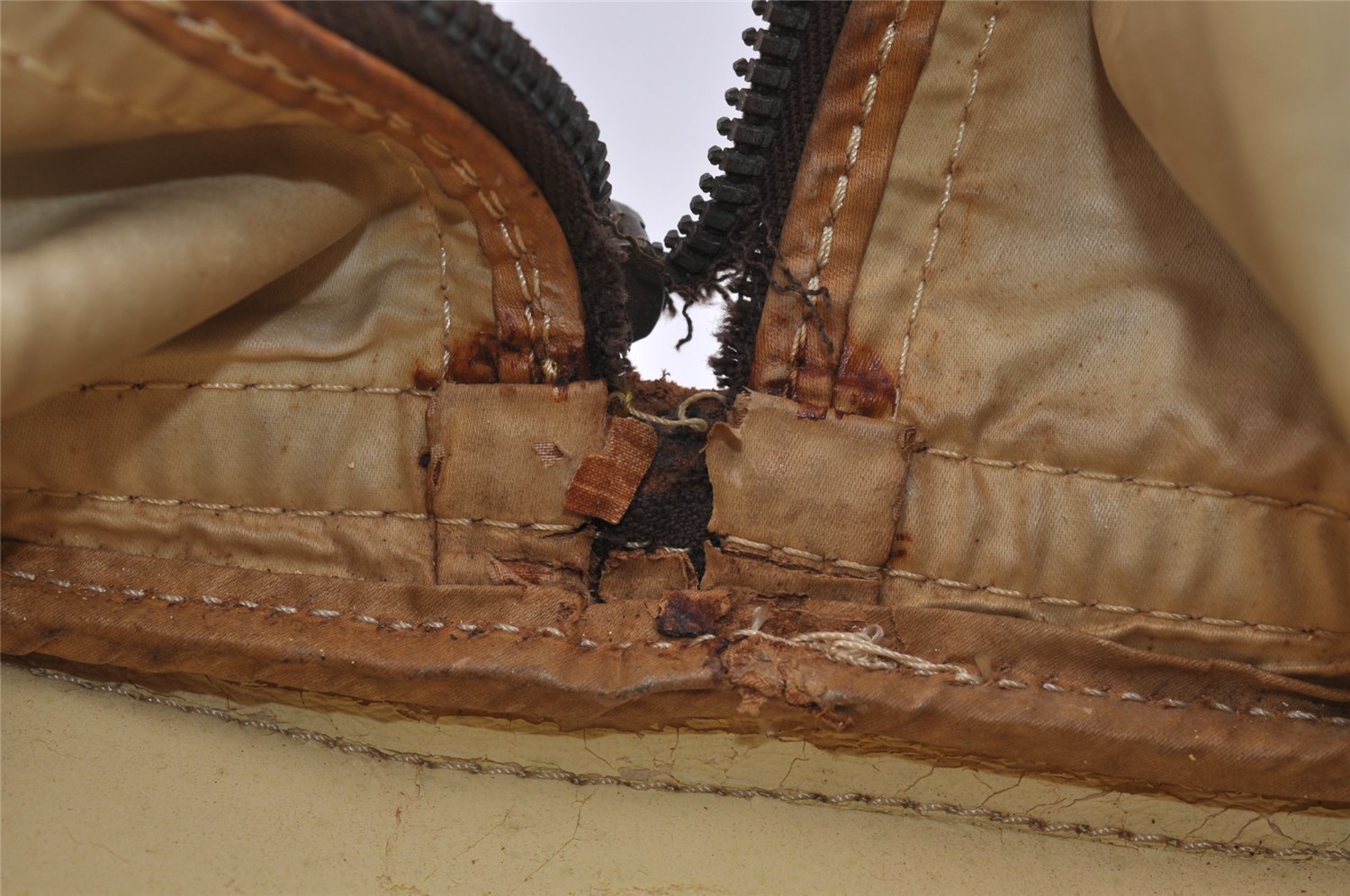 | Others | This item is old model so zipper was made in ECLAIR.There is NO Serial number because of old model.Zipper fabric is torn and bottom stop fitting is lost.Outside pocket of the bag is peeling off and crumbling.Edge of the zipper fabric and Inside fabric are a little torn. |