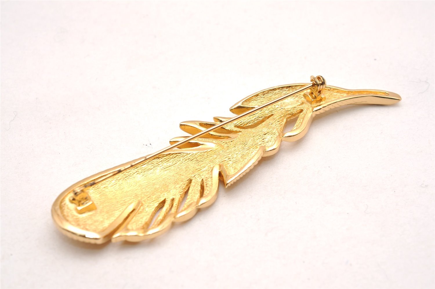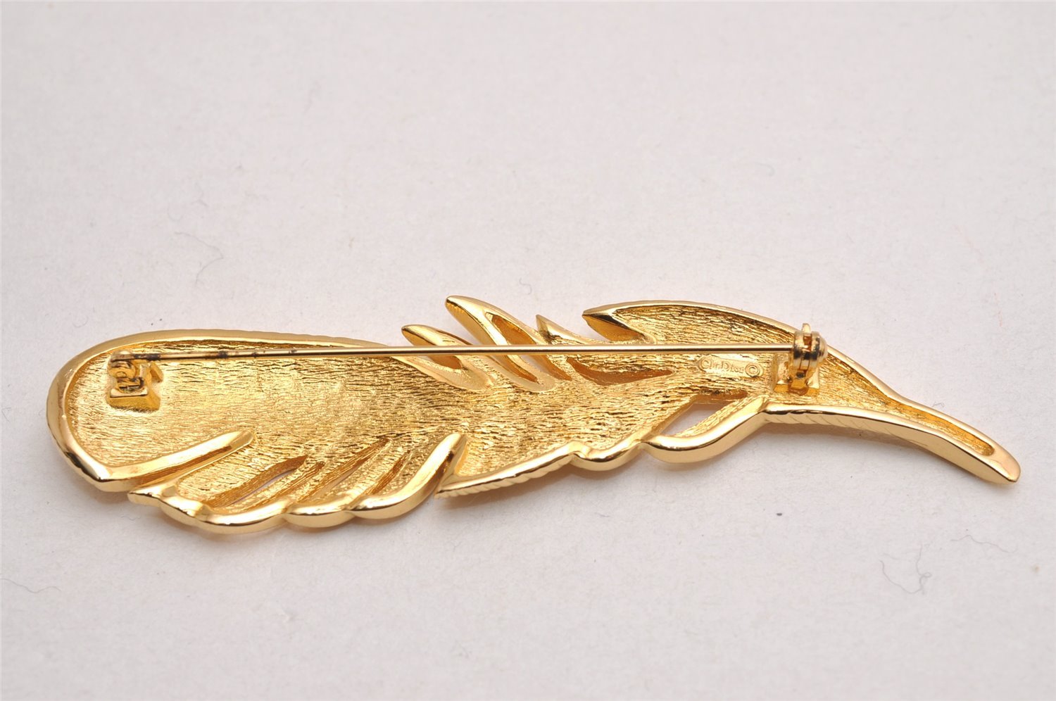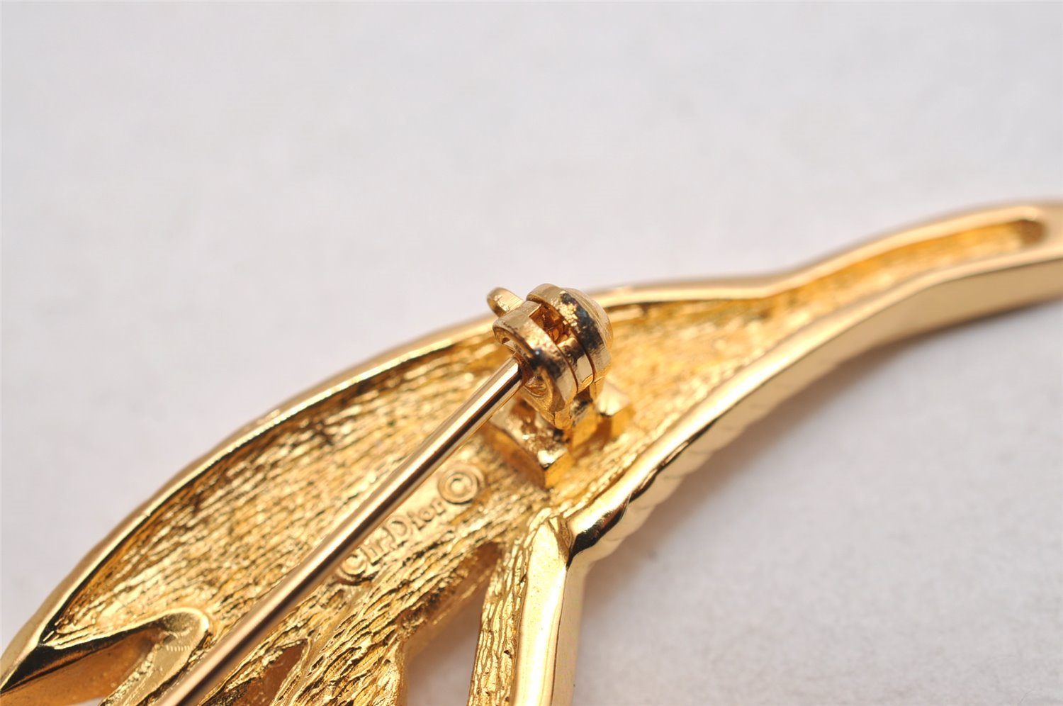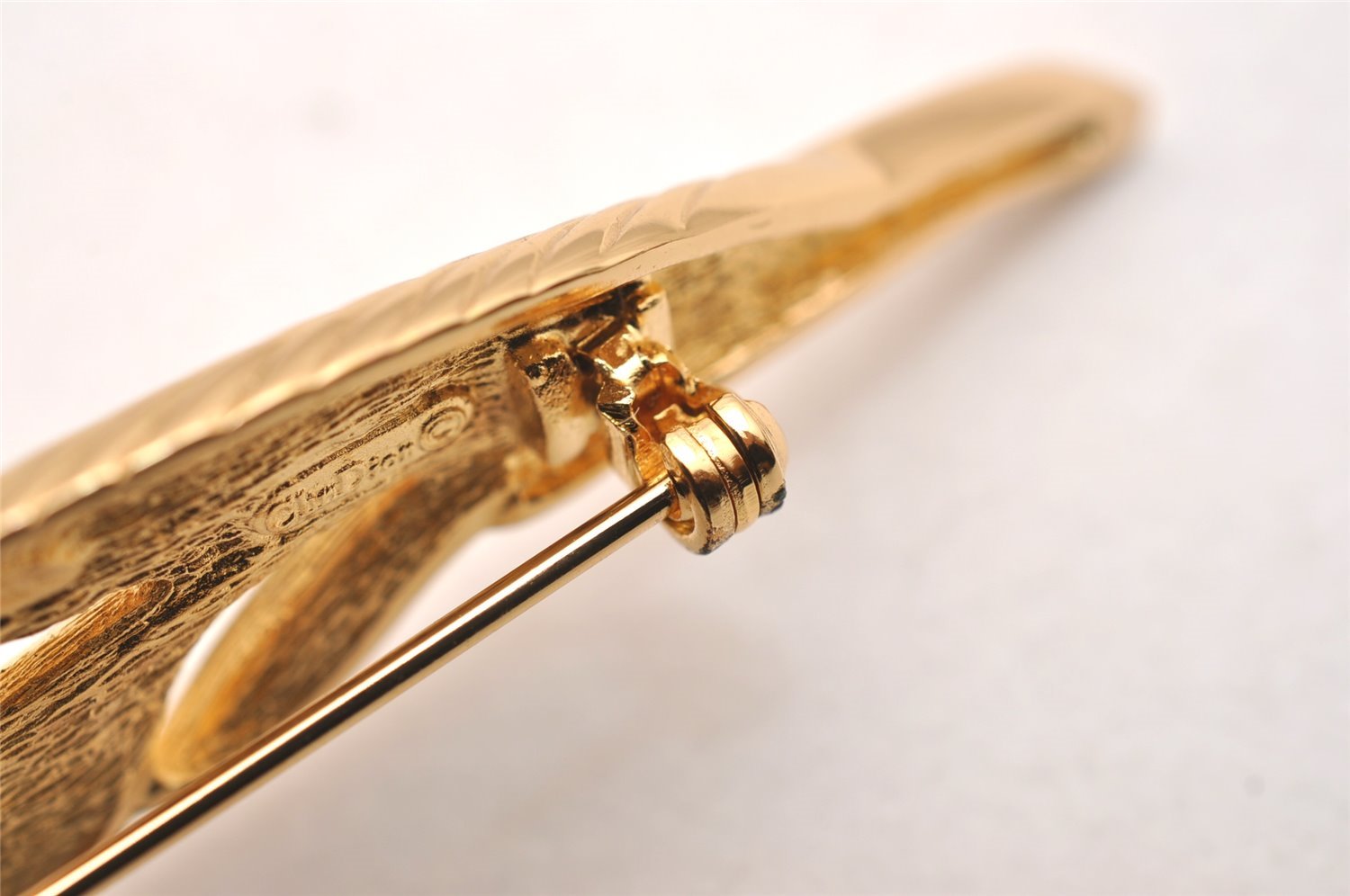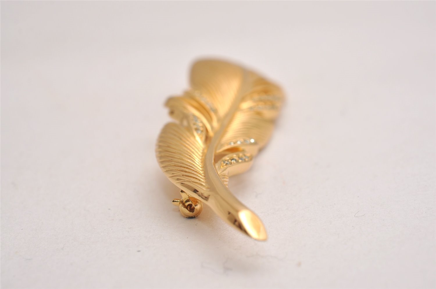 | Authentic Christian Dior Rhinestone Feather Motif Brooch Gold Tone CD Box | |