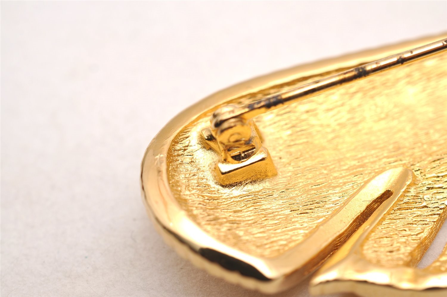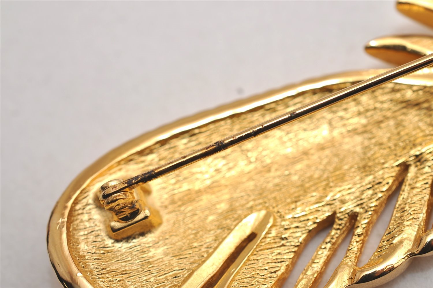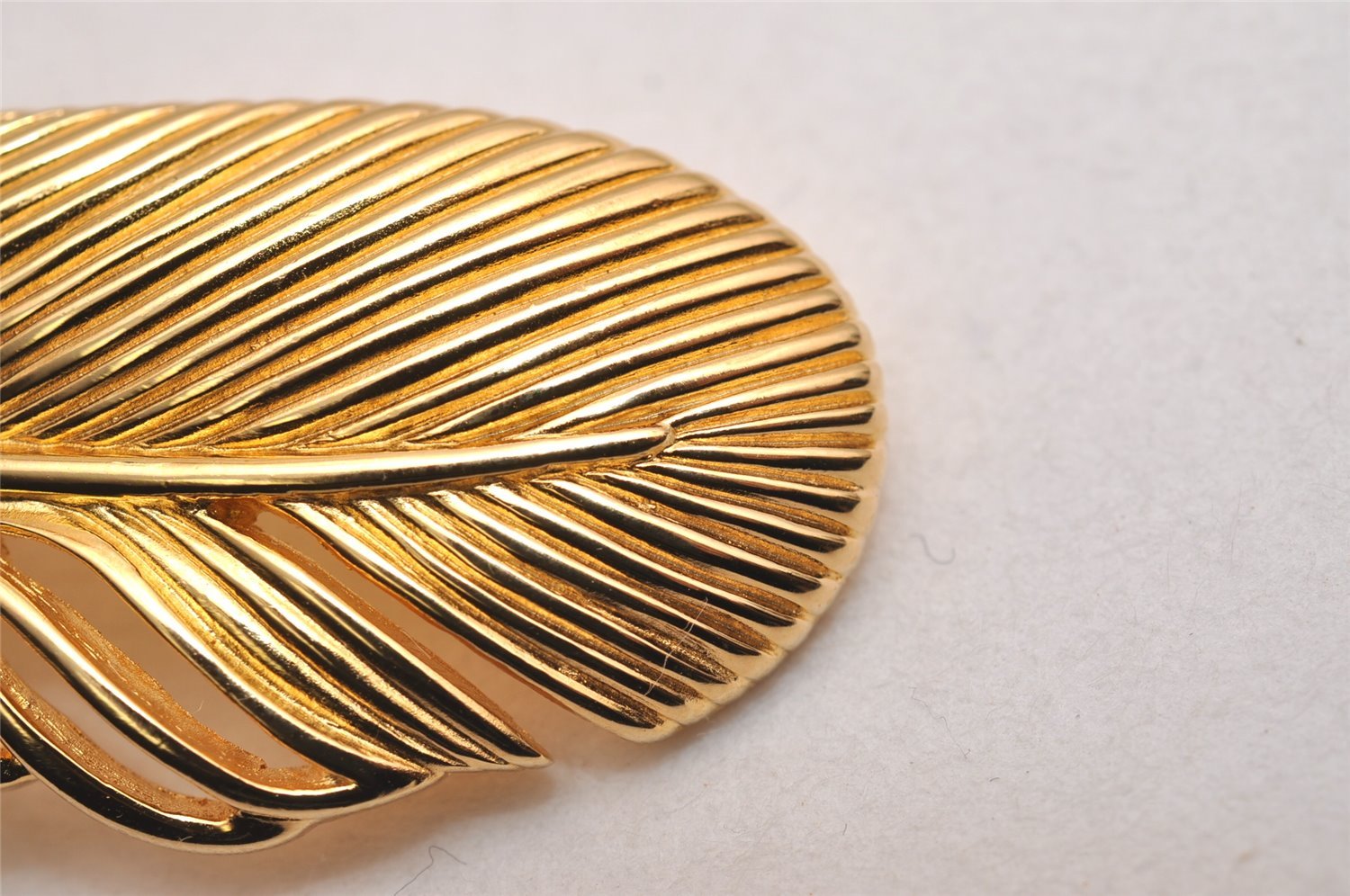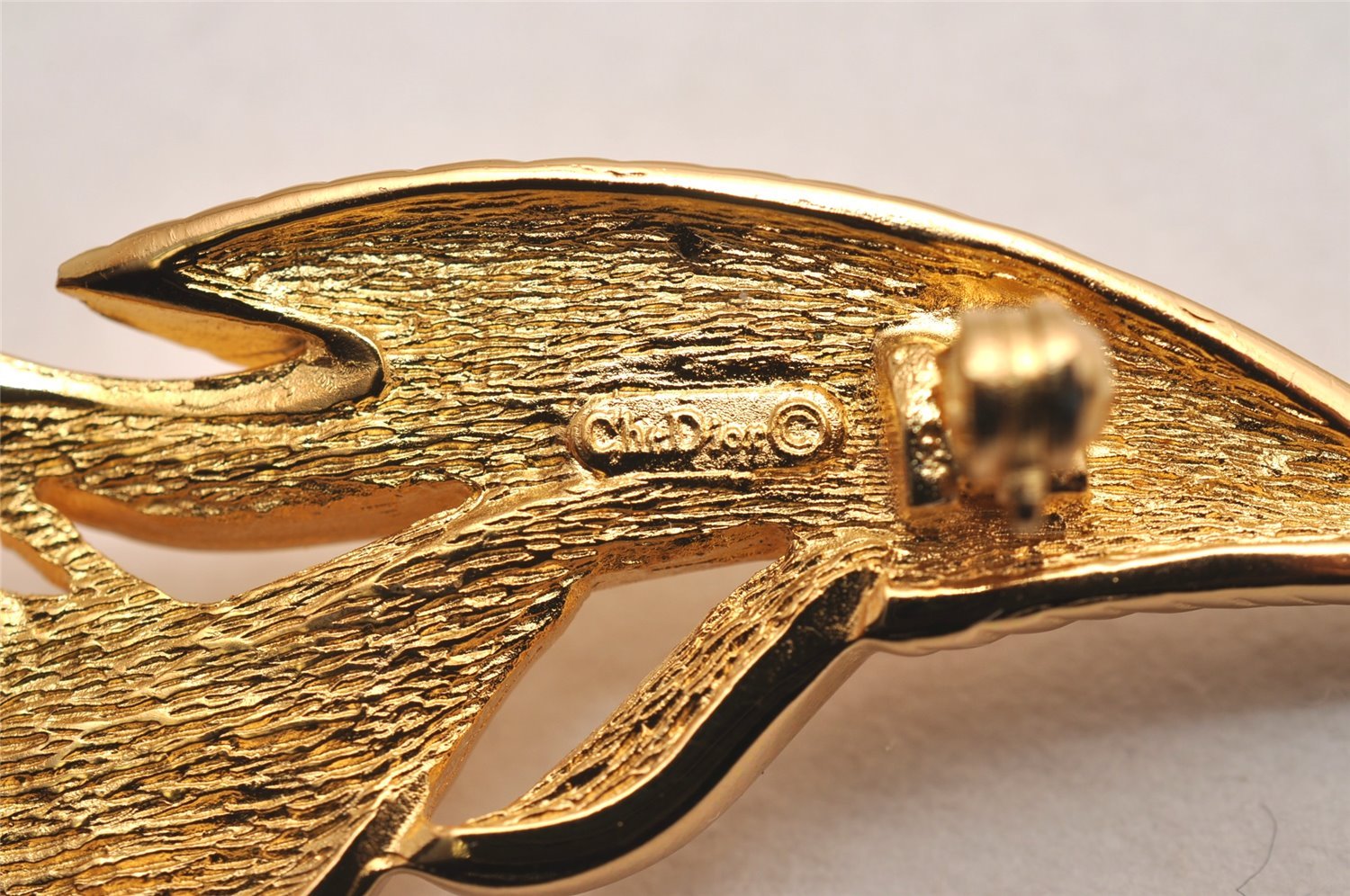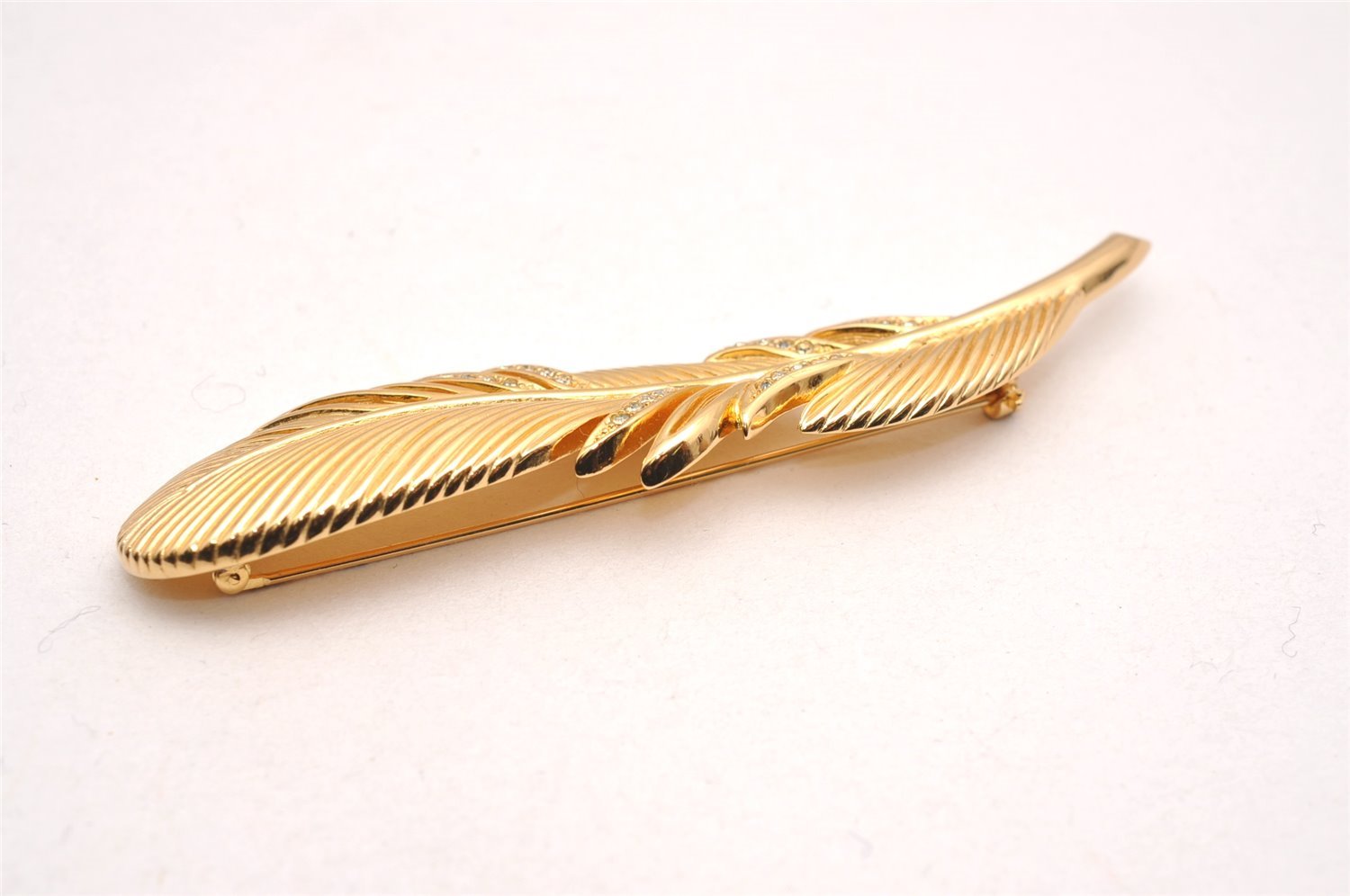 | Authentic Christian Dior Rhinestone Feather Motif Brooch Gold Tone CD Box | |
