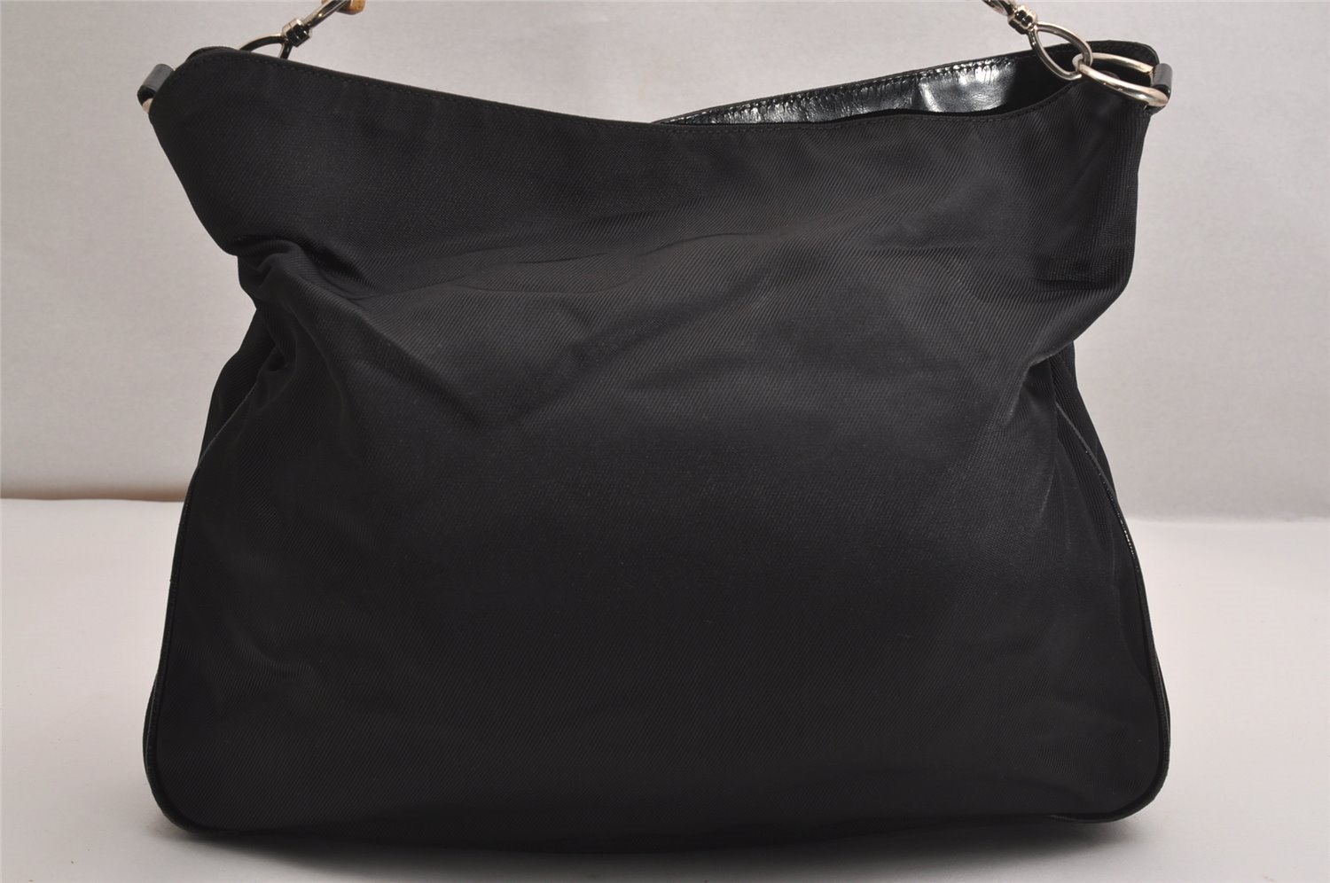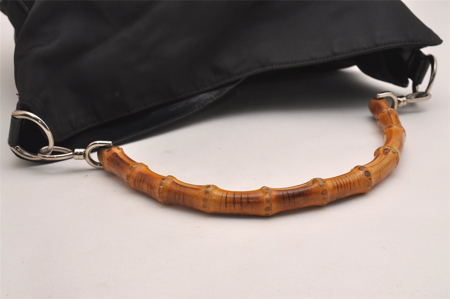 | Authentic GUCCI Bamboo 2Way Shoulder Hand Bag Nylon Leather Black | |