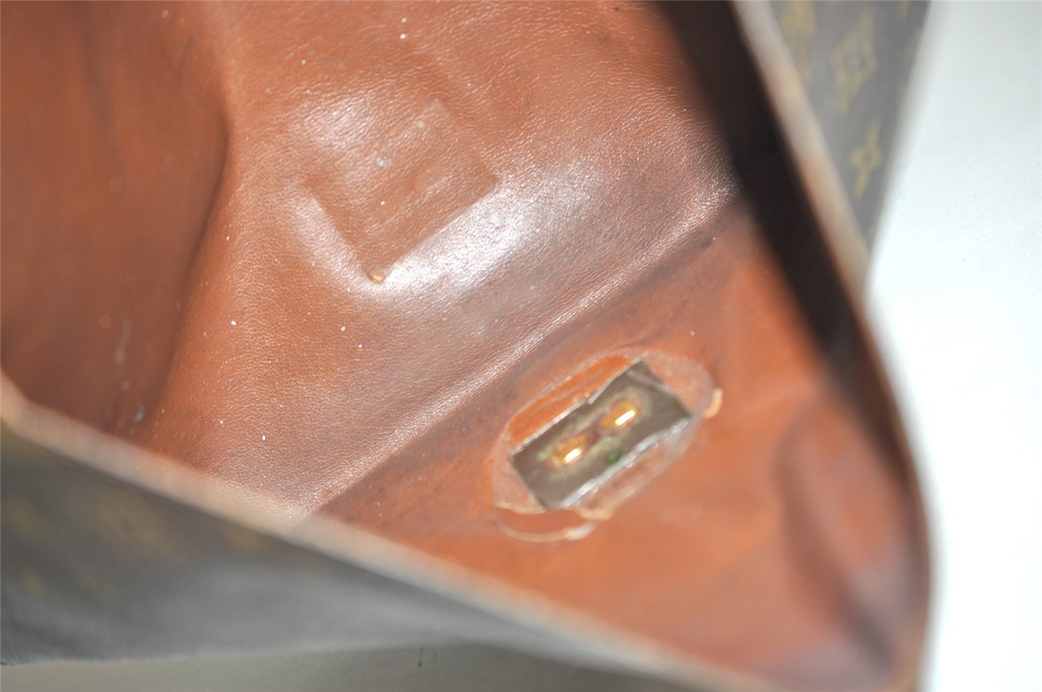 | Others | Closure part is a little hard to move and close.Two part of the Inside edge of the bag is a little torn.Inside leather is peeled off and lost.Inside metal fitting is self repaired with tape and a little repainted. |