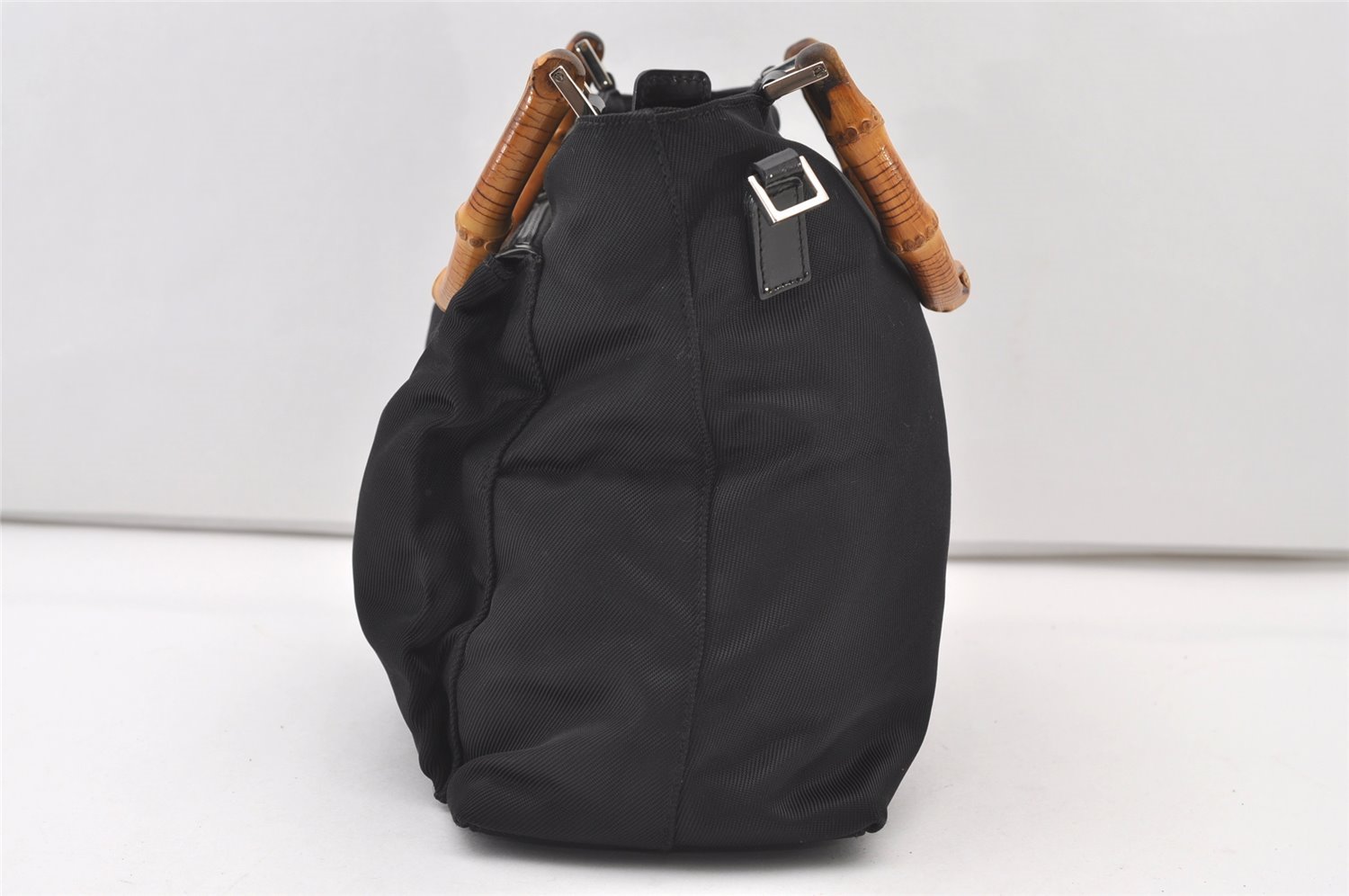 | Authentic GUCCI Bamboo 2Way Shoulder Tote Bag Nylon Leather Black | |