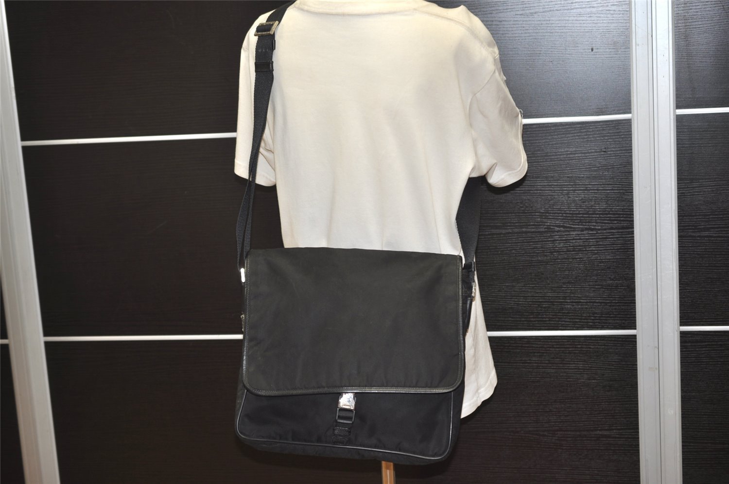 | Auth PRADA VIGGIO Nylon Tessuto Saffiano Leather Shoulder Bag V166 Black | |