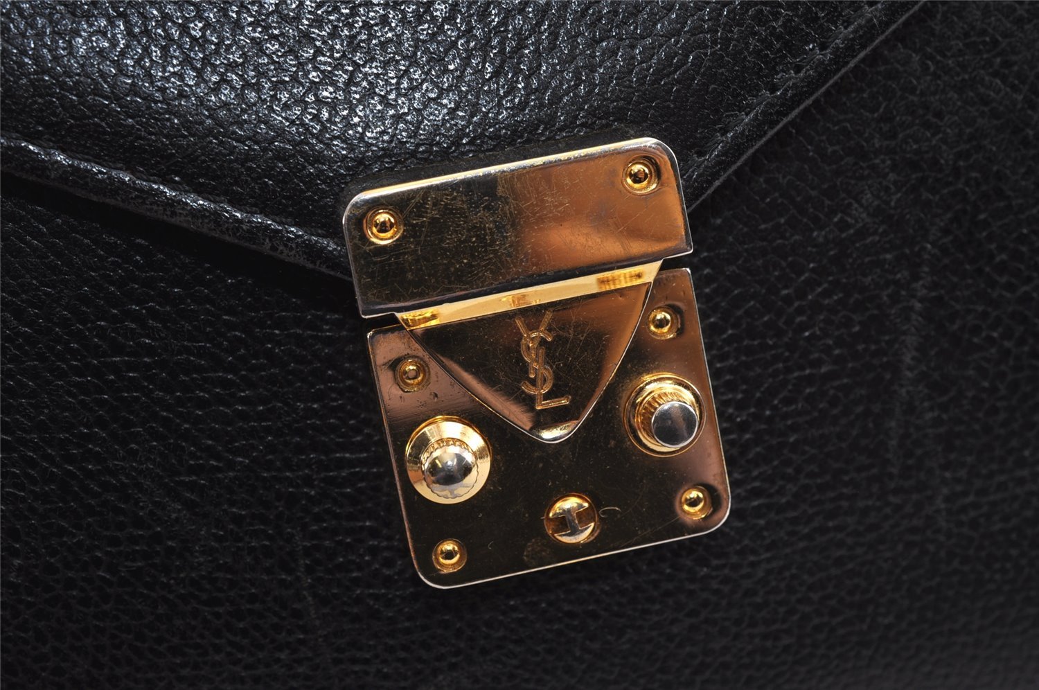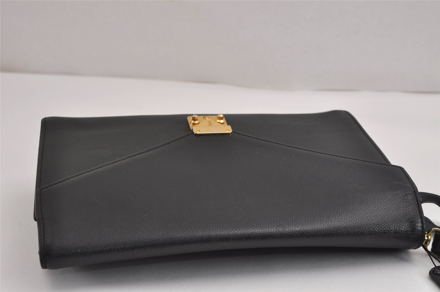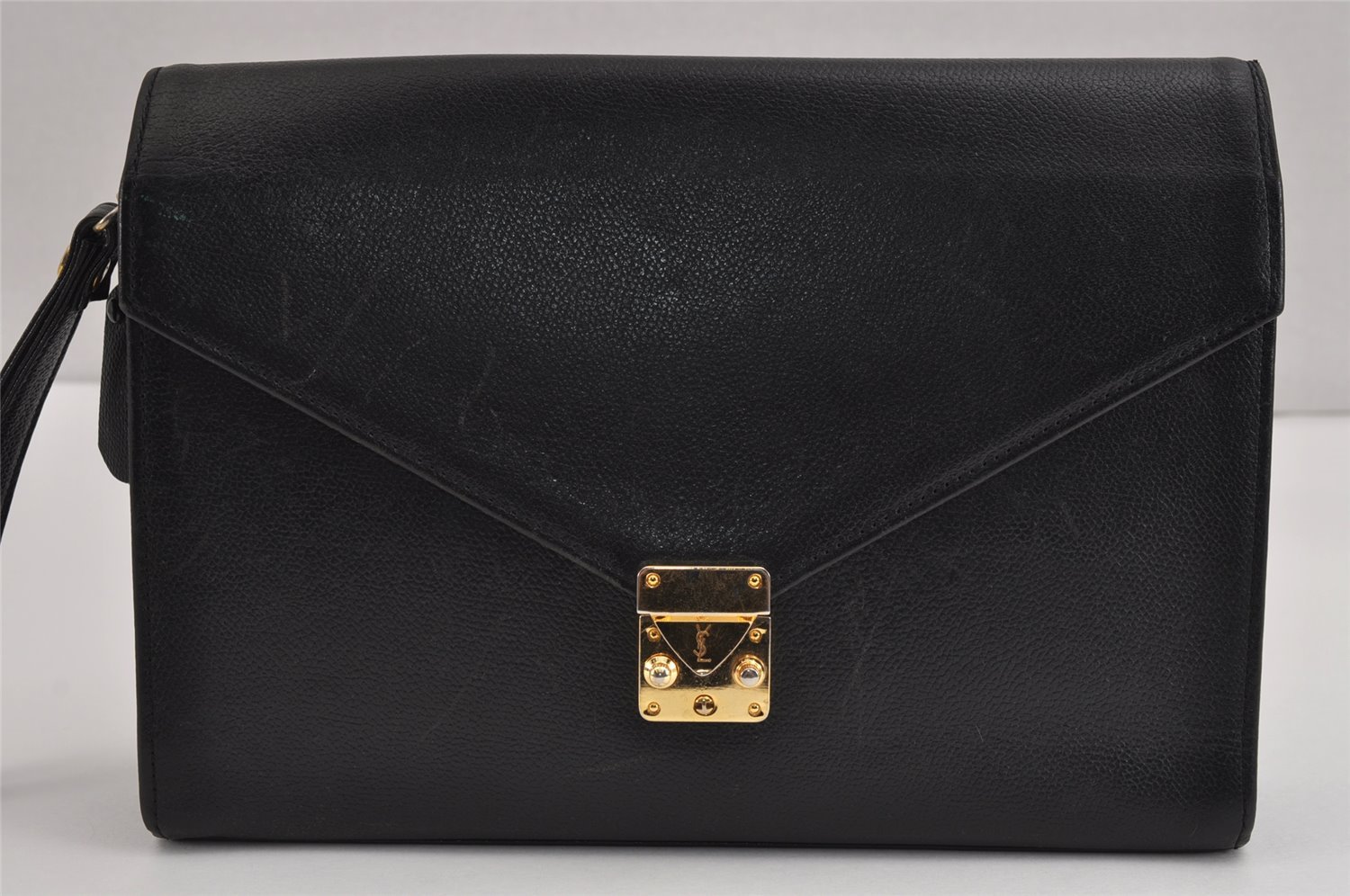 | Authentic YVES SAINT LAURENT Vintage Clutch Hand Bag Purse Leather Black | |