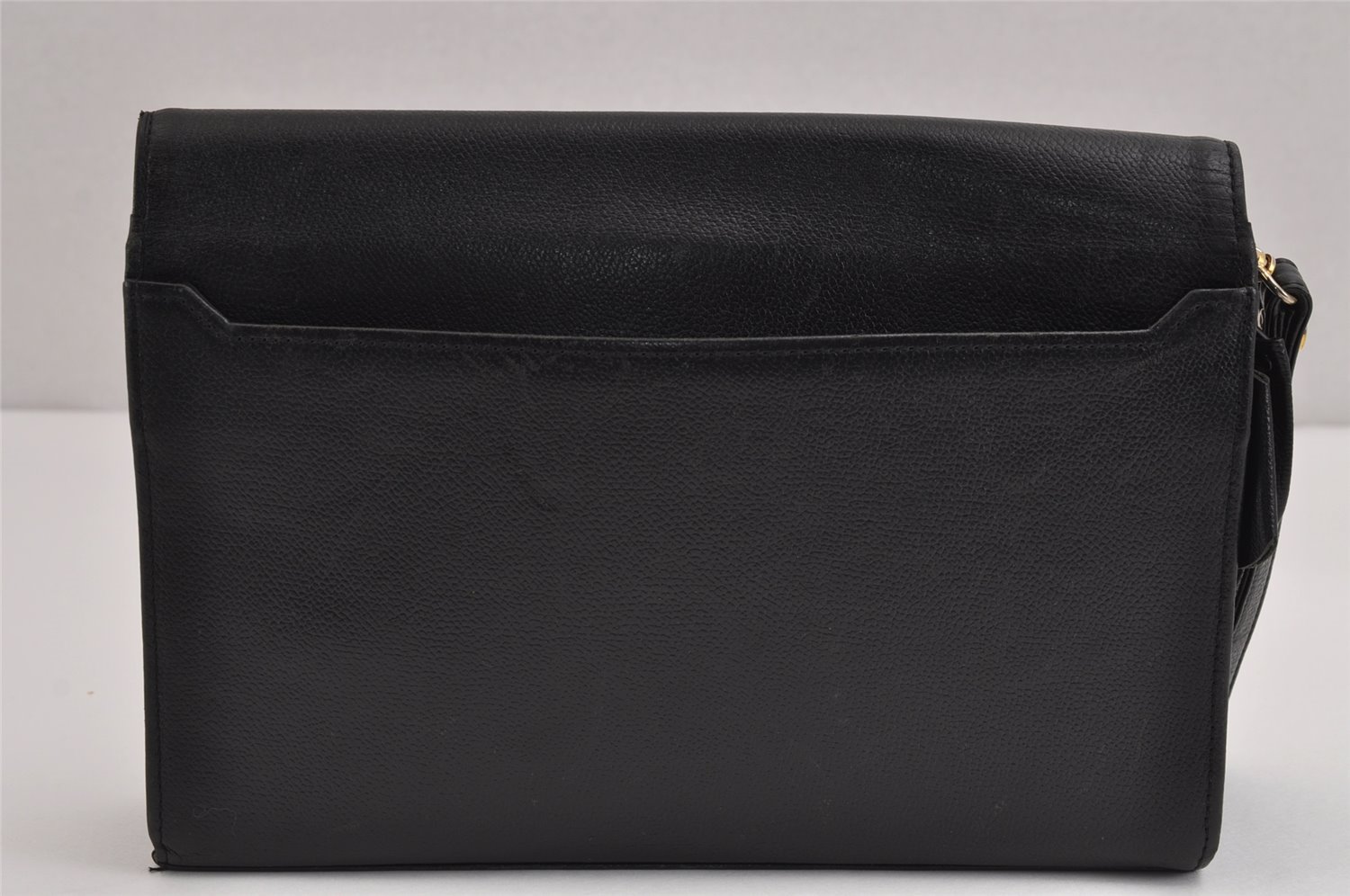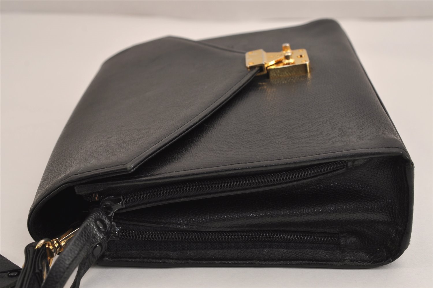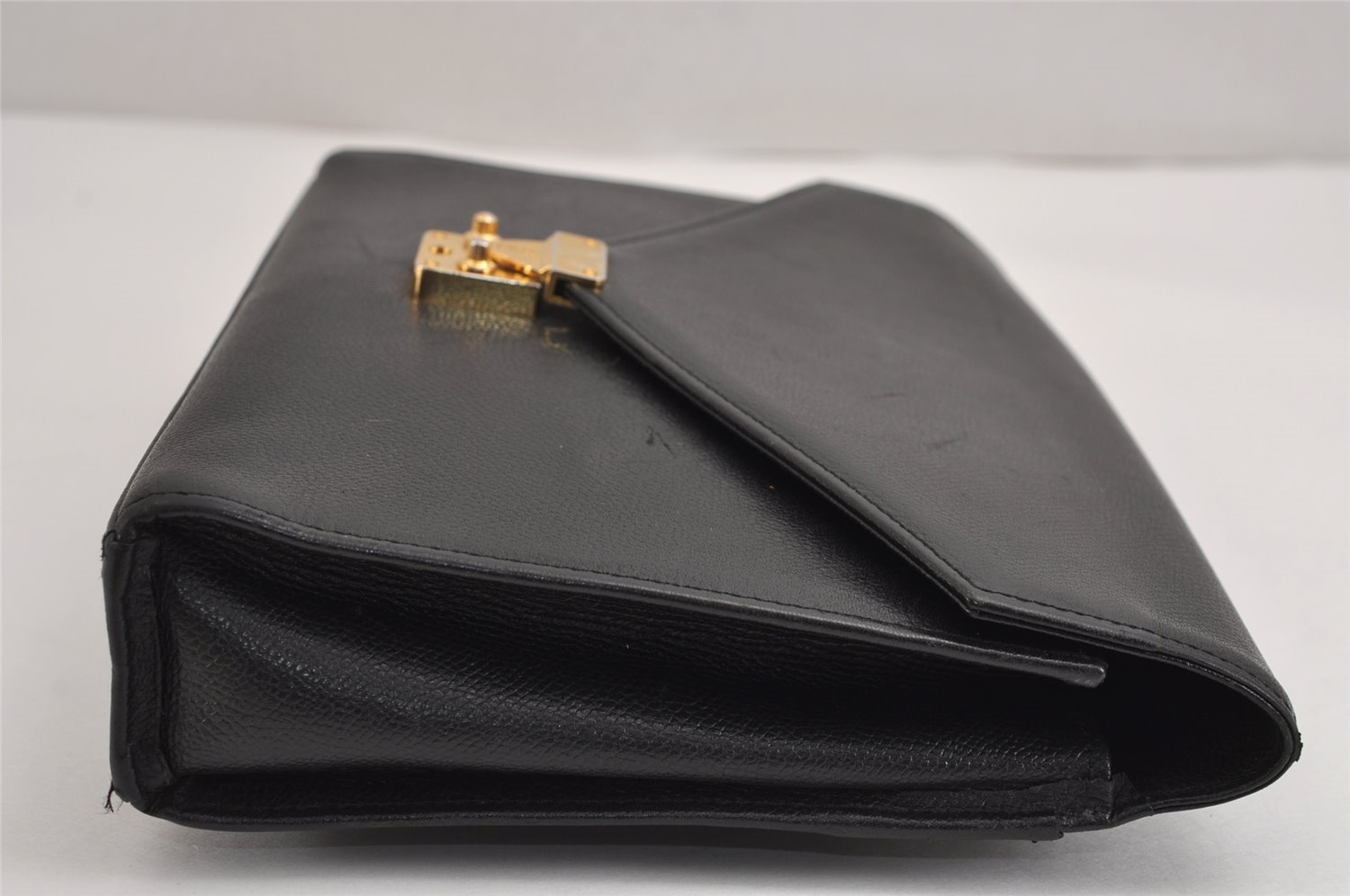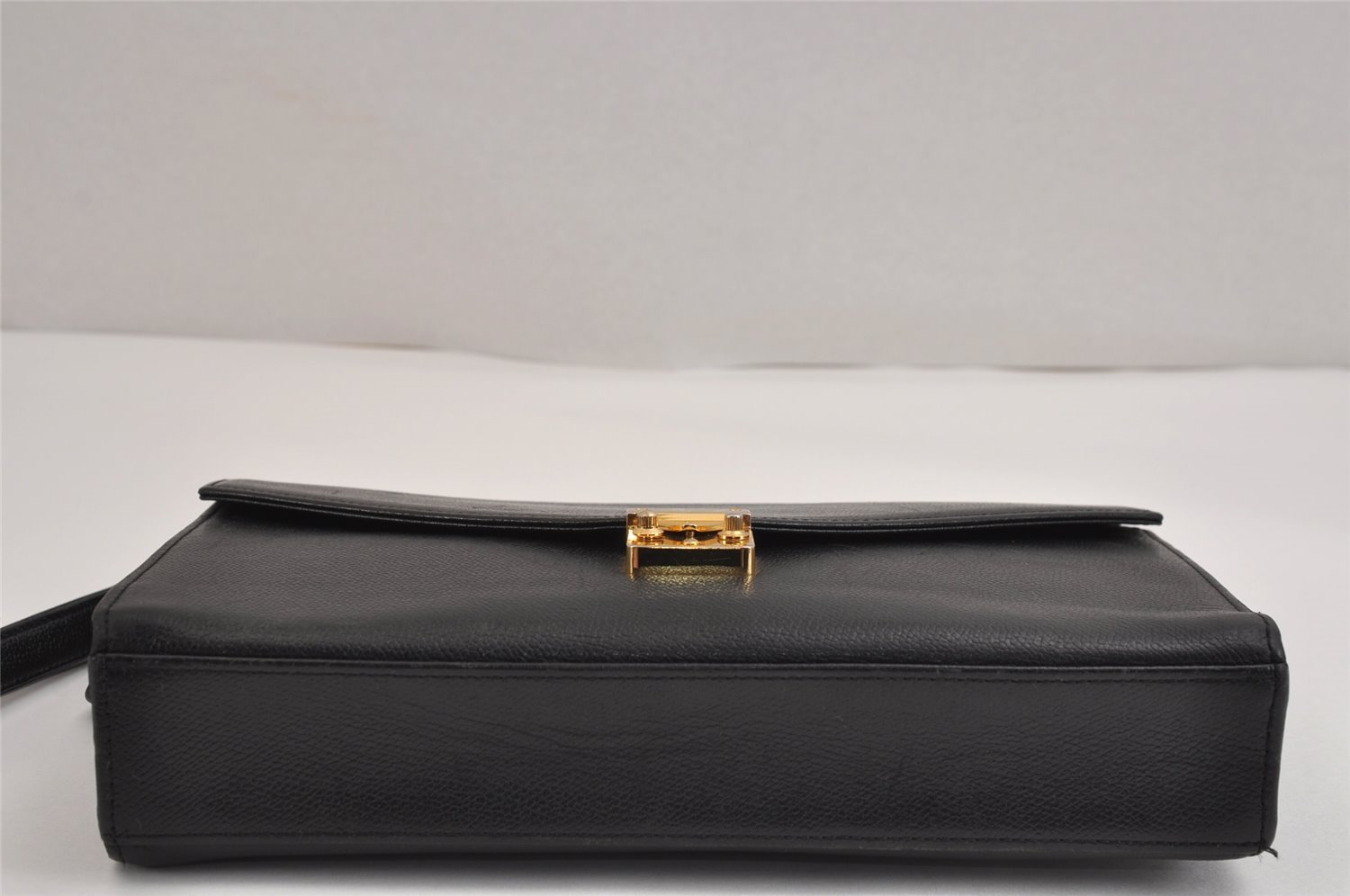 | Authentic YVES SAINT LAURENT Vintage Clutch Hand Bag Purse Leather Black | |