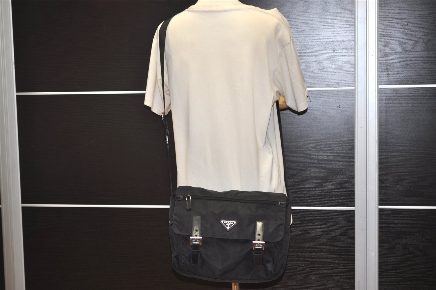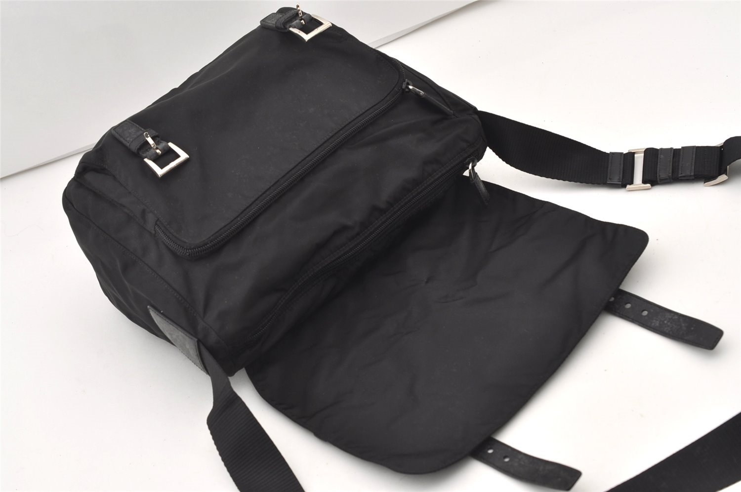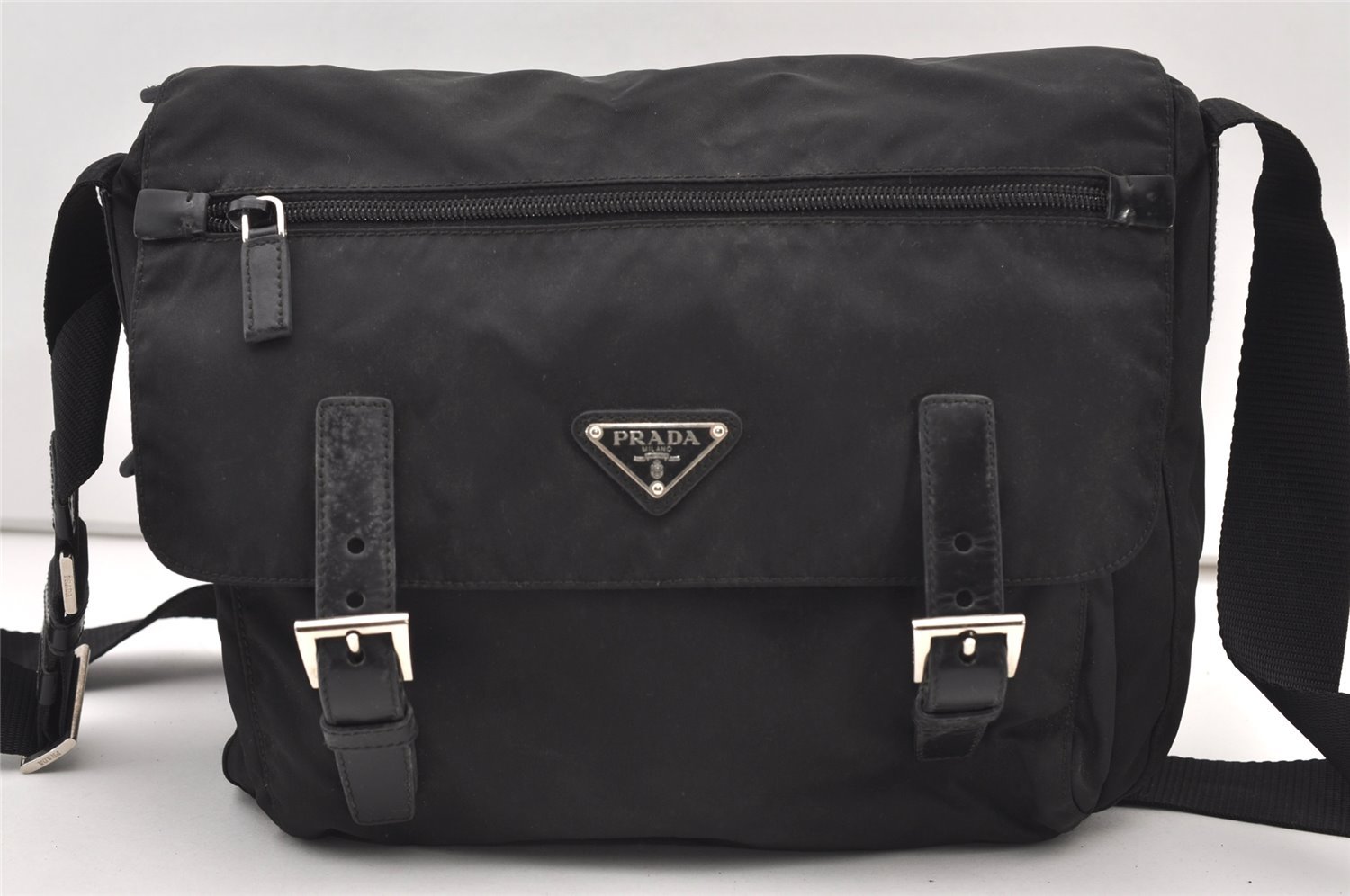 | Authentic PRADA Nylon Tessuto Leather Shoulder Cross Body Bag BT6671 Black | |