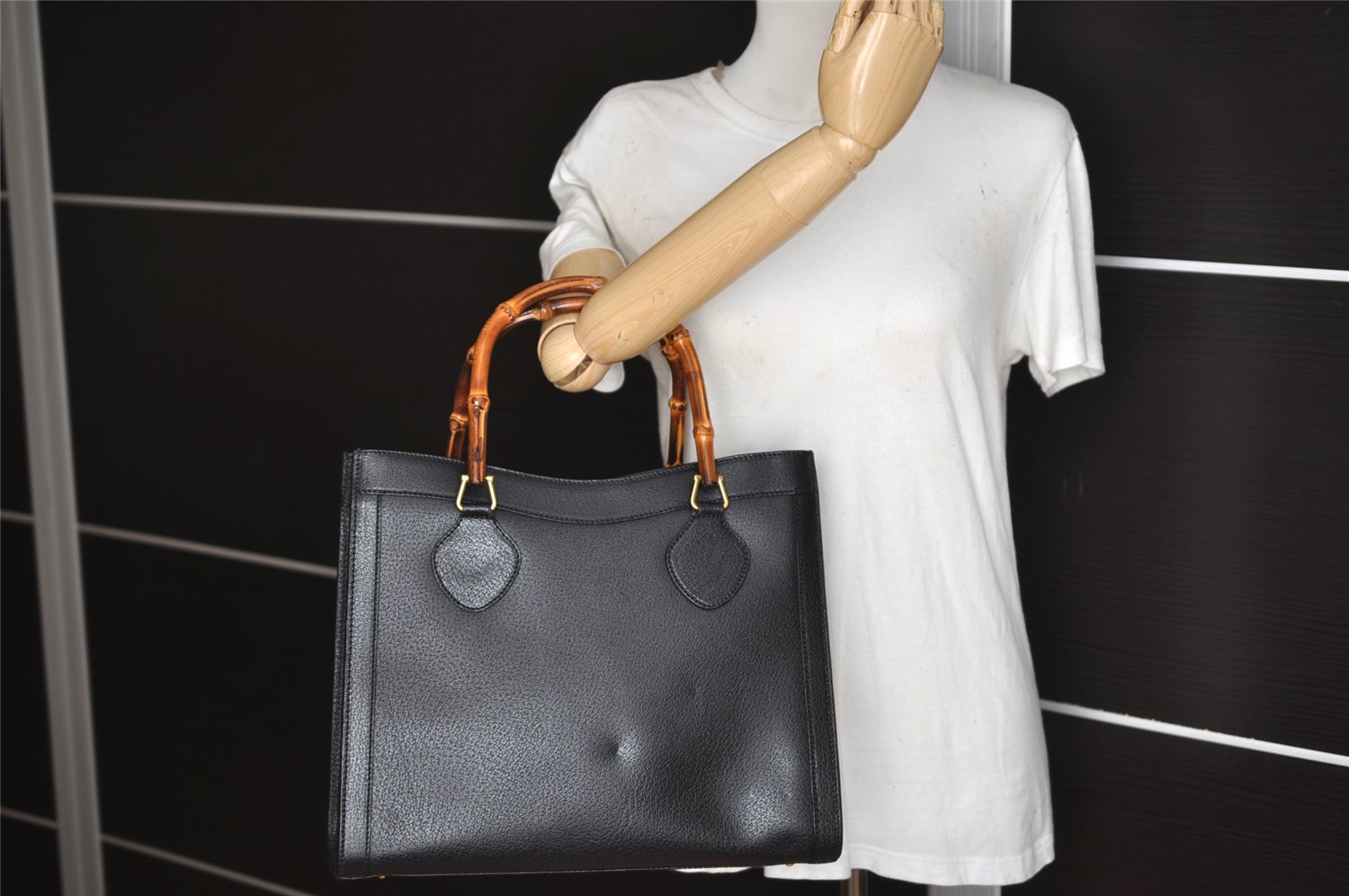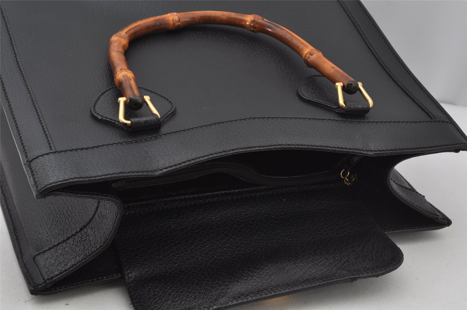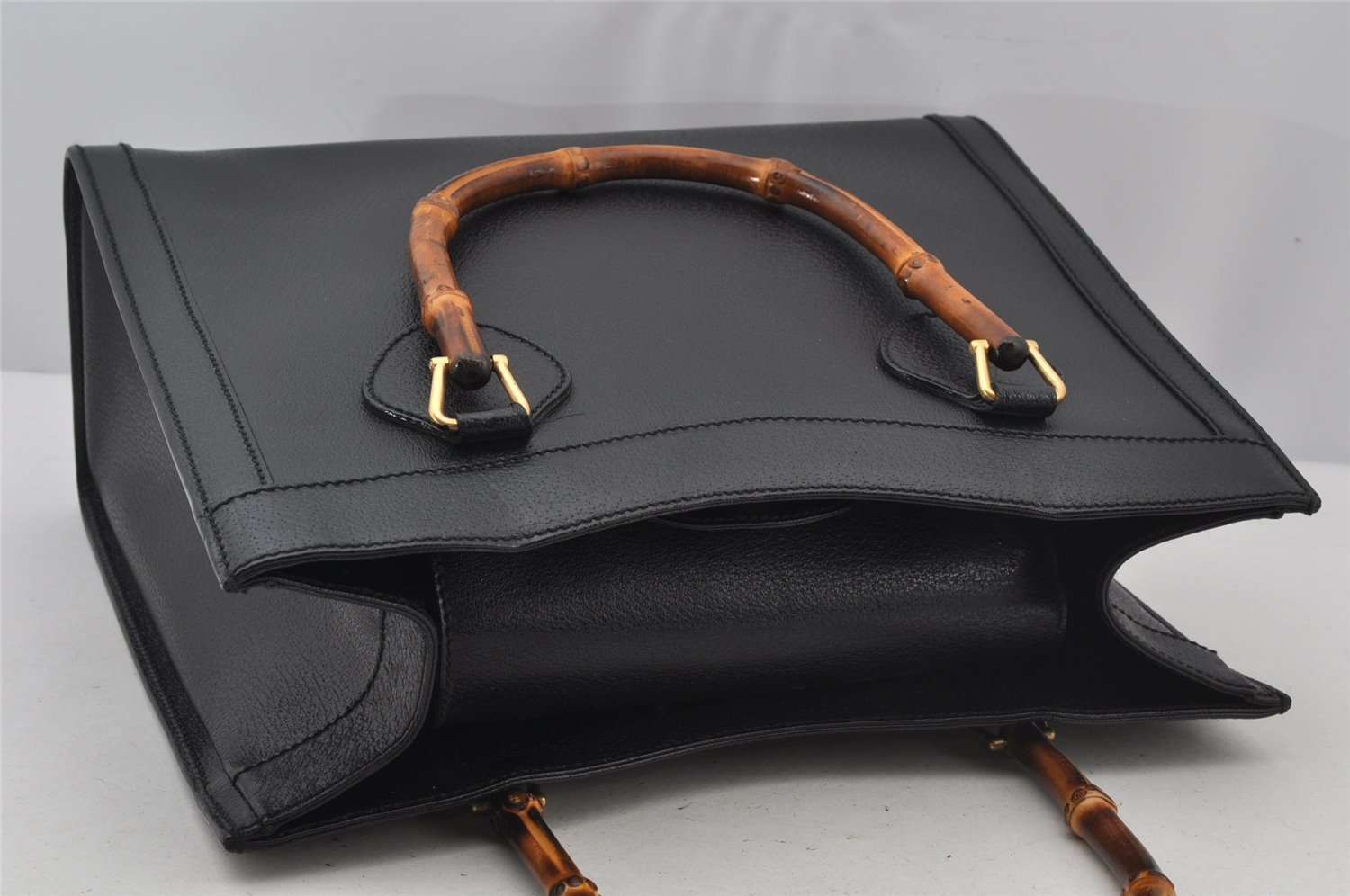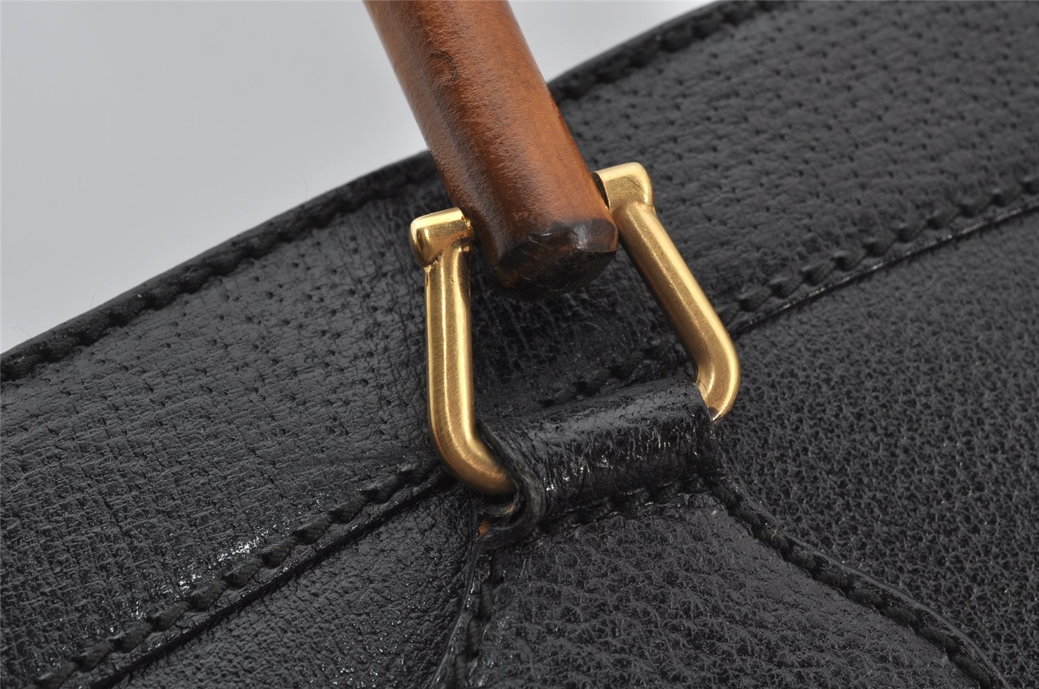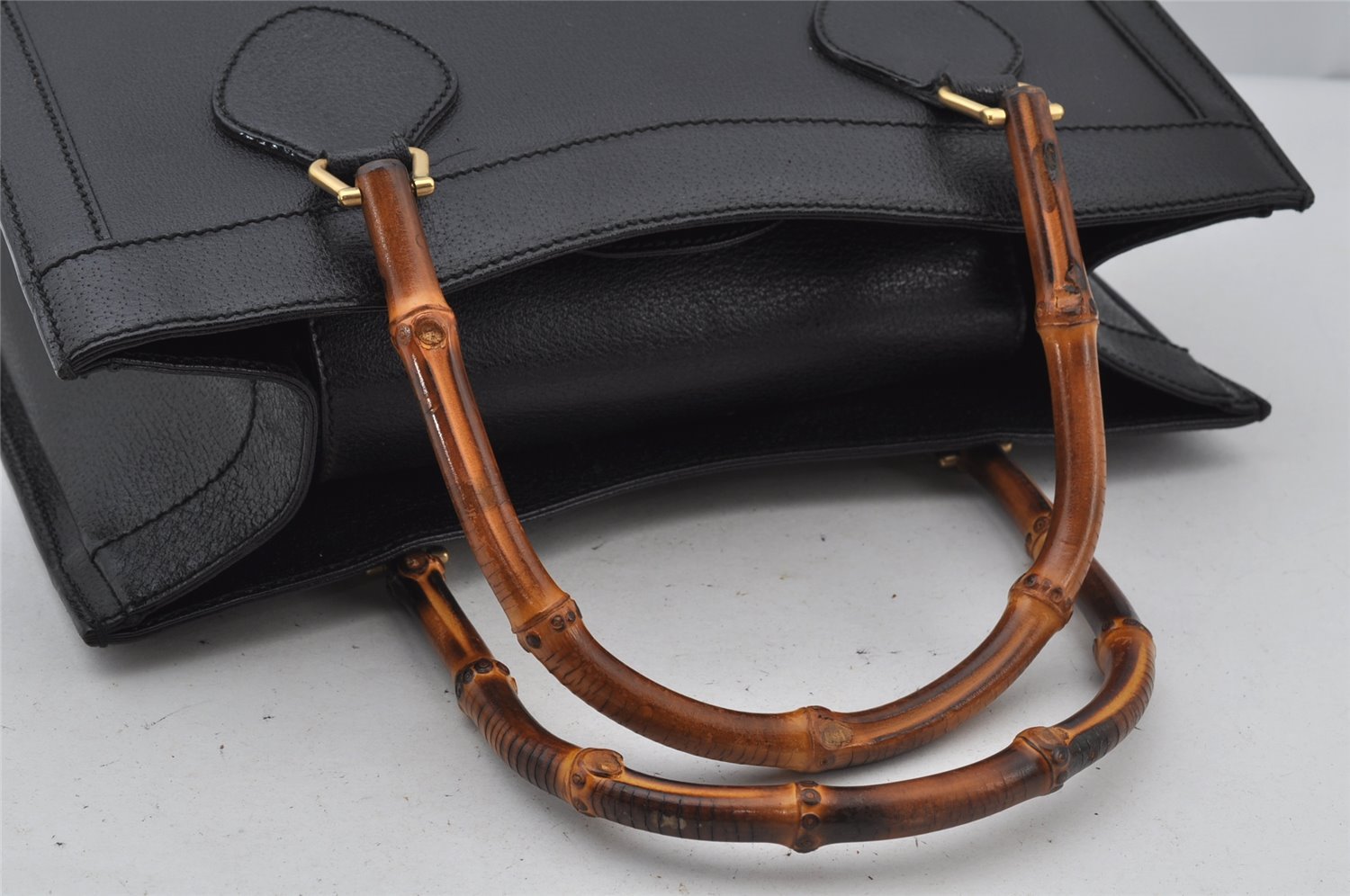 | Authentic GUCCI Vintage Bamboo Shoulder Hand Bag Leather Black Junk | |
