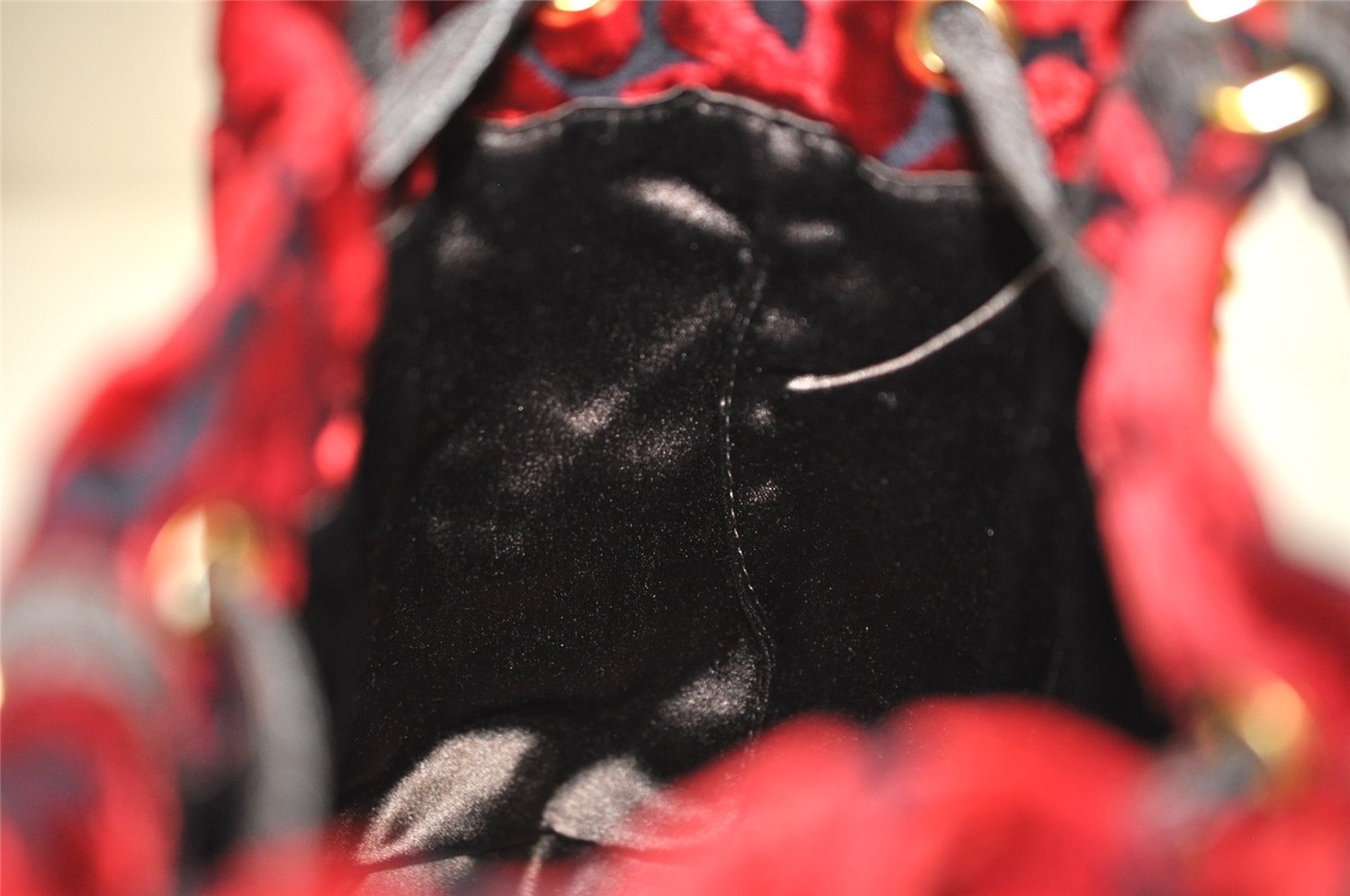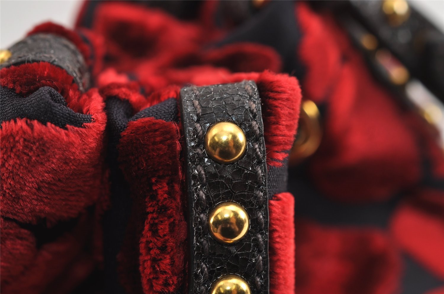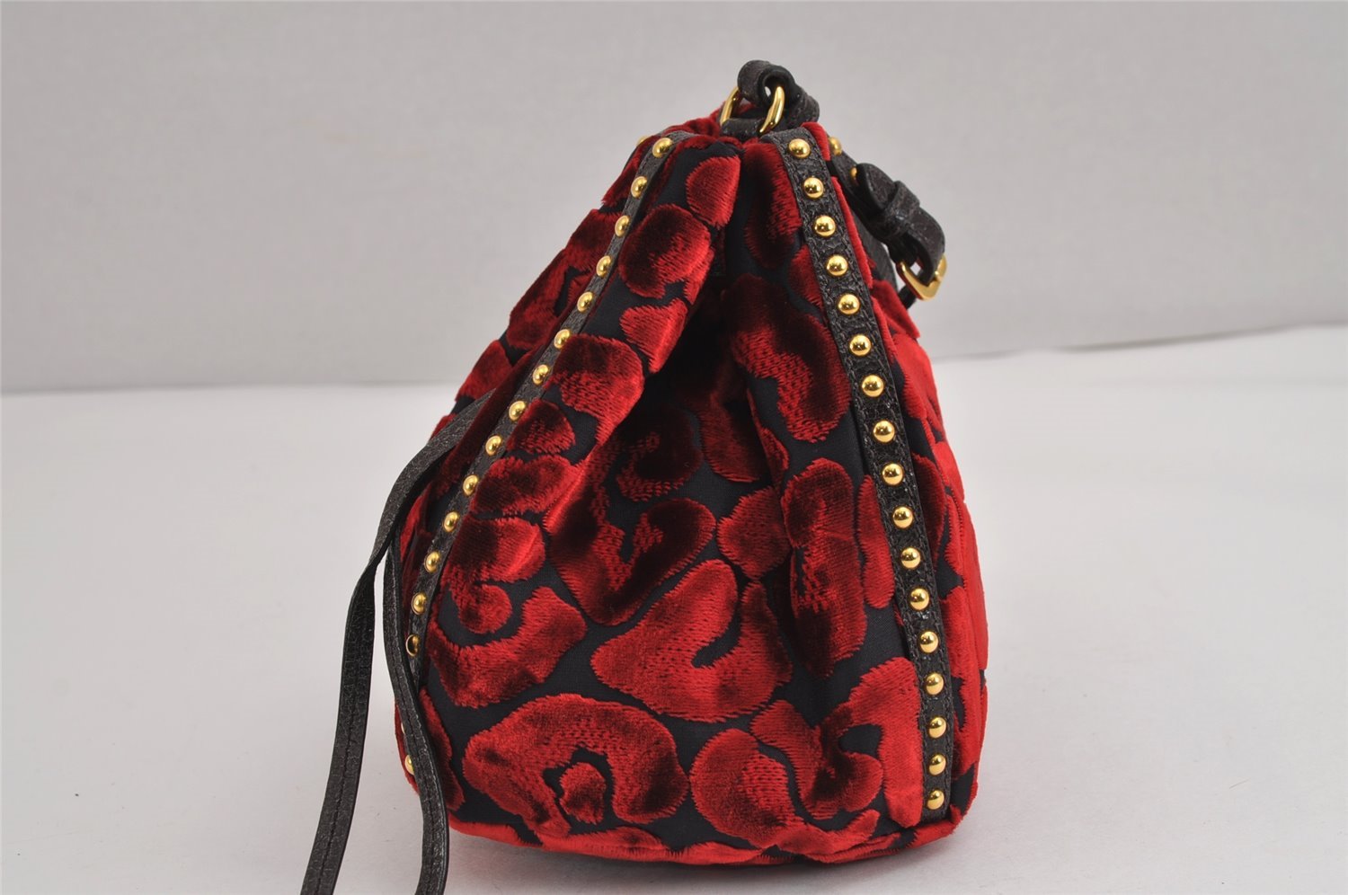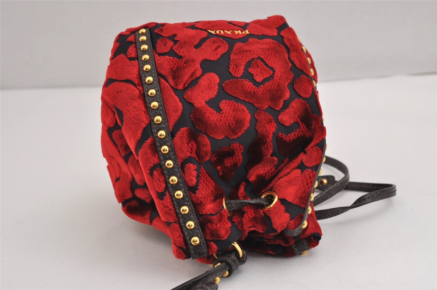 | Authentic PRADA Studs Velour Leather Drawstring Hand Bag Purse Red Black | |
