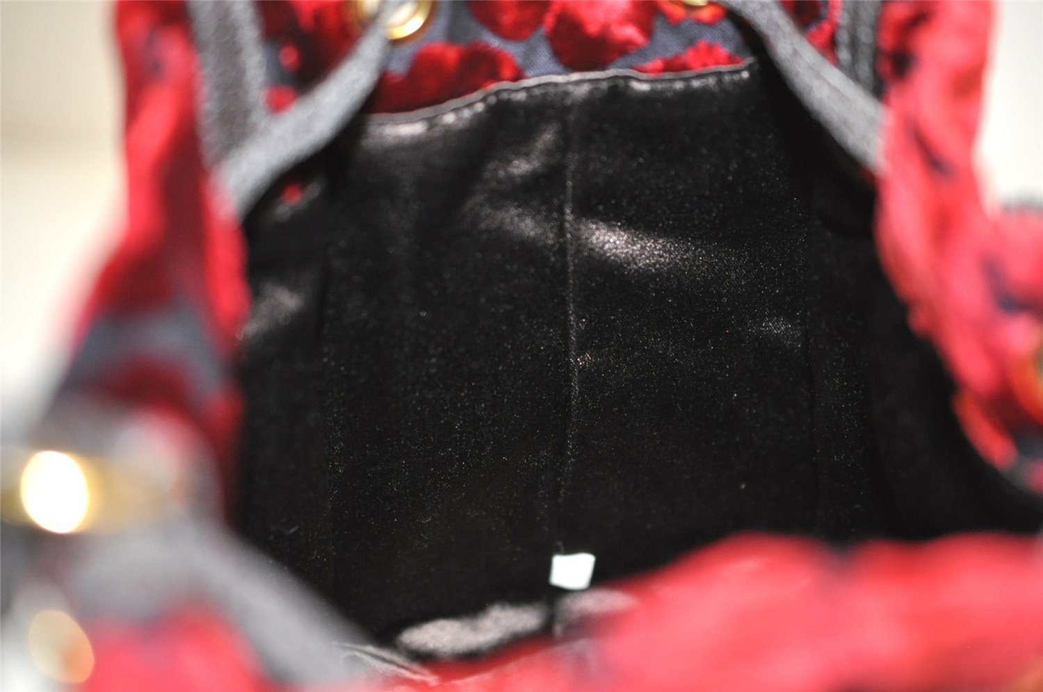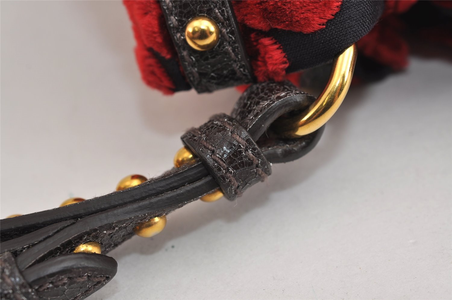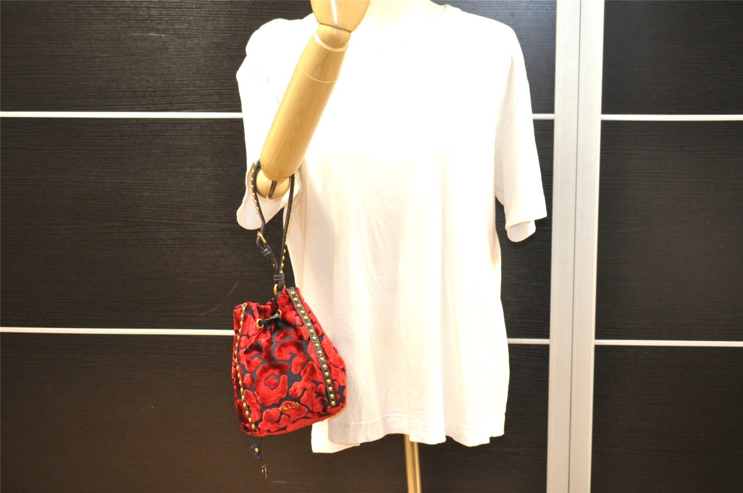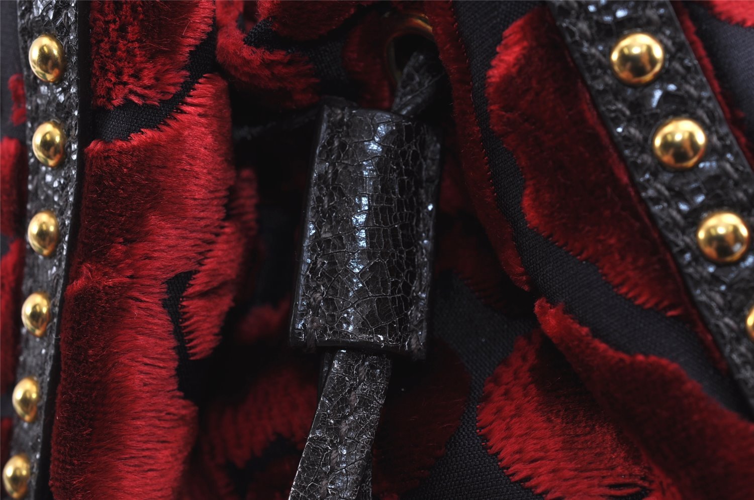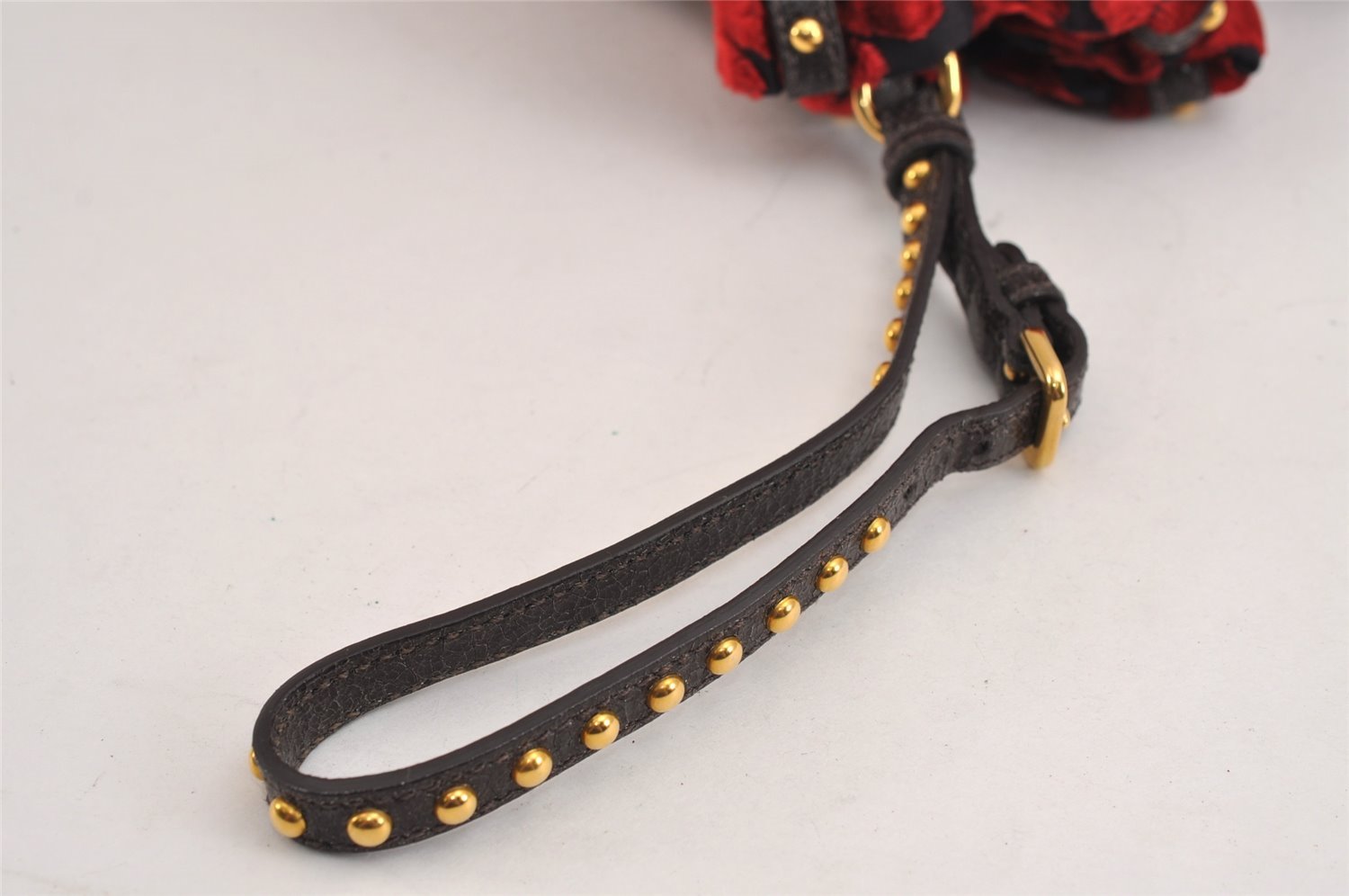 | Authentic PRADA Studs Velour Leather Drawstring Hand Bag Purse Red Black | |