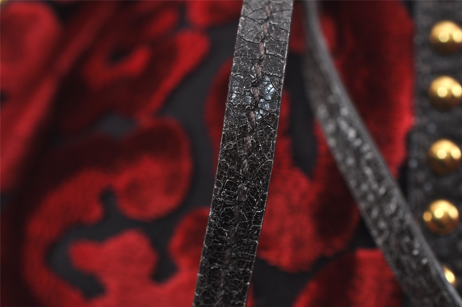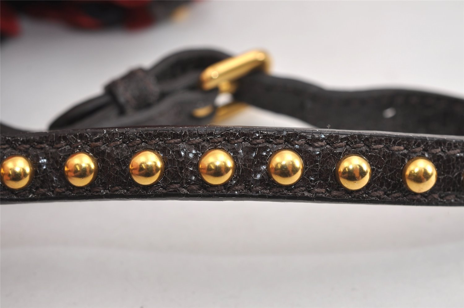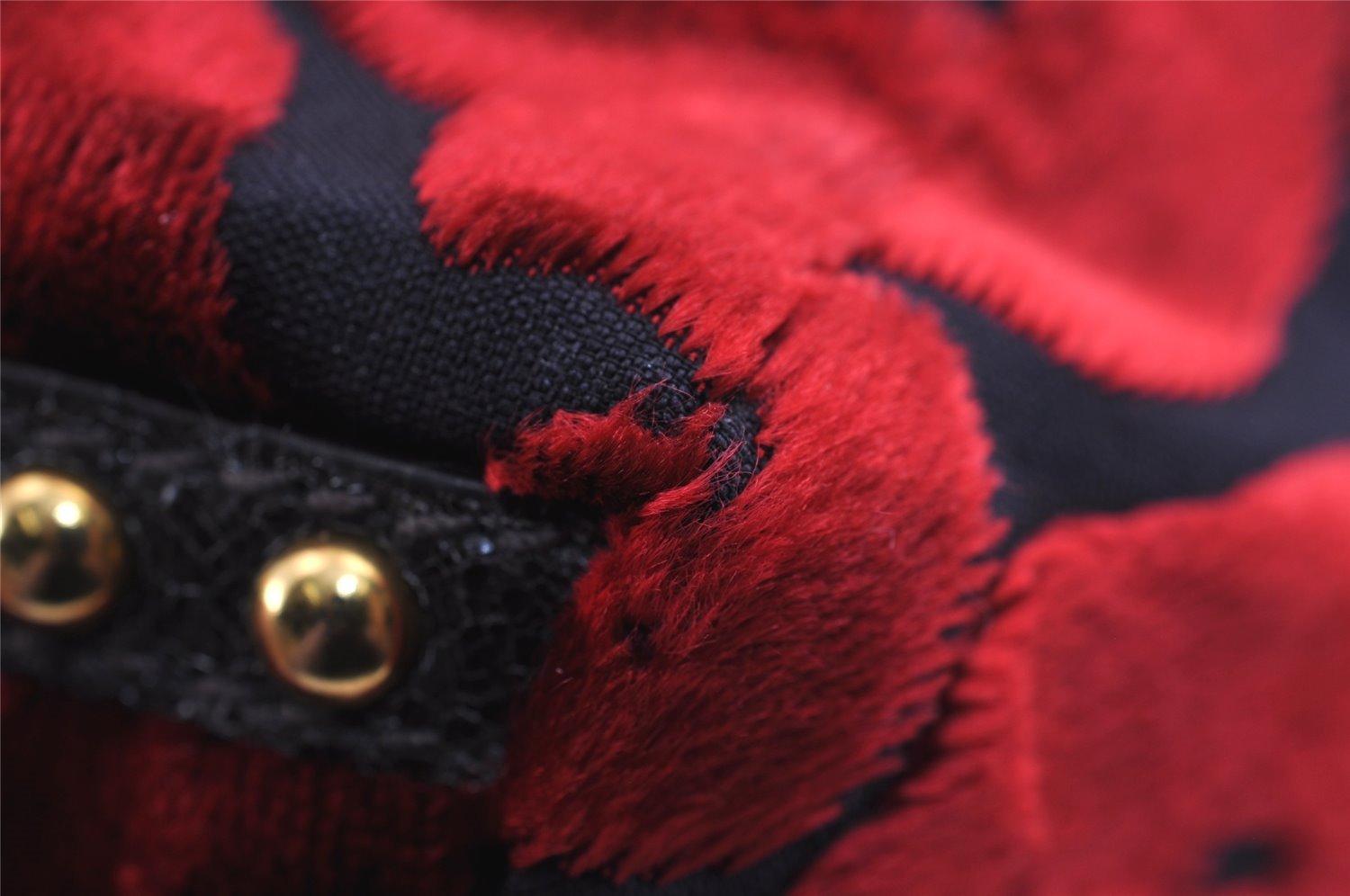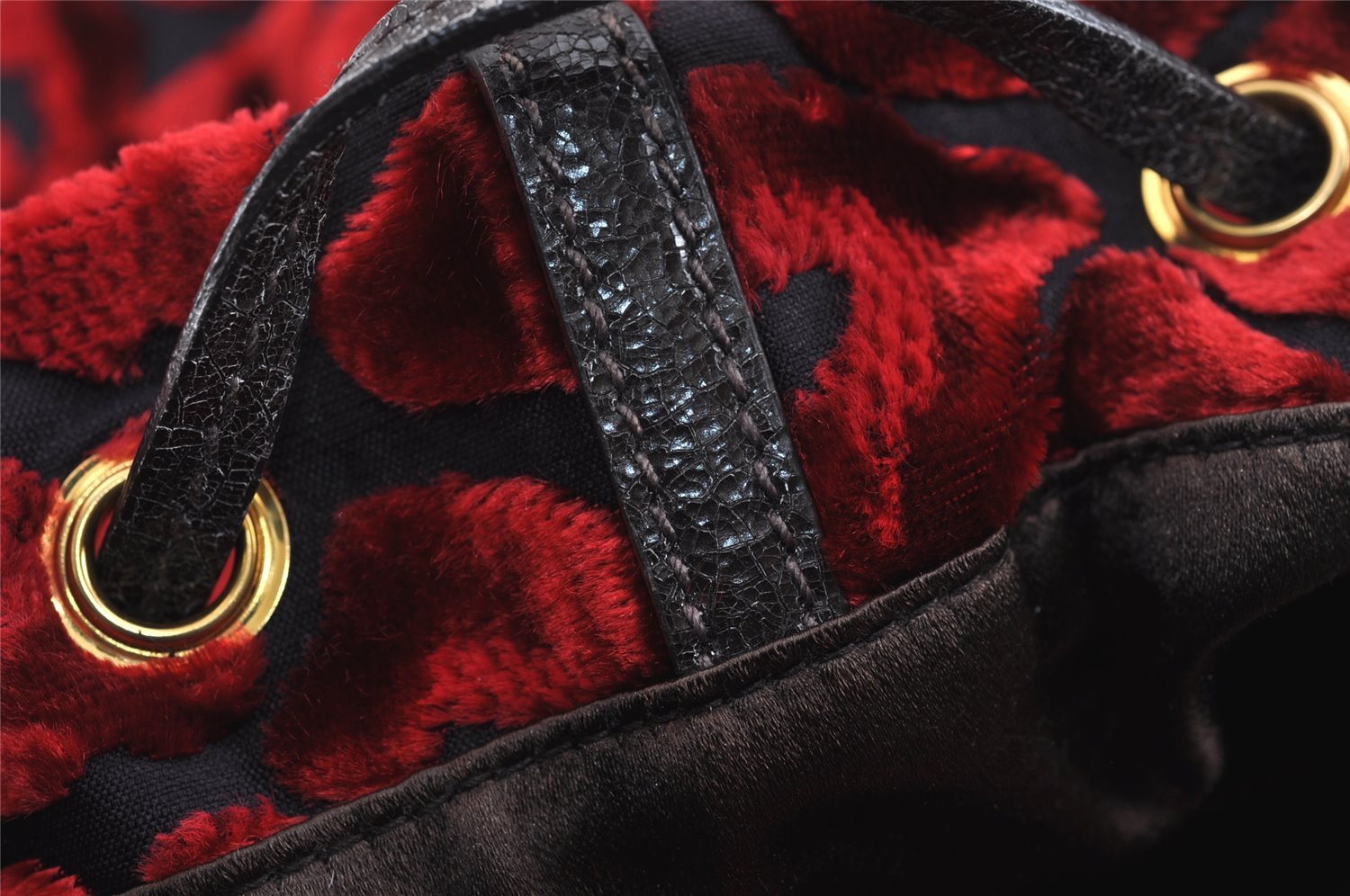 | Authentic PRADA Studs Velour Leather Drawstring Hand Bag Purse Red Black | |