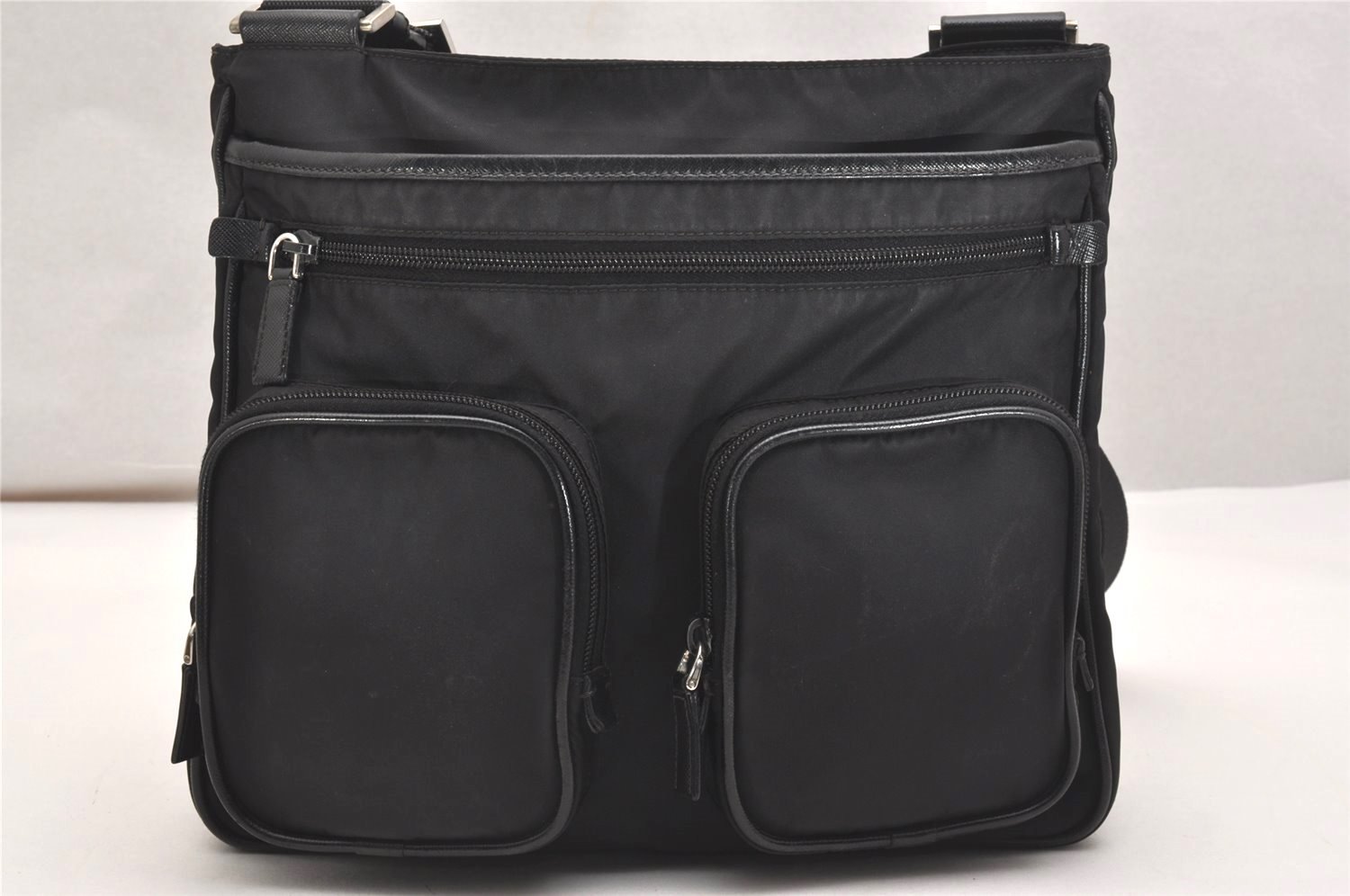 | Authentic PRADA Nylon Tessuto Leather Shoulder Cross Body Bag Purse Black | |