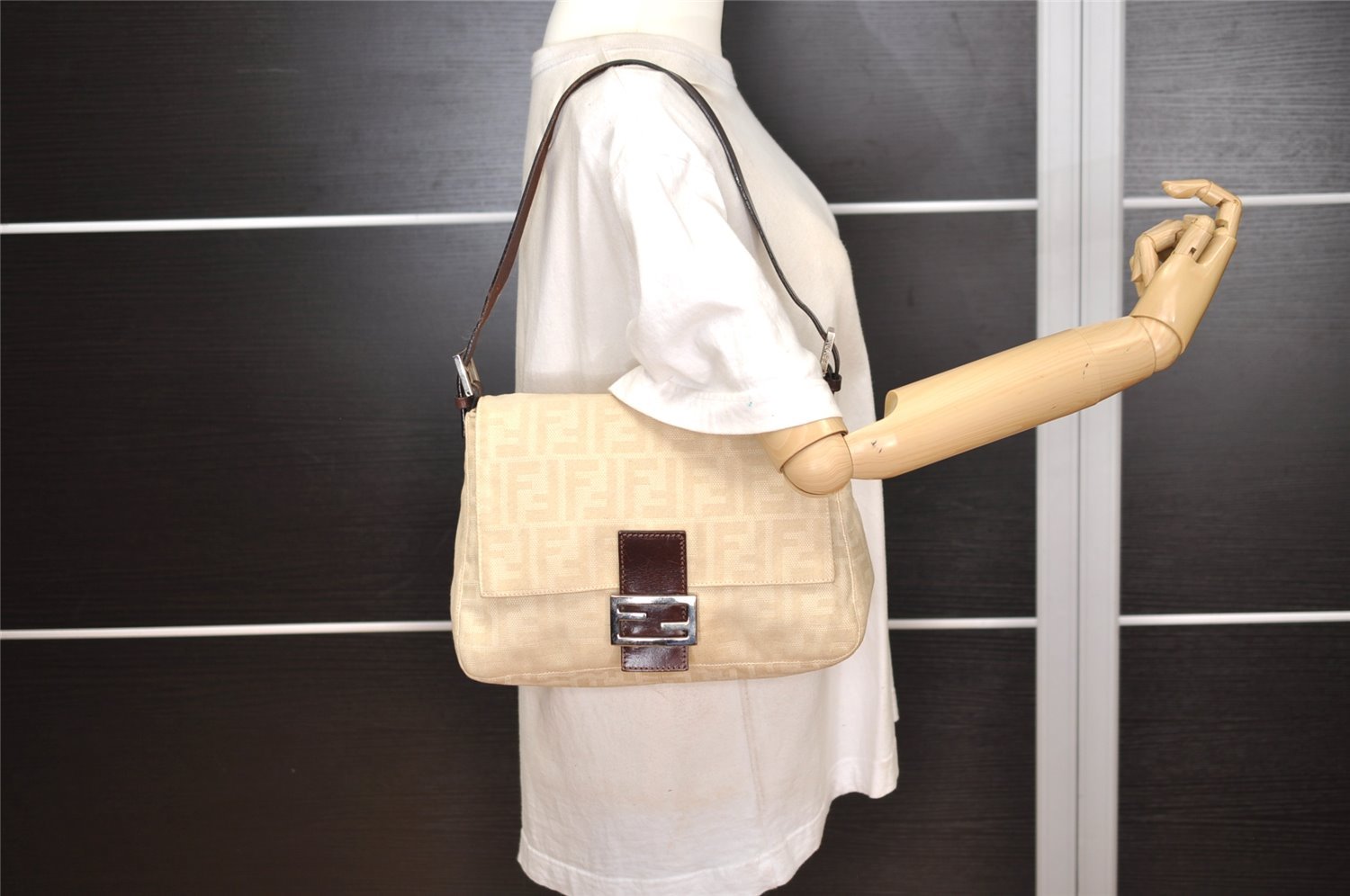 | Authentic FENDI Zucca Mamma Baguette Shoulder Bag Canvas Leather Beige | |