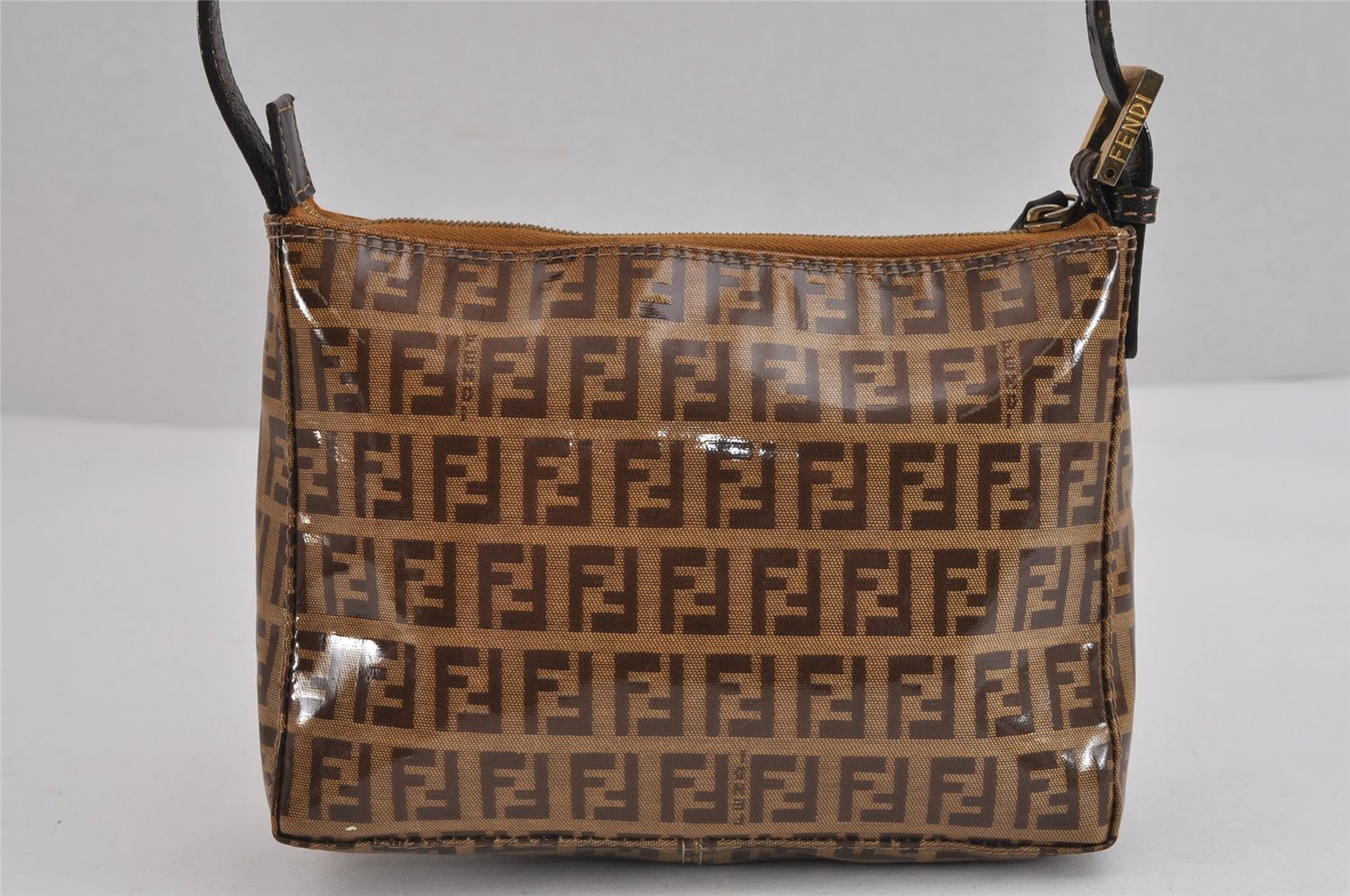 | Authentic FENDI Vintage Zucchino Shoulder Hand Bag Purse PVC Leather Brown | |