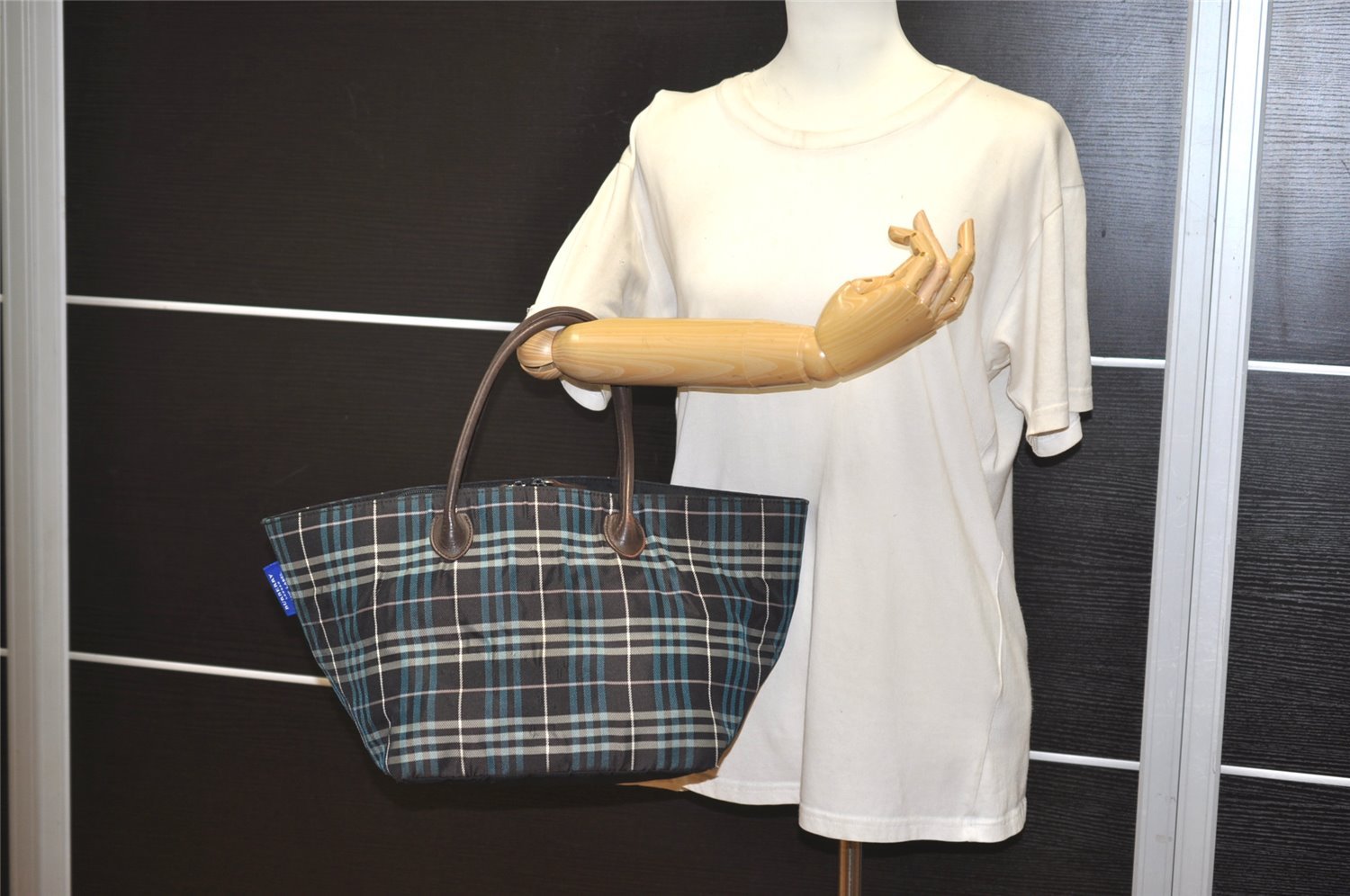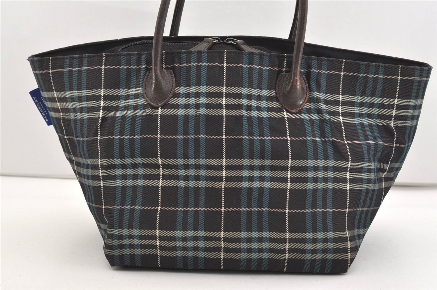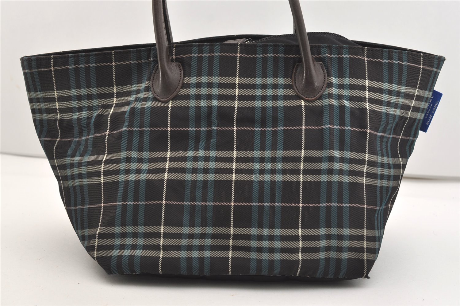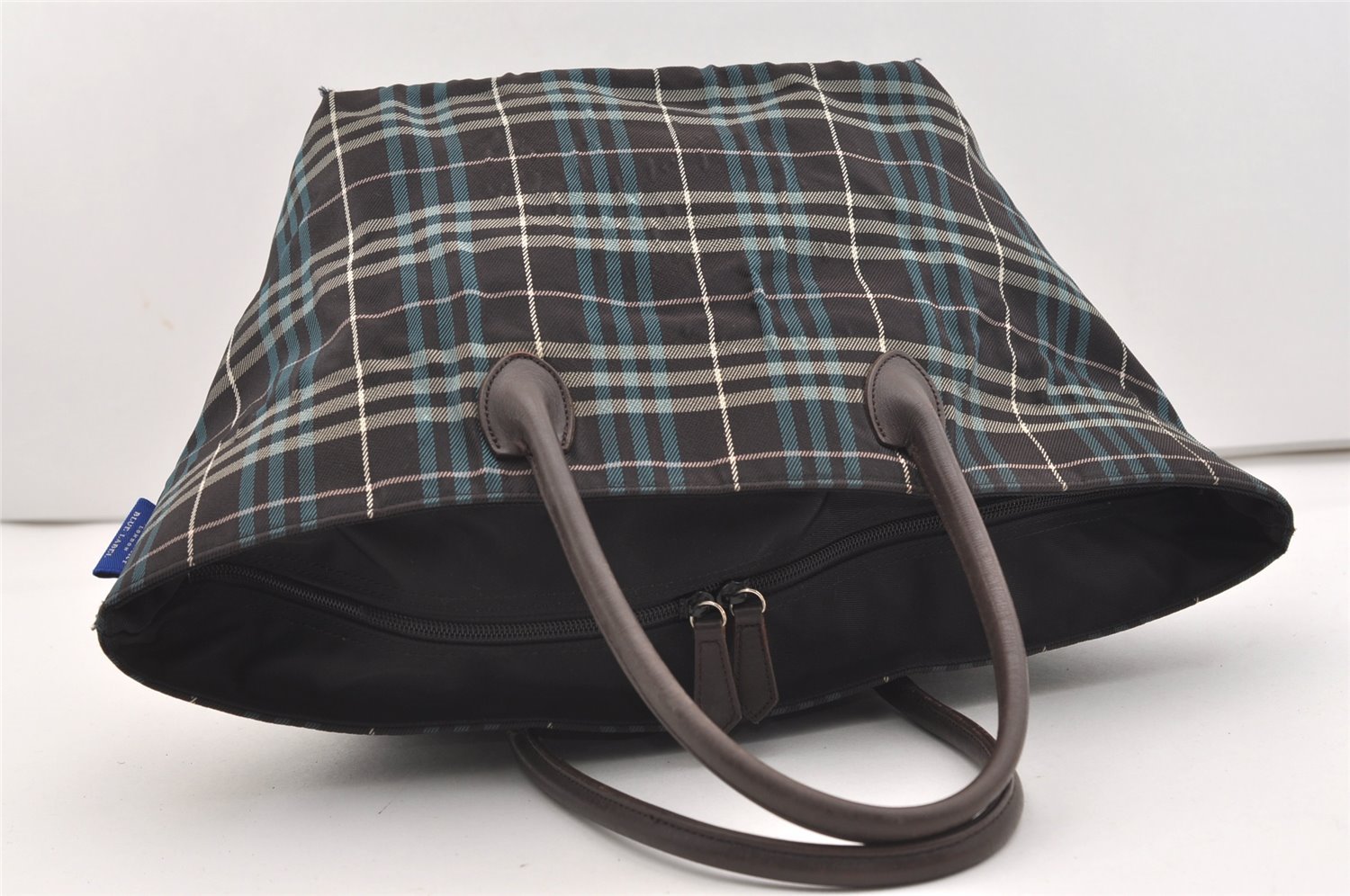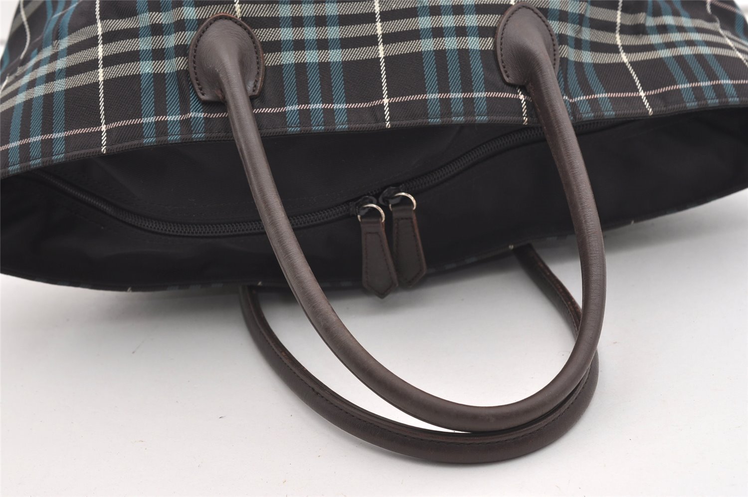 | Authentic BURBERRY BLUE LABEL Check Shoulder Tote Bag Nylon Leather Brown | |