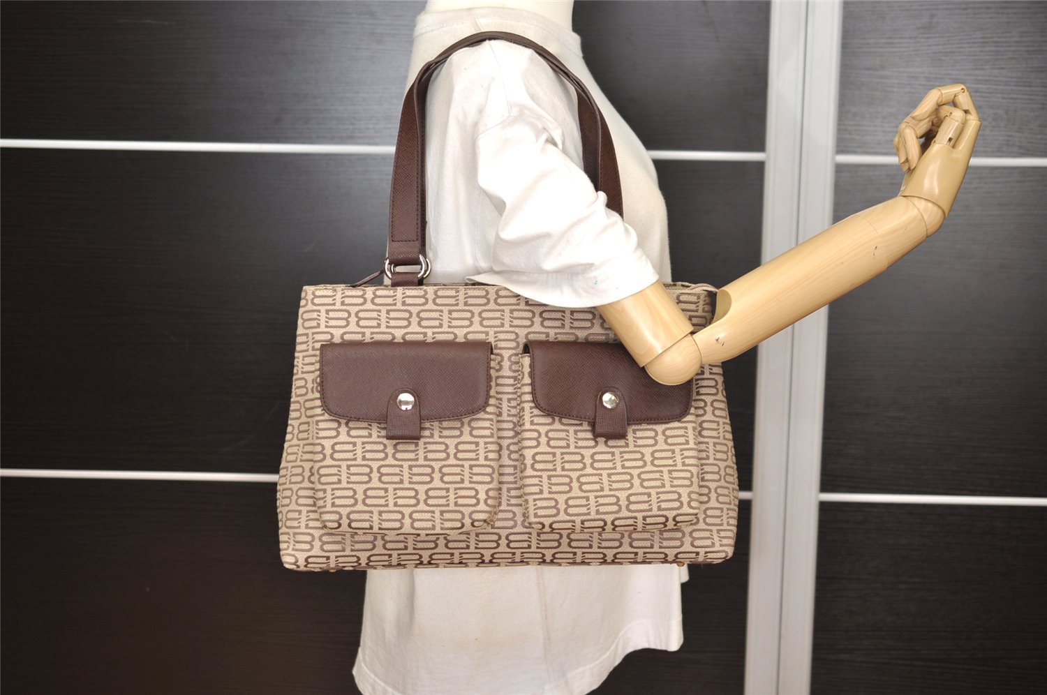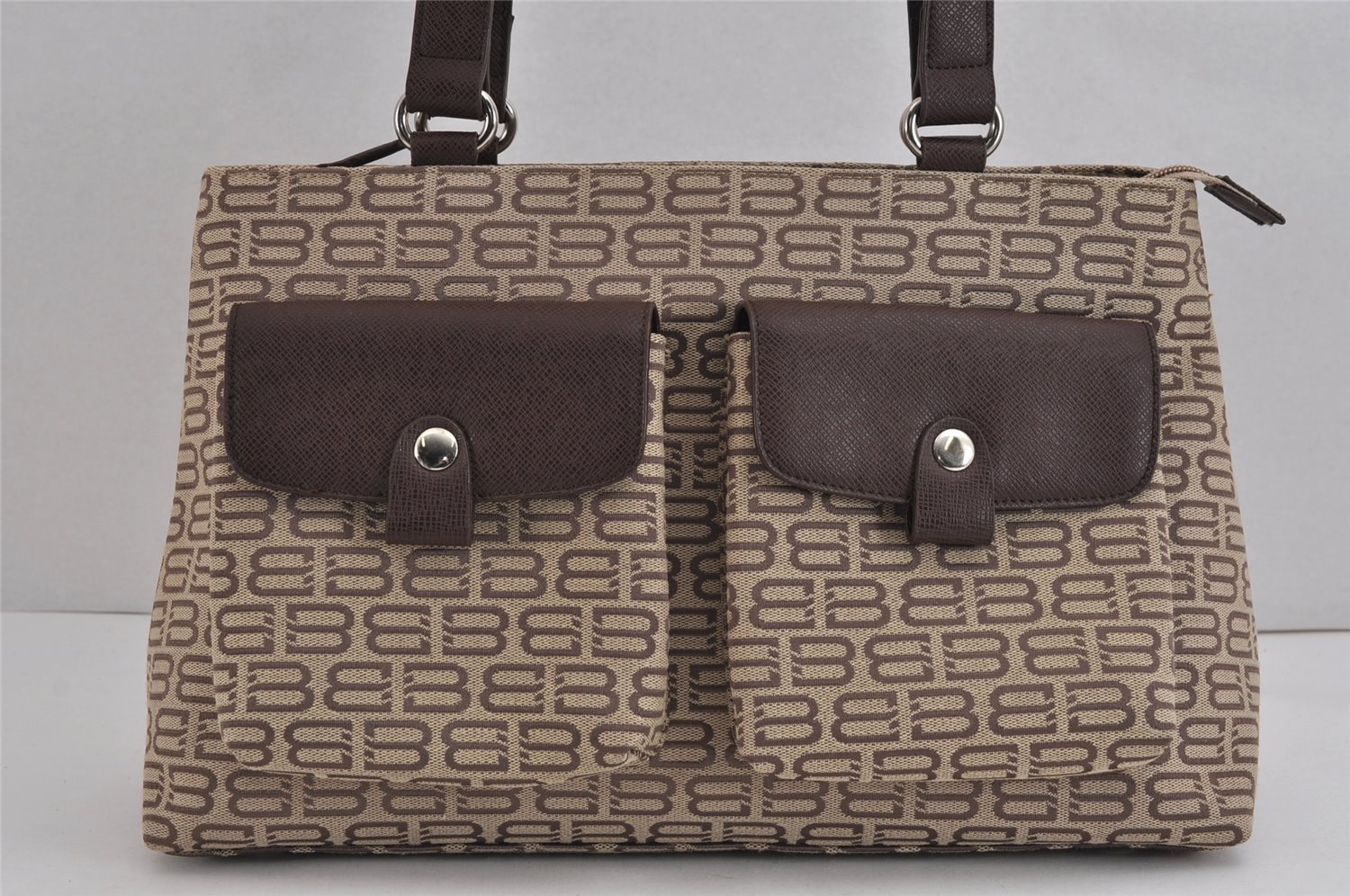 | Authentic BALENCIAGA Signature BB Monogram Tote Bag Canvas Leather Brown | |