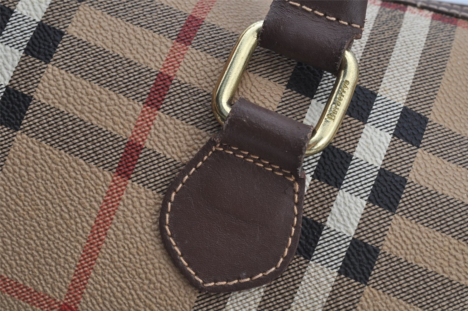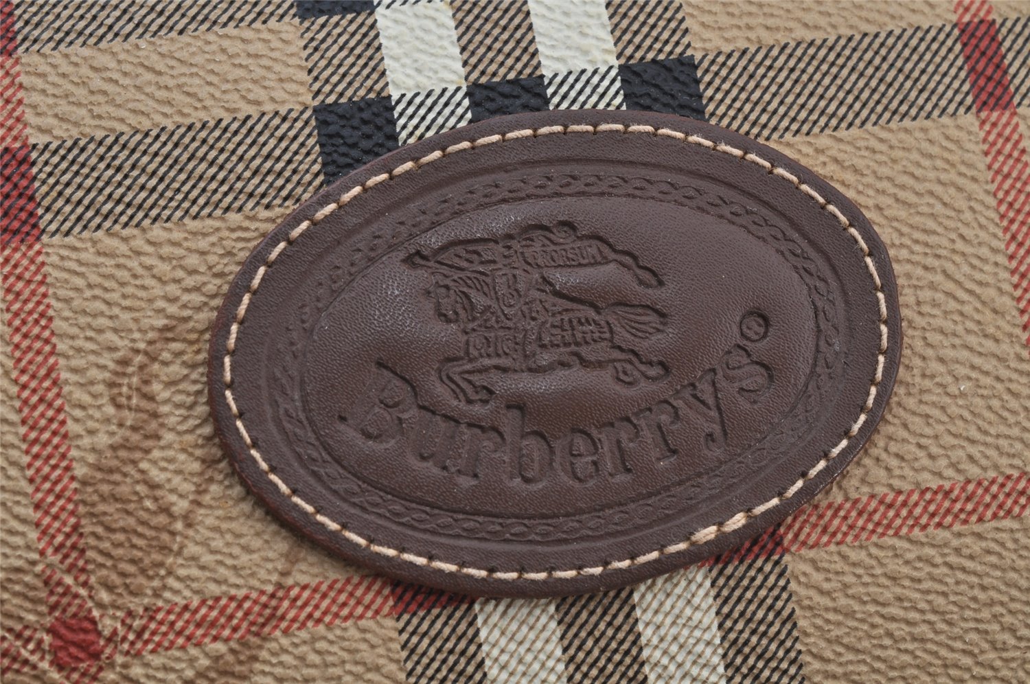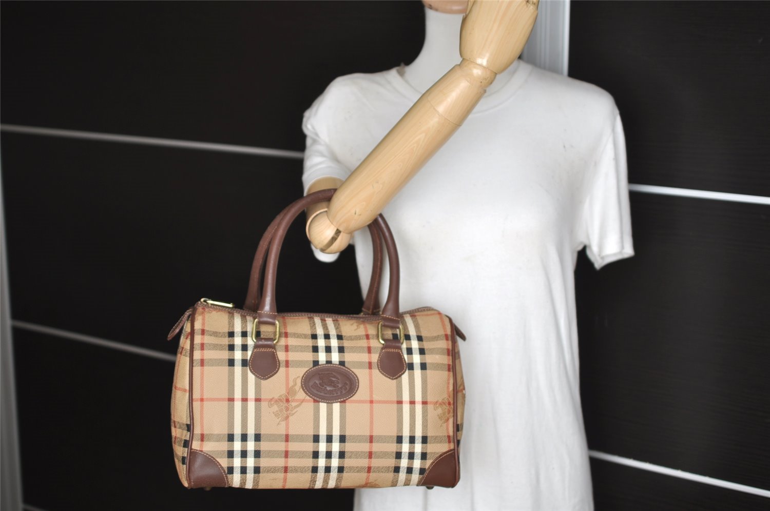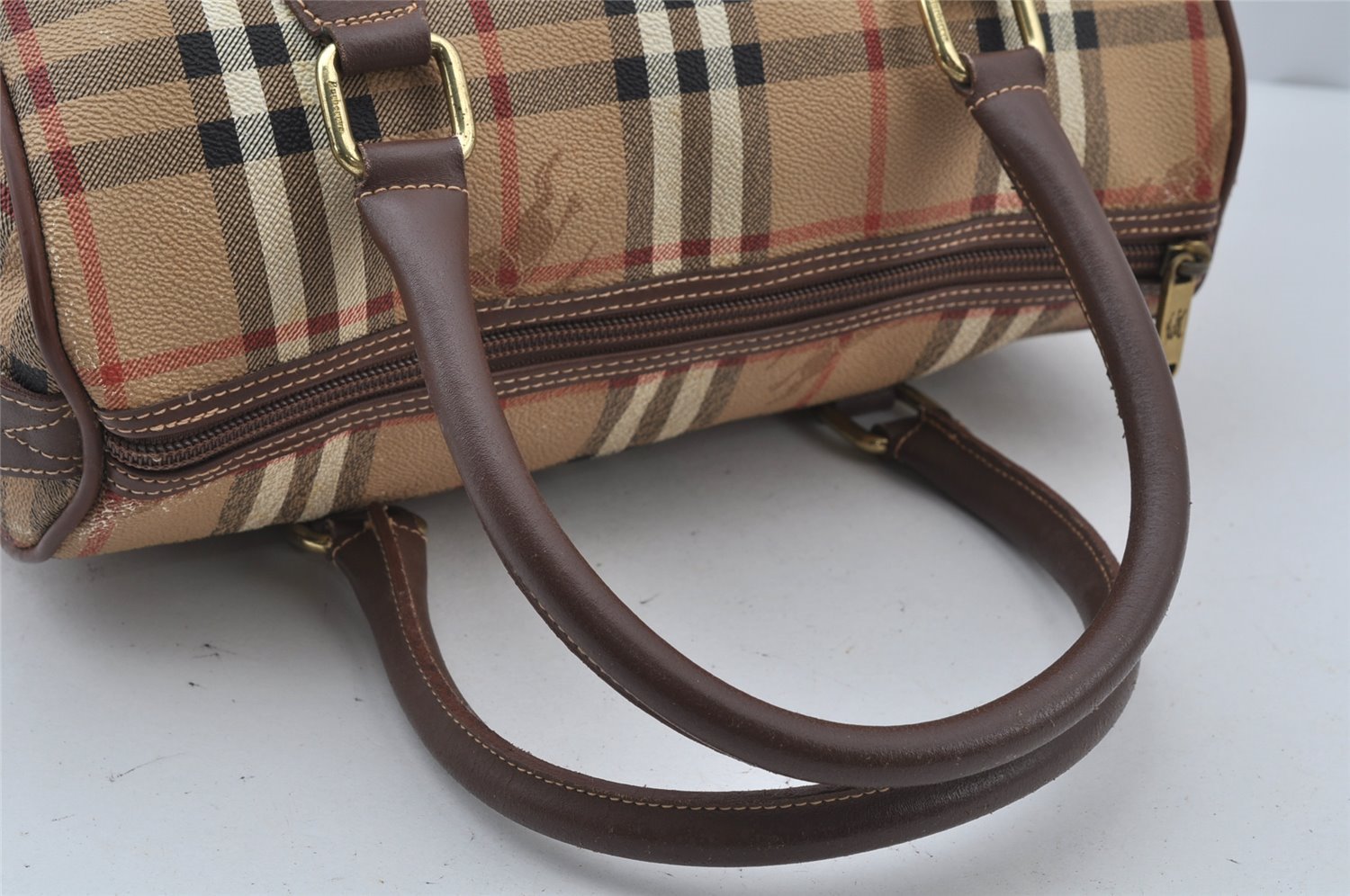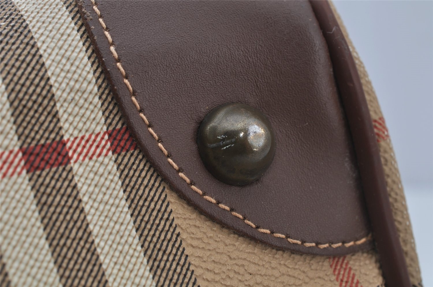 | Authentic Burberrys Nova Check PVC Leather Hand Boston Bag Brown Beige | |