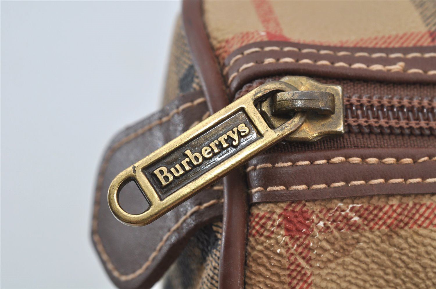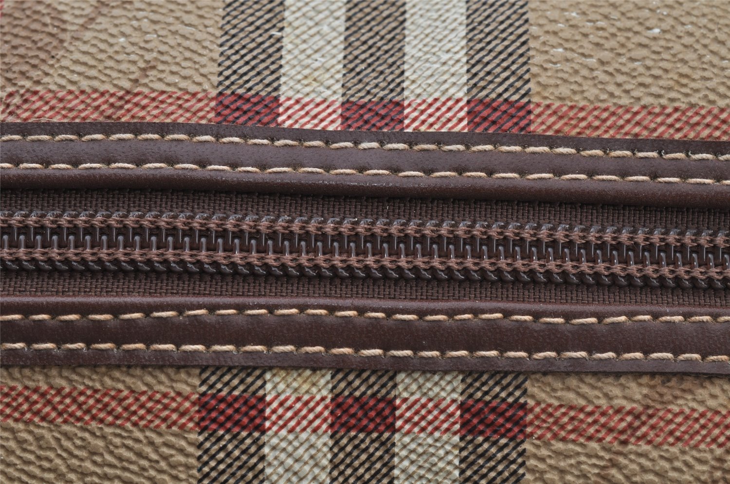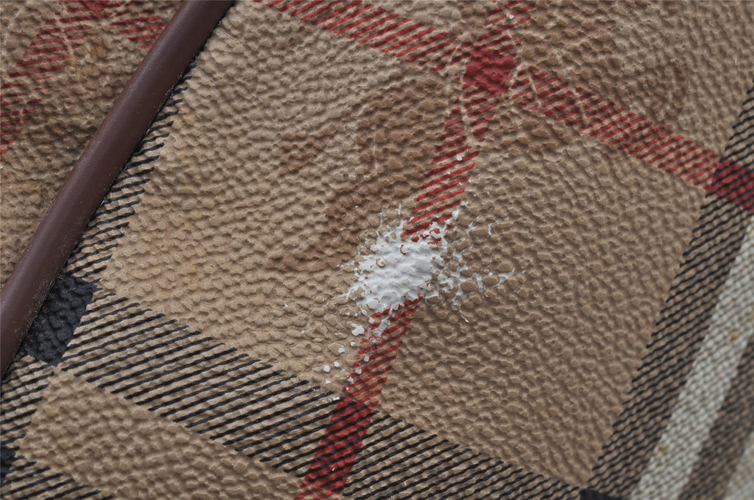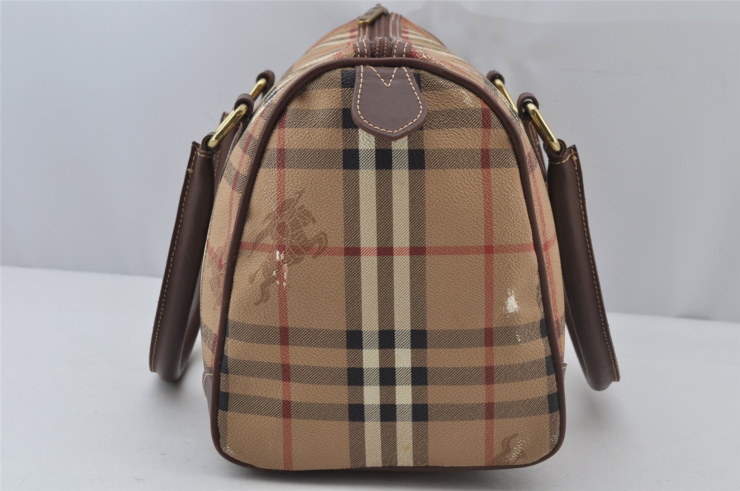 | Authentic Burberrys Nova Check PVC Leather Hand Boston Bag Brown Beige | |