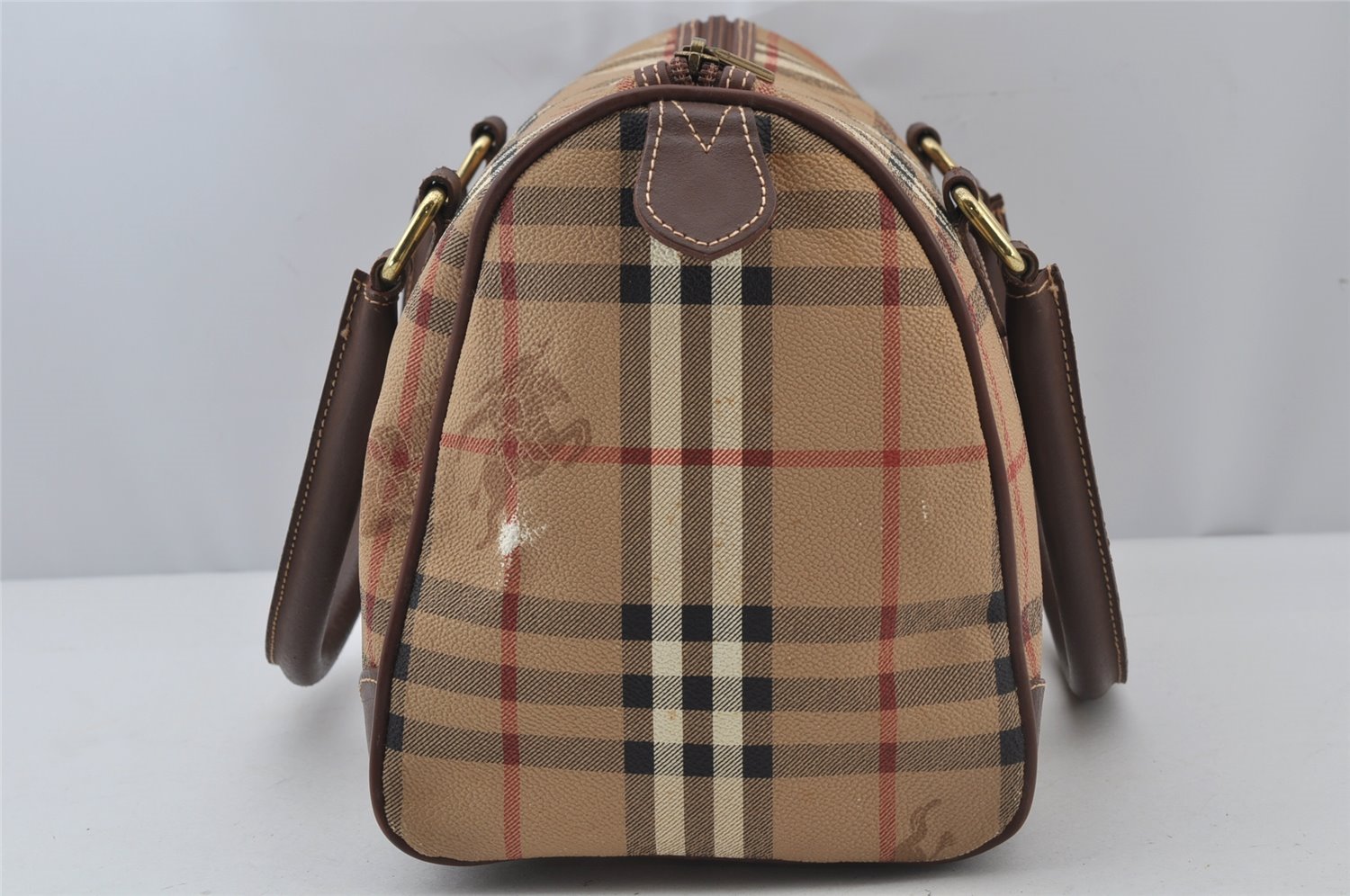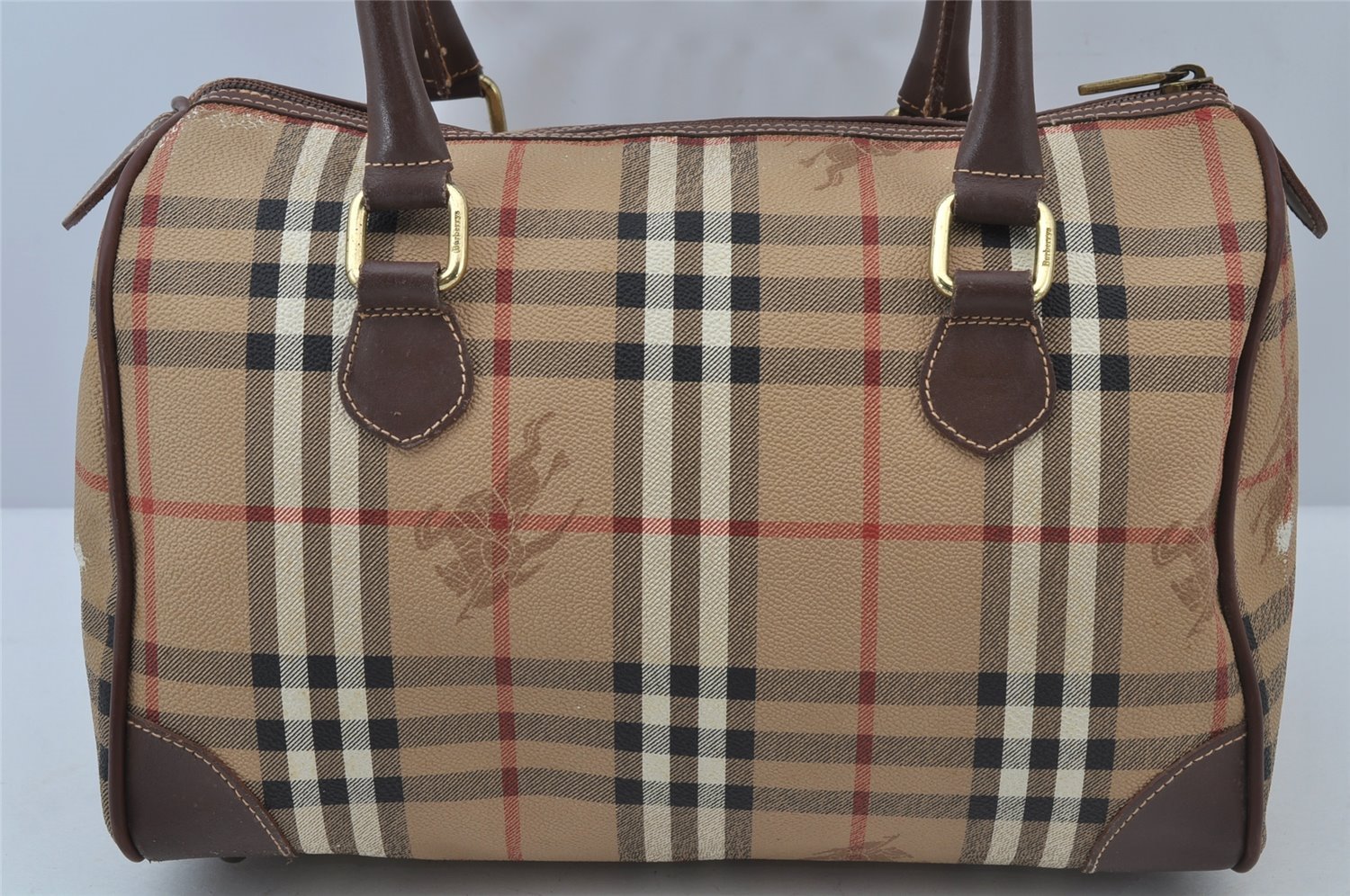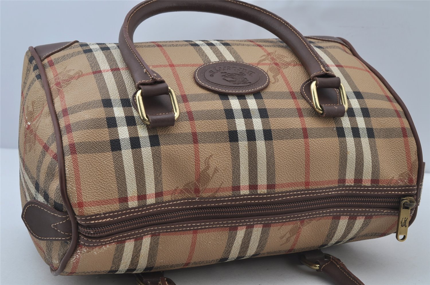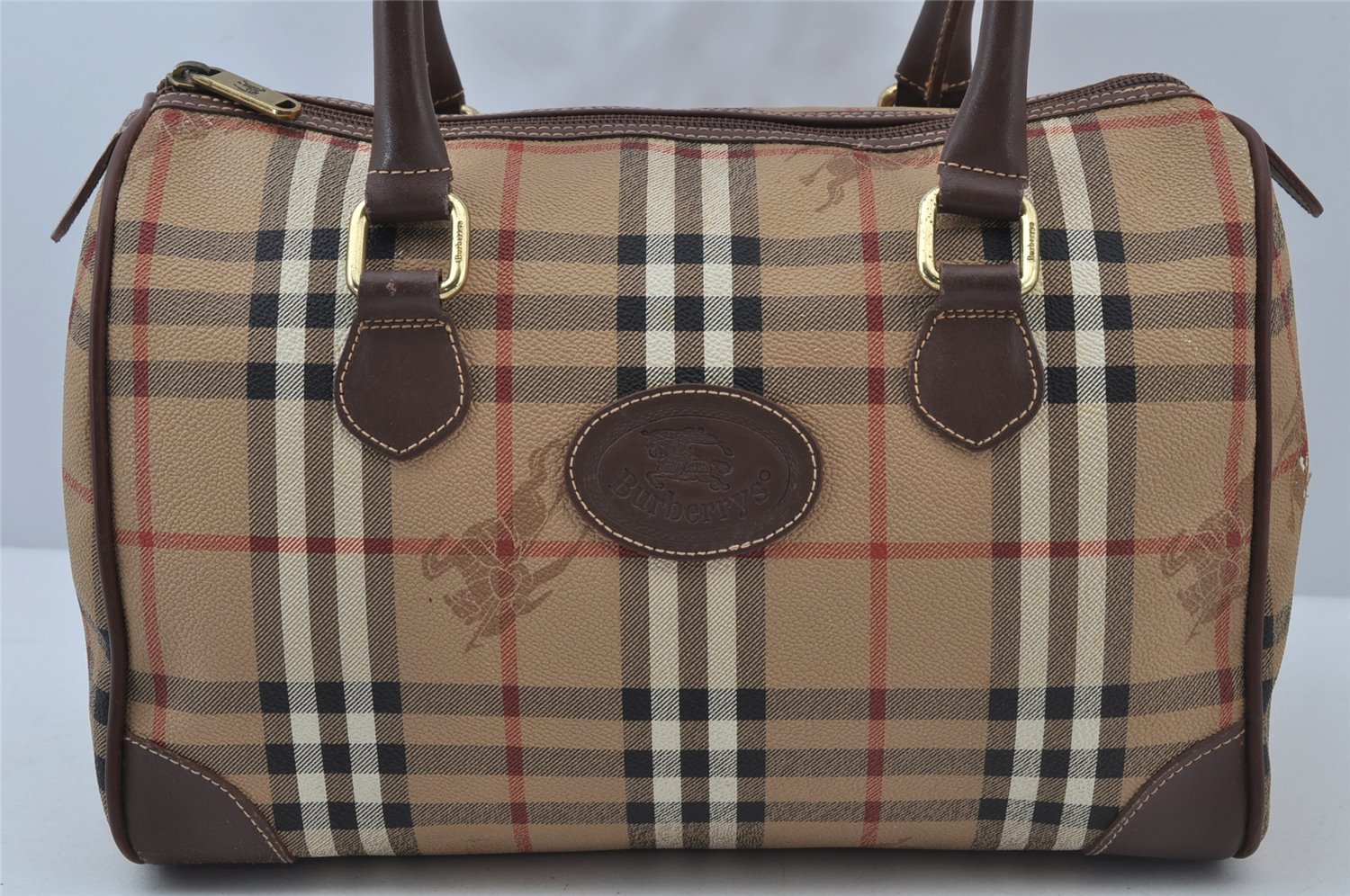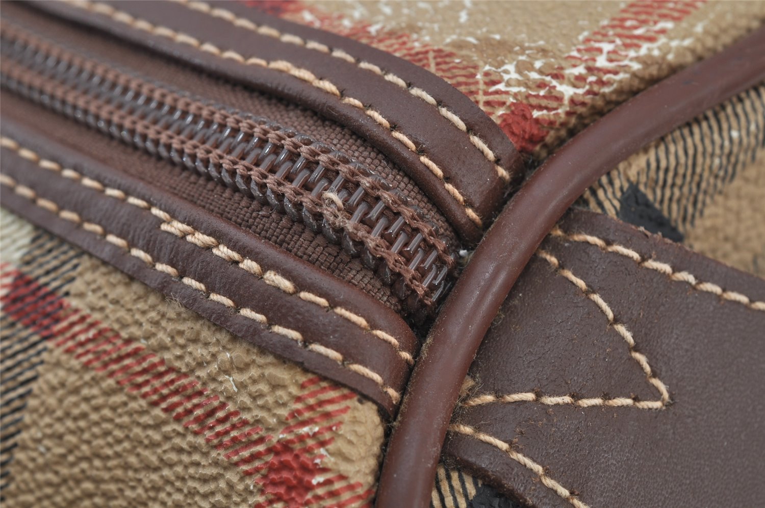 | Authentic Burberrys Nova Check PVC Leather Hand Boston Bag Brown Beige | |