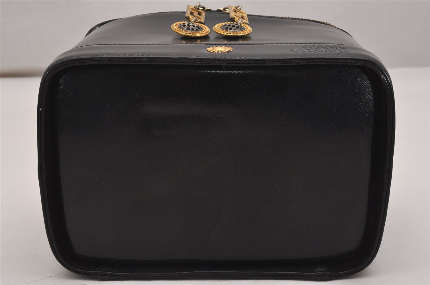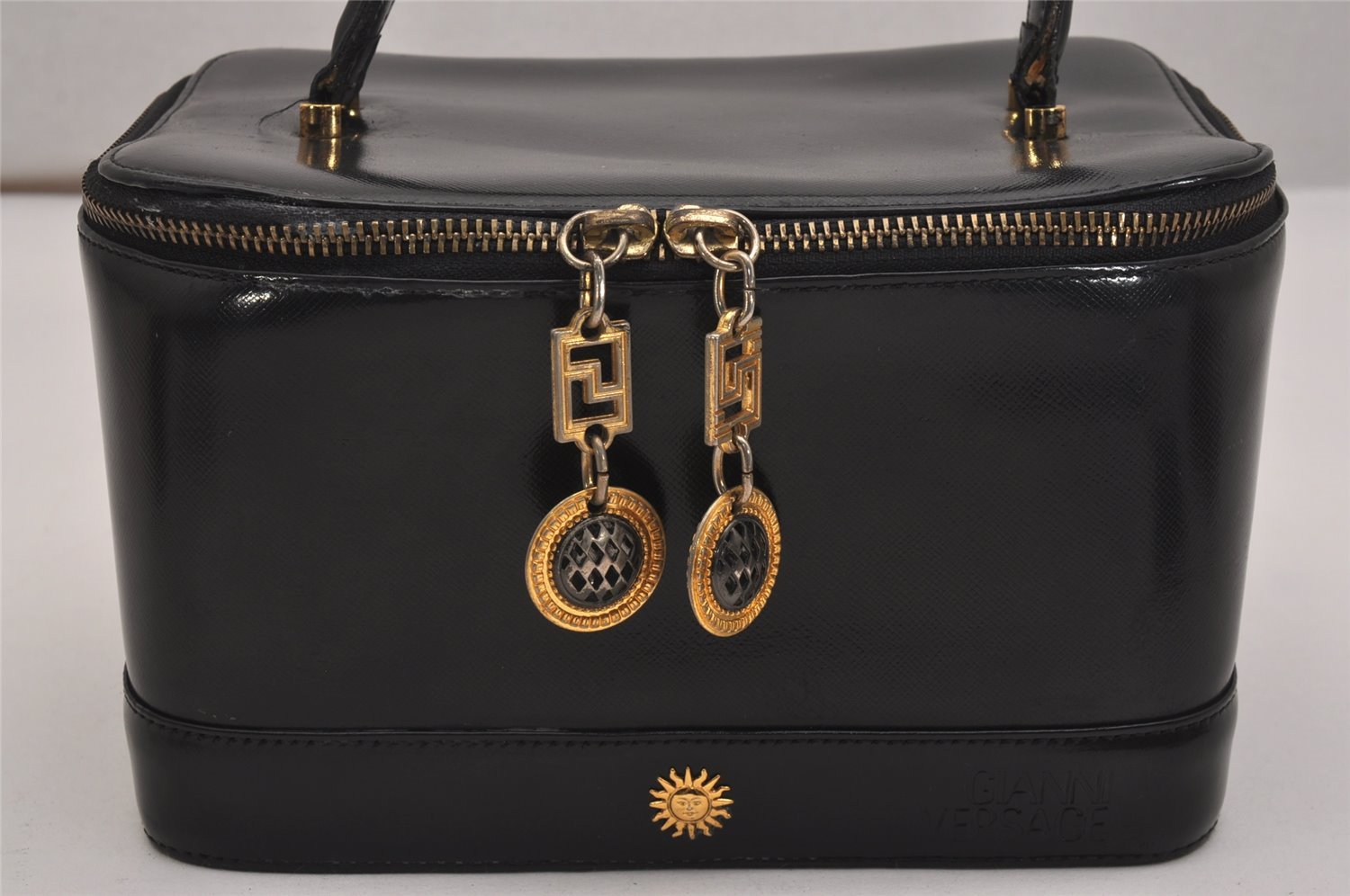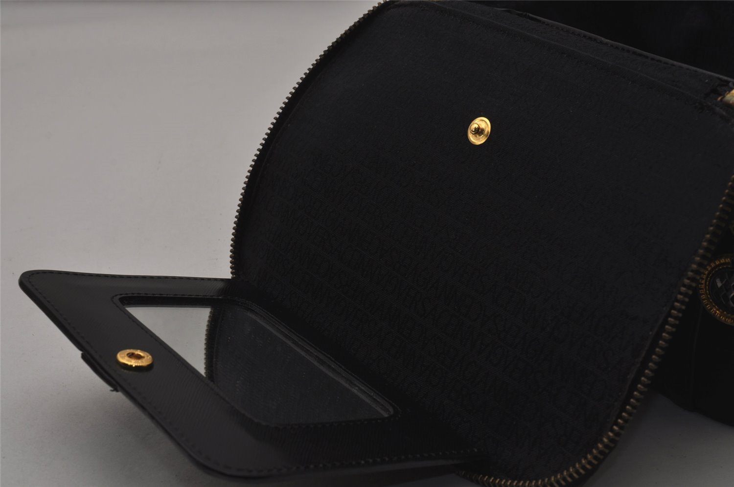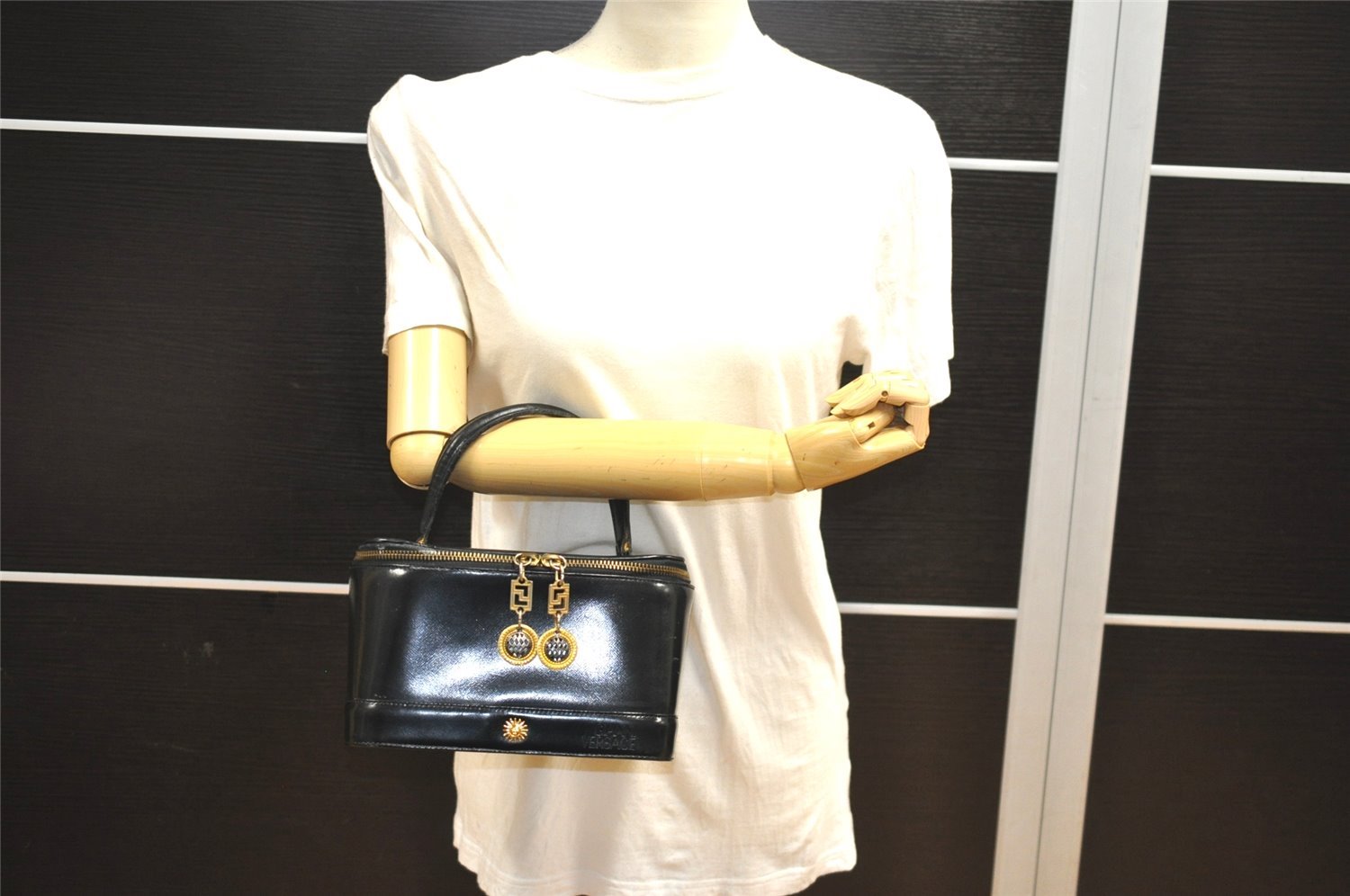 | Authentic Gianni Versace Sunburst Vanity Hand Bag Purse Leather Black | |