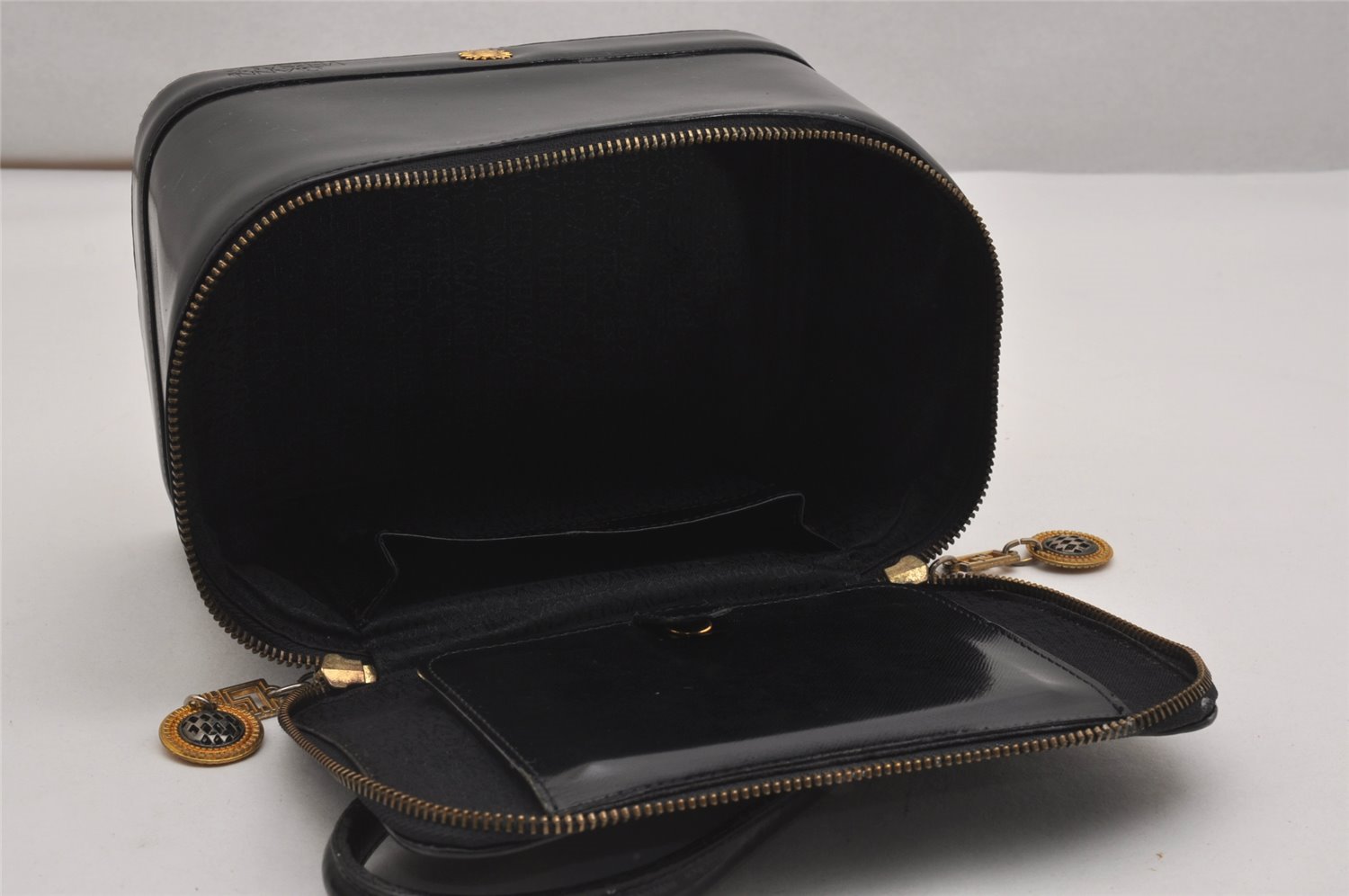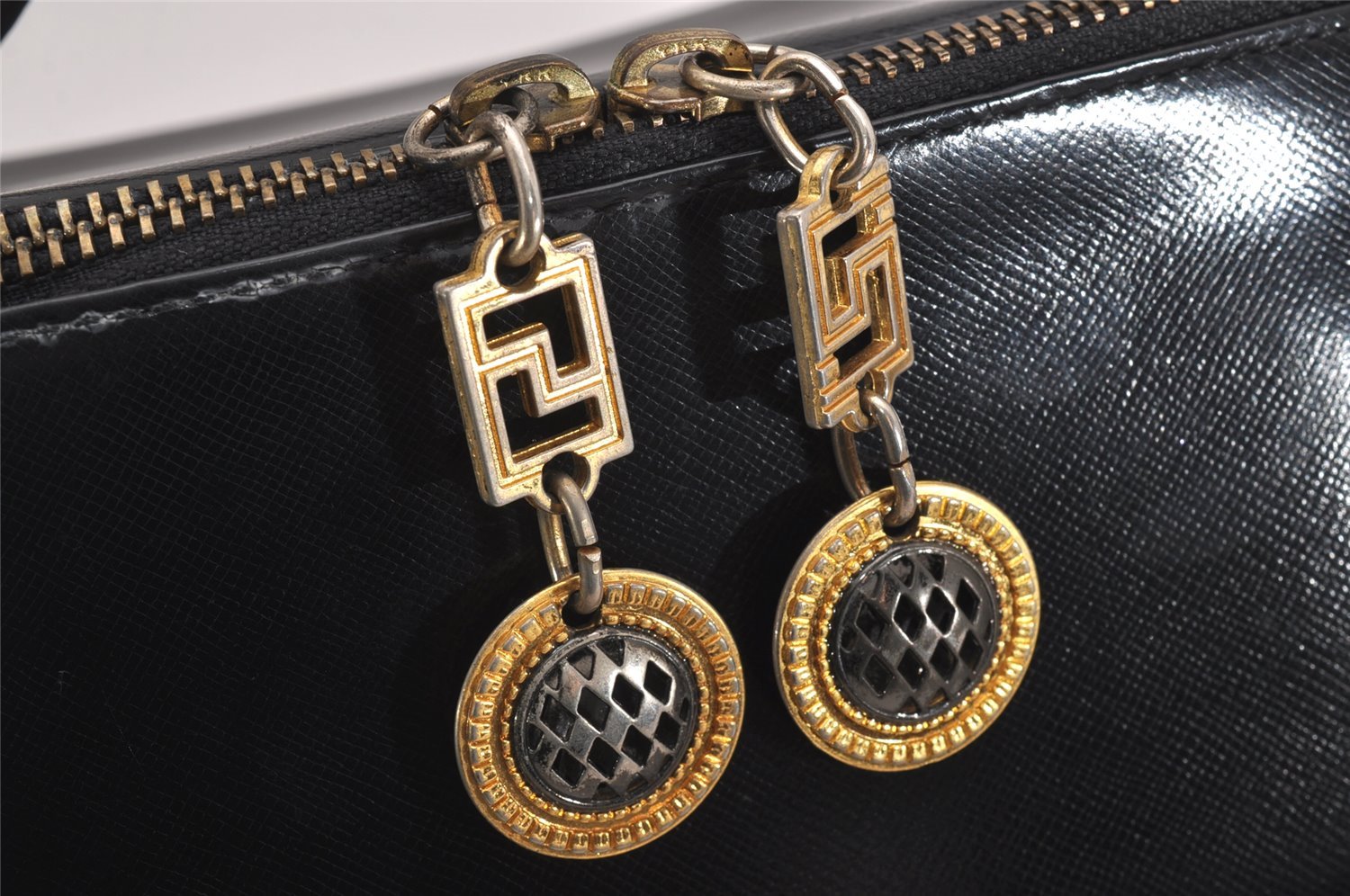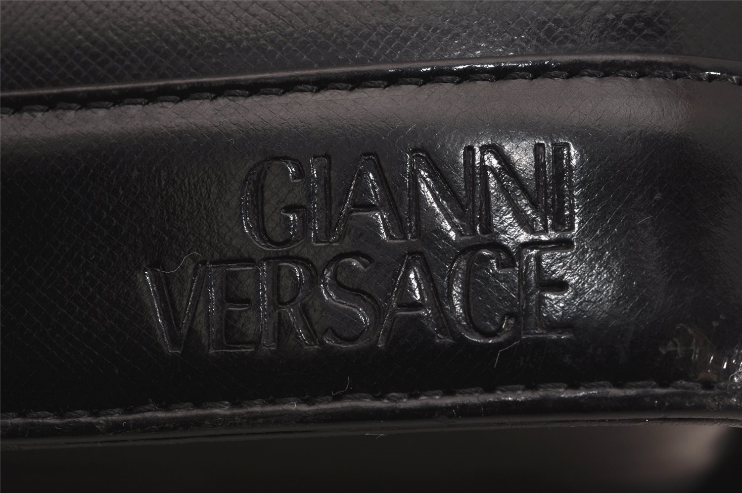 | Authentic Gianni Versace Sunburst Vanity Hand Bag Purse Leather Black | |