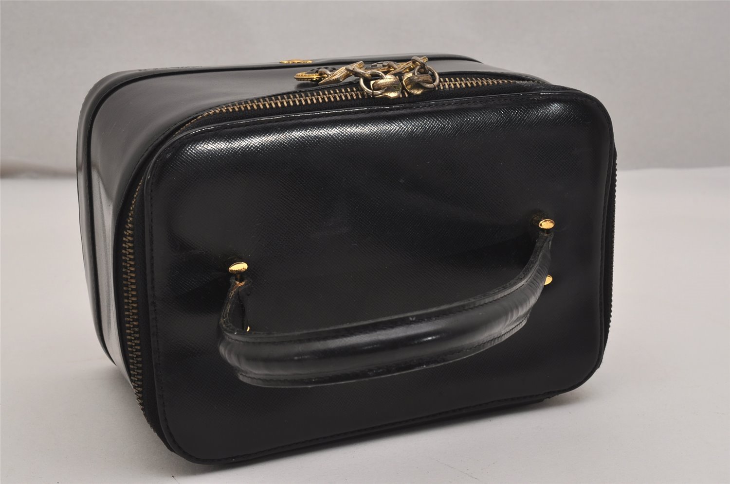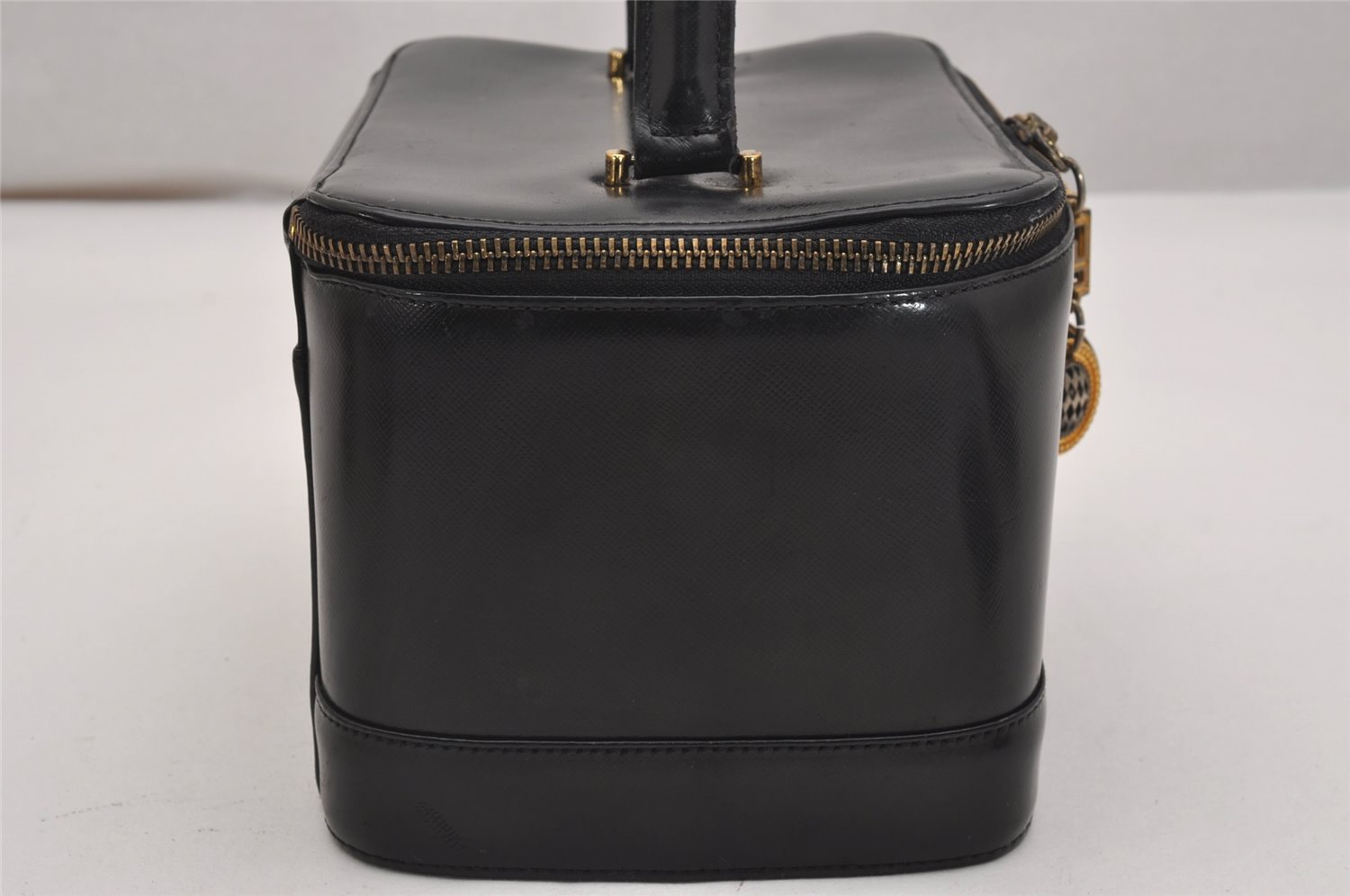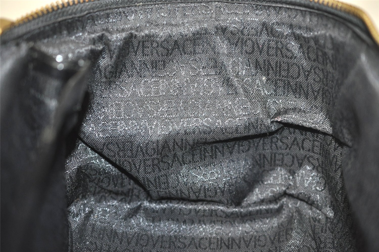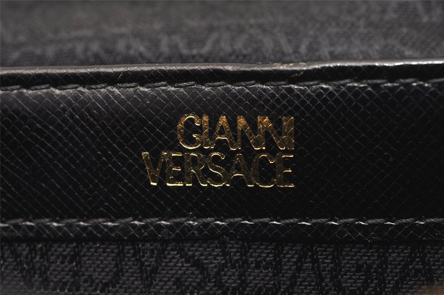 | Authentic Gianni Versace Sunburst Vanity Hand Bag Purse Leather Black | |