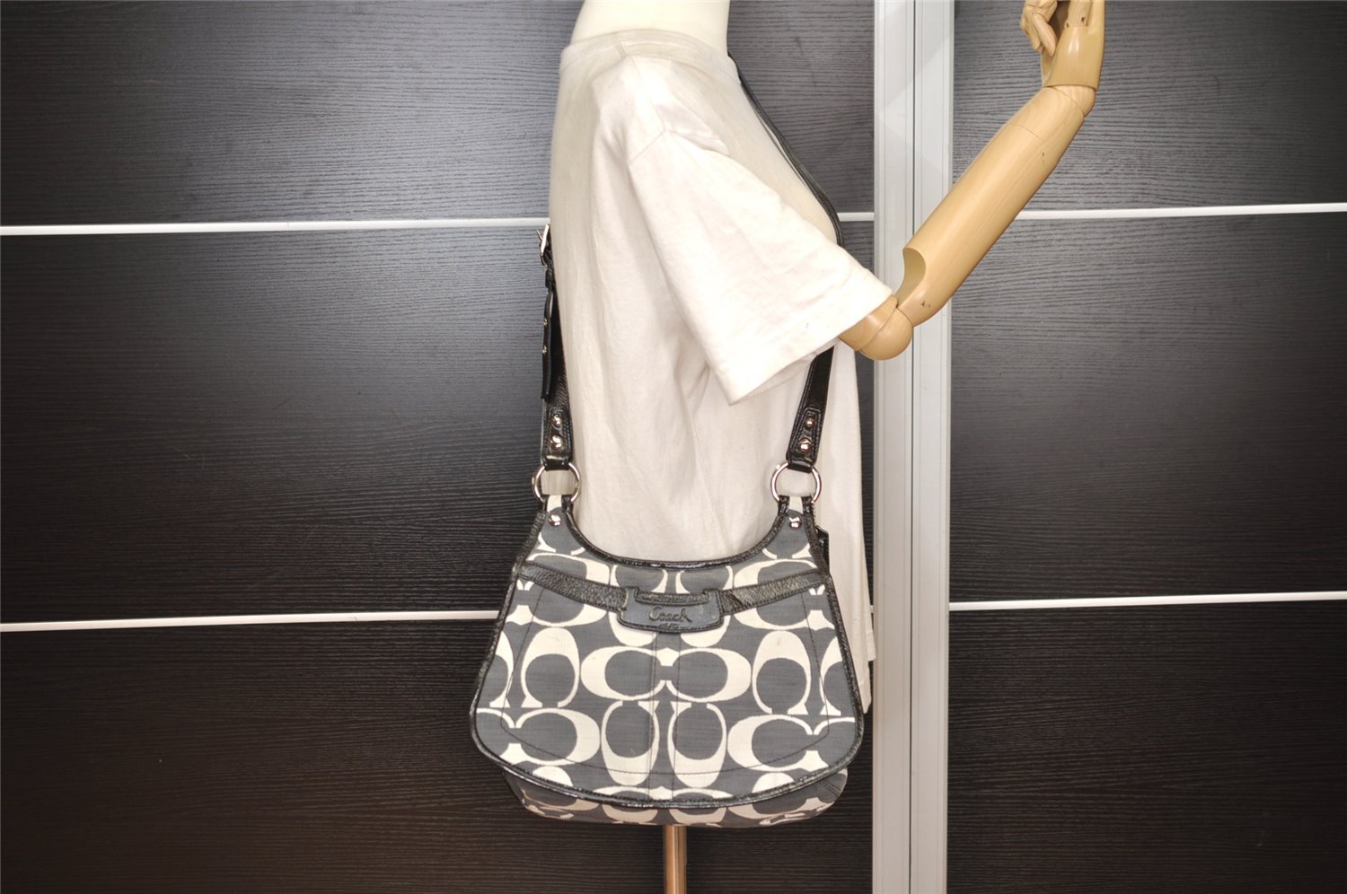 | Authentic COACH Signature Shoulder Cross Bag Canvas Enamel 13292 Gray | |