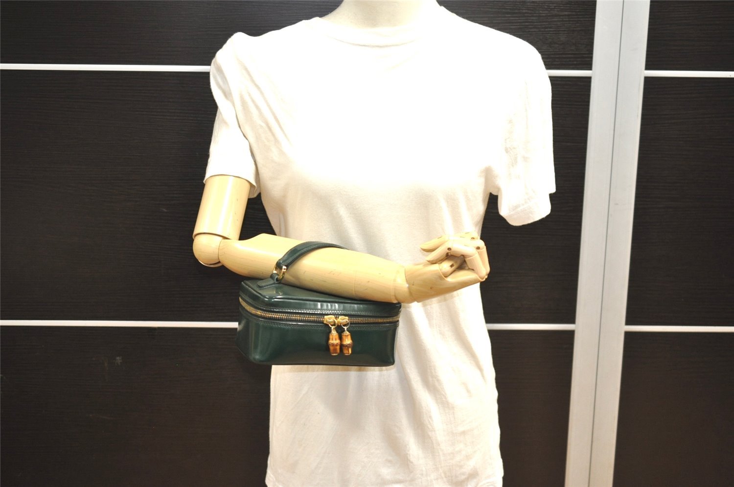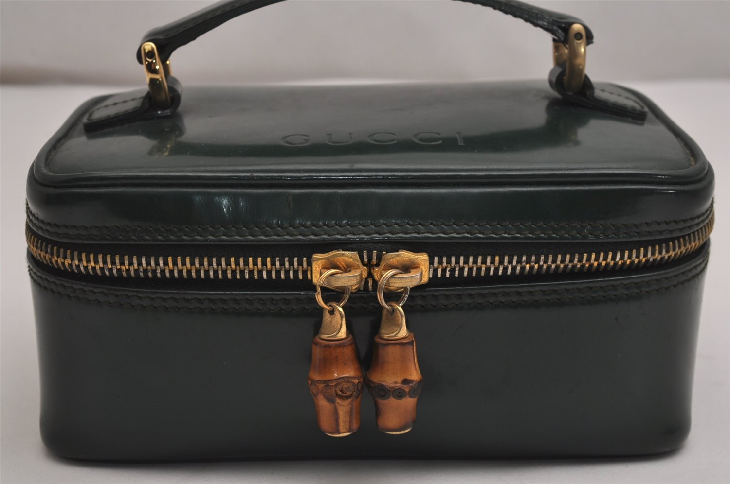 | Authentic GUCCI Bamboo Vanity Hand Bag Purse Leather Green Junk | |