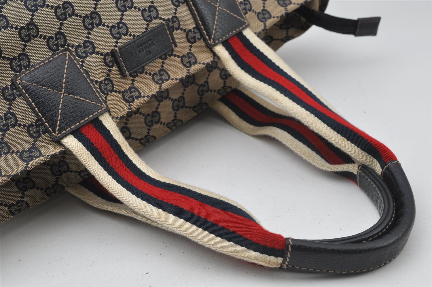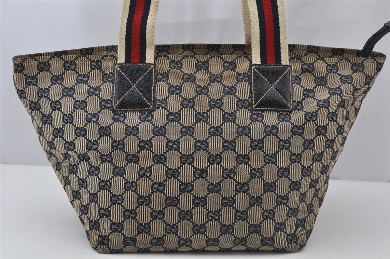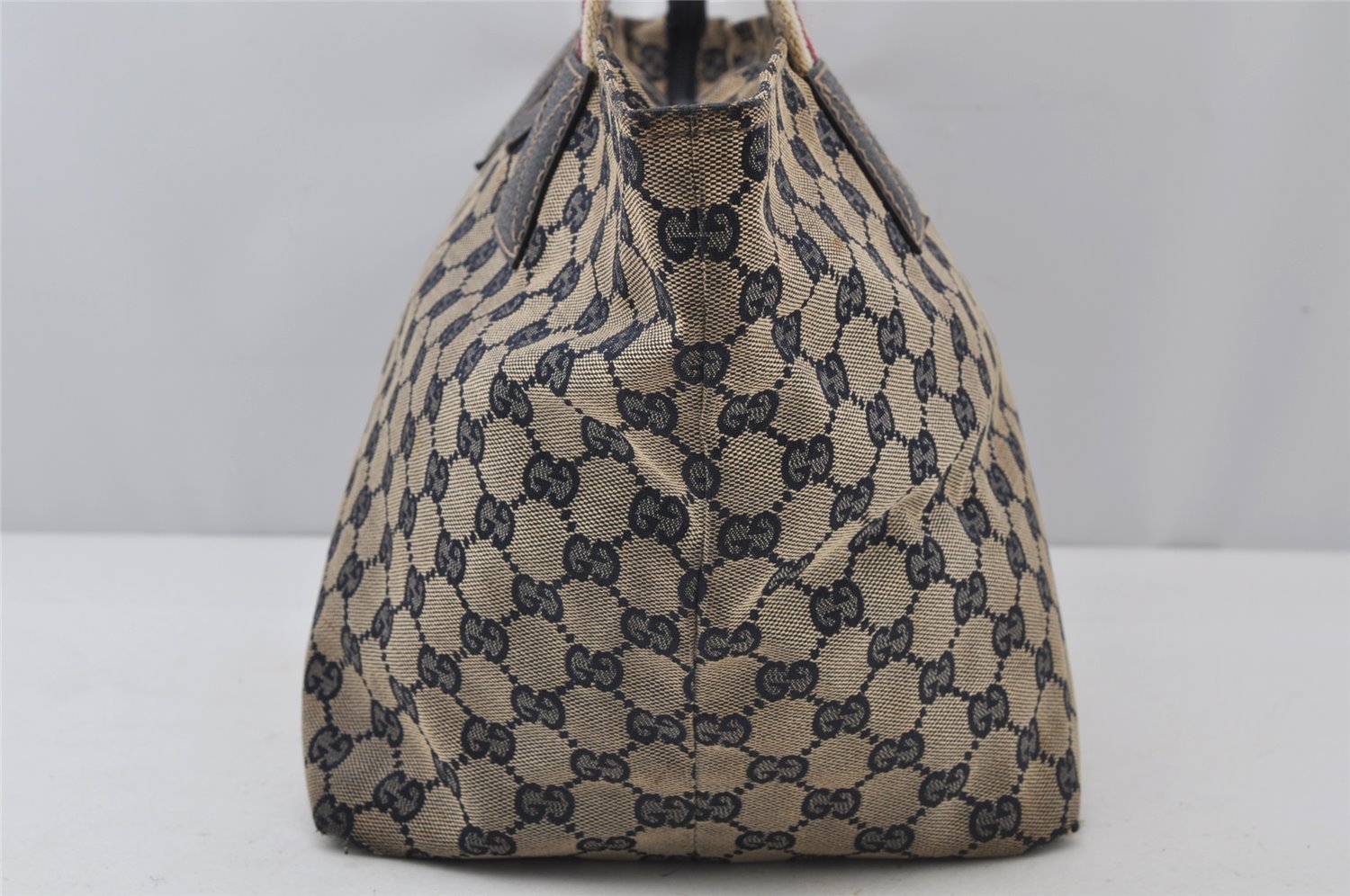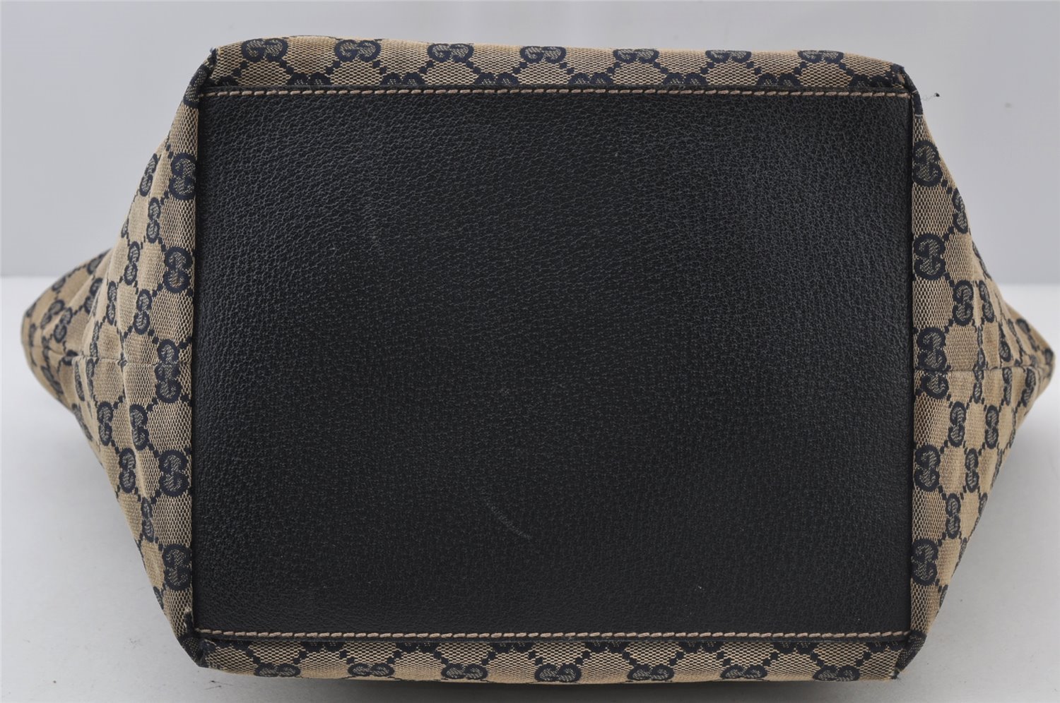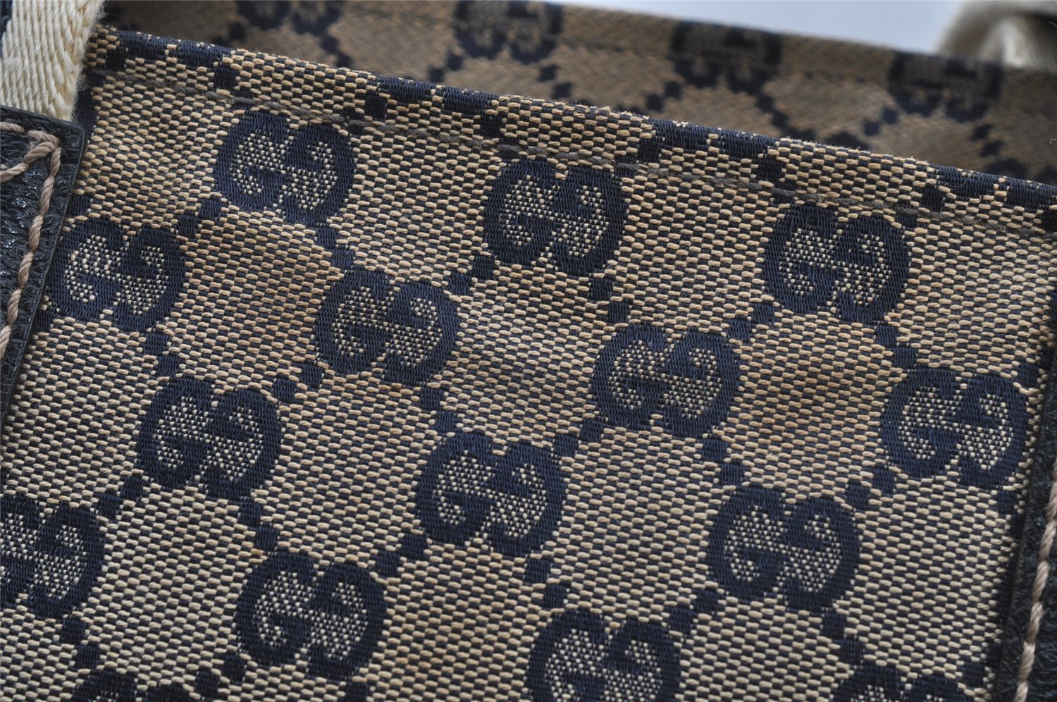 | Authentic GUCCI Sherry Line Tote Bag GG Canvas Leather 131230 Navy Blue | |