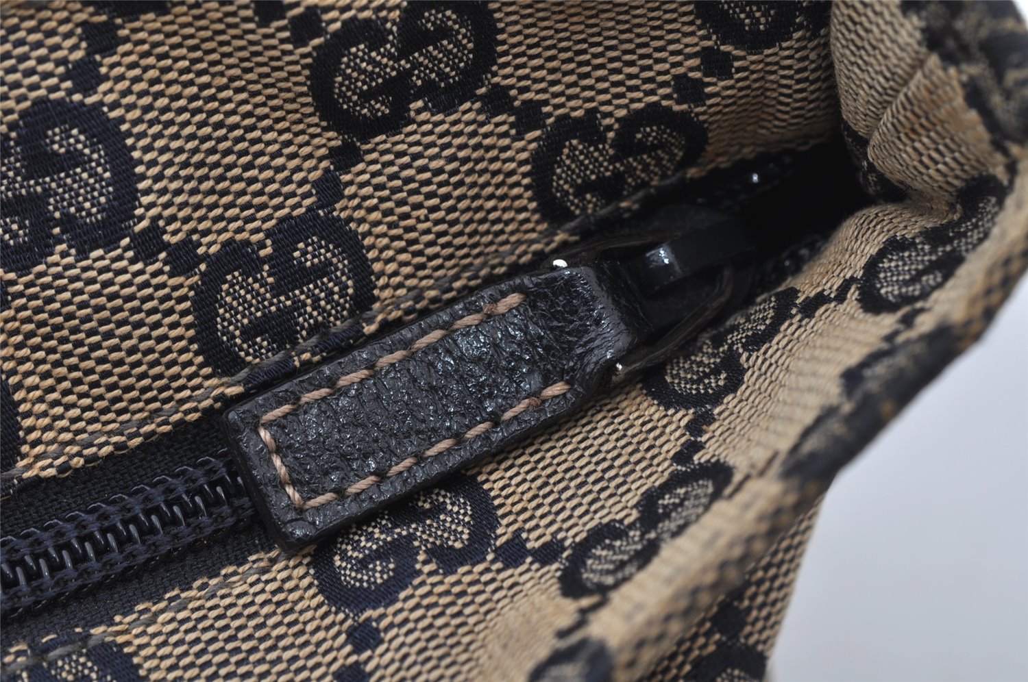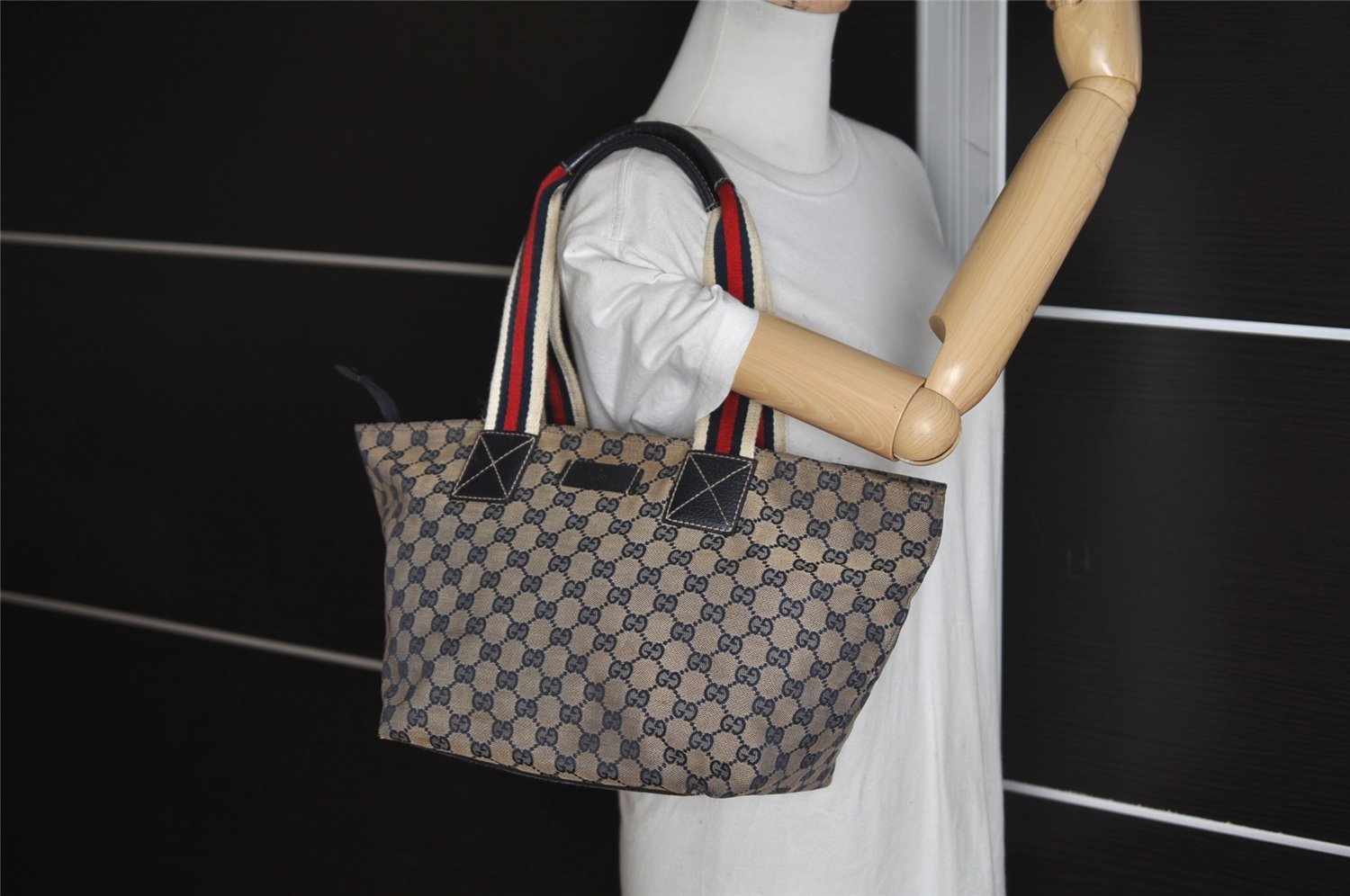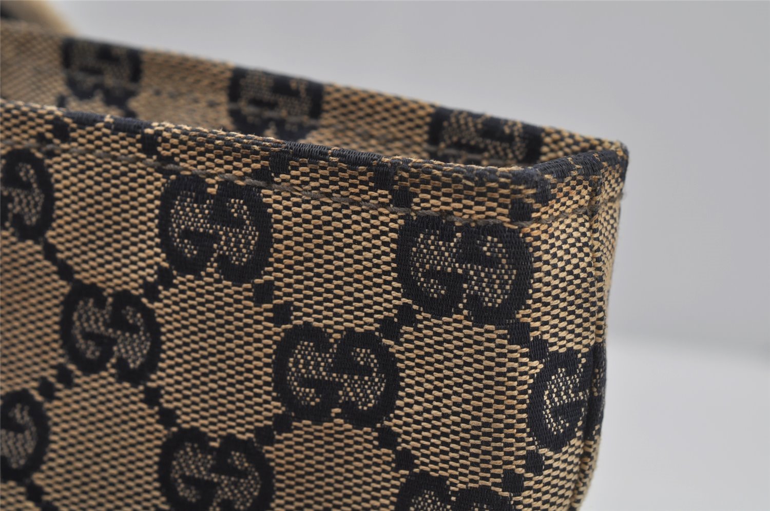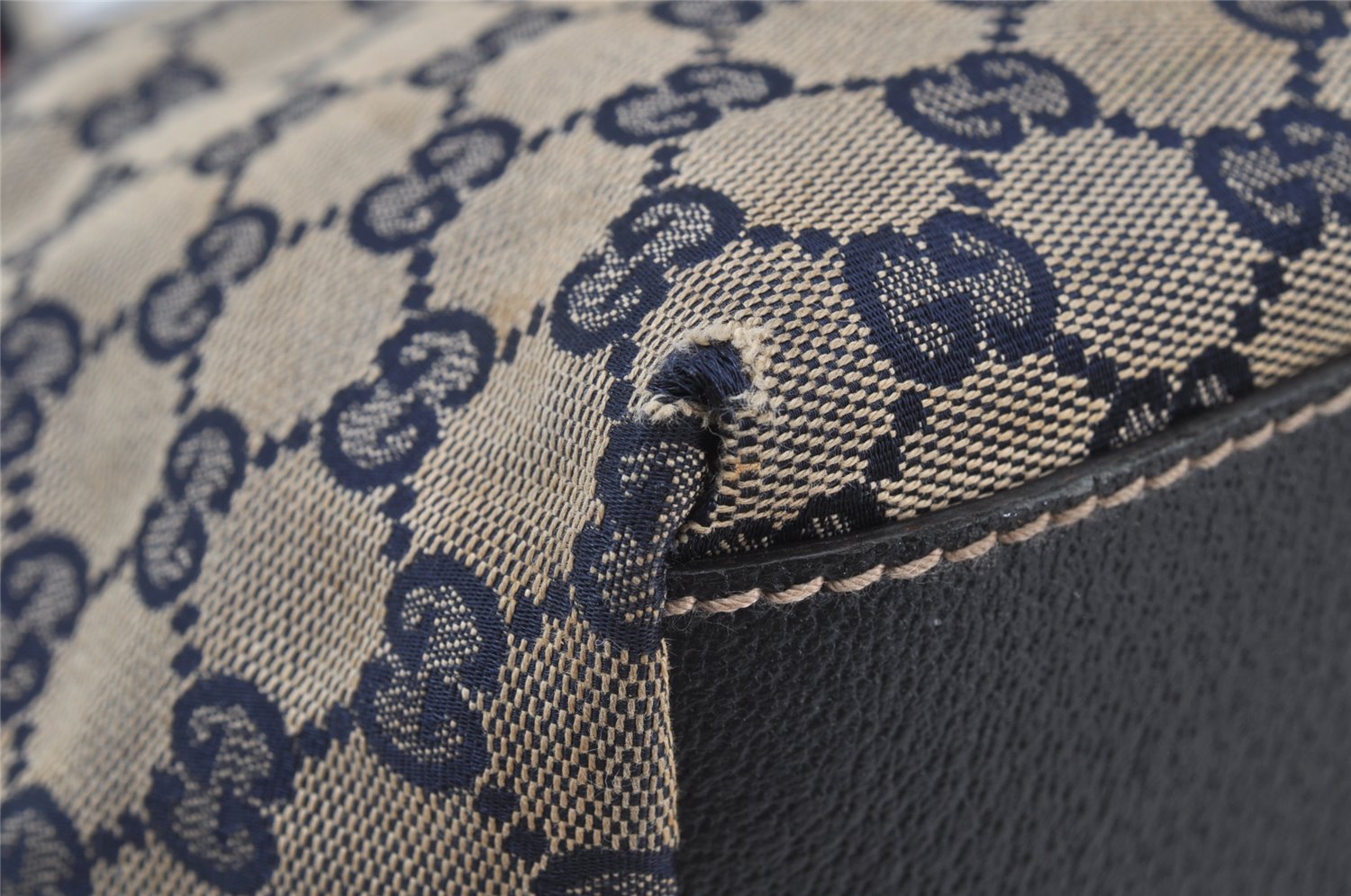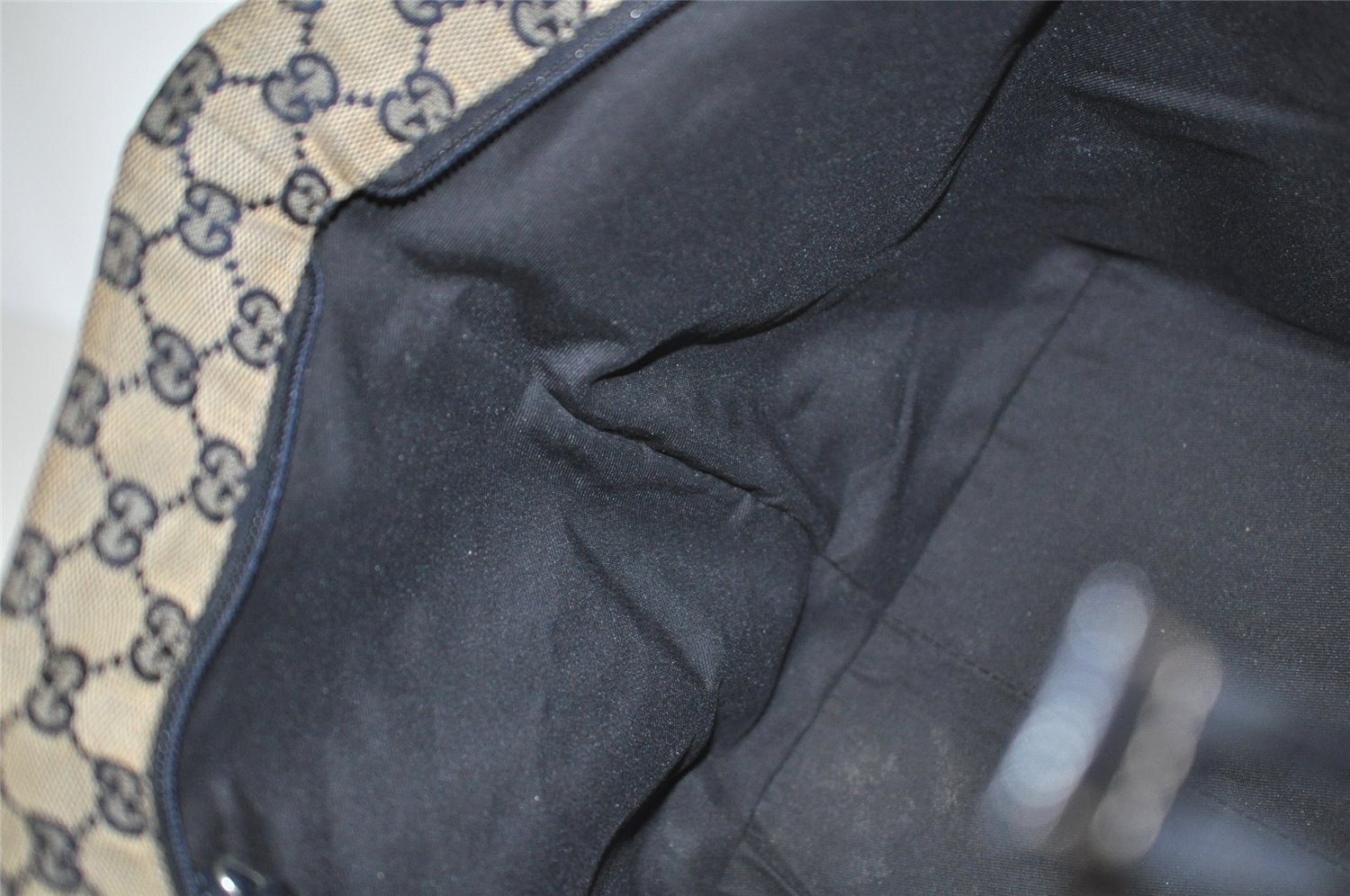 | Authentic GUCCI Sherry Line Tote Bag GG Canvas Leather 131230 Navy Blue | |
