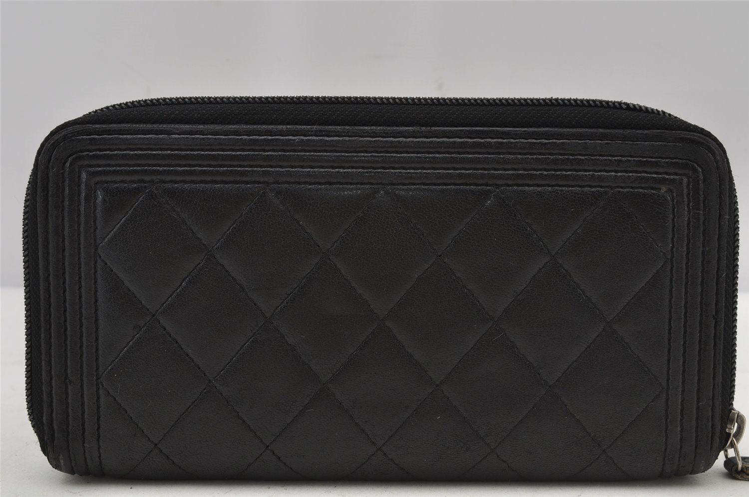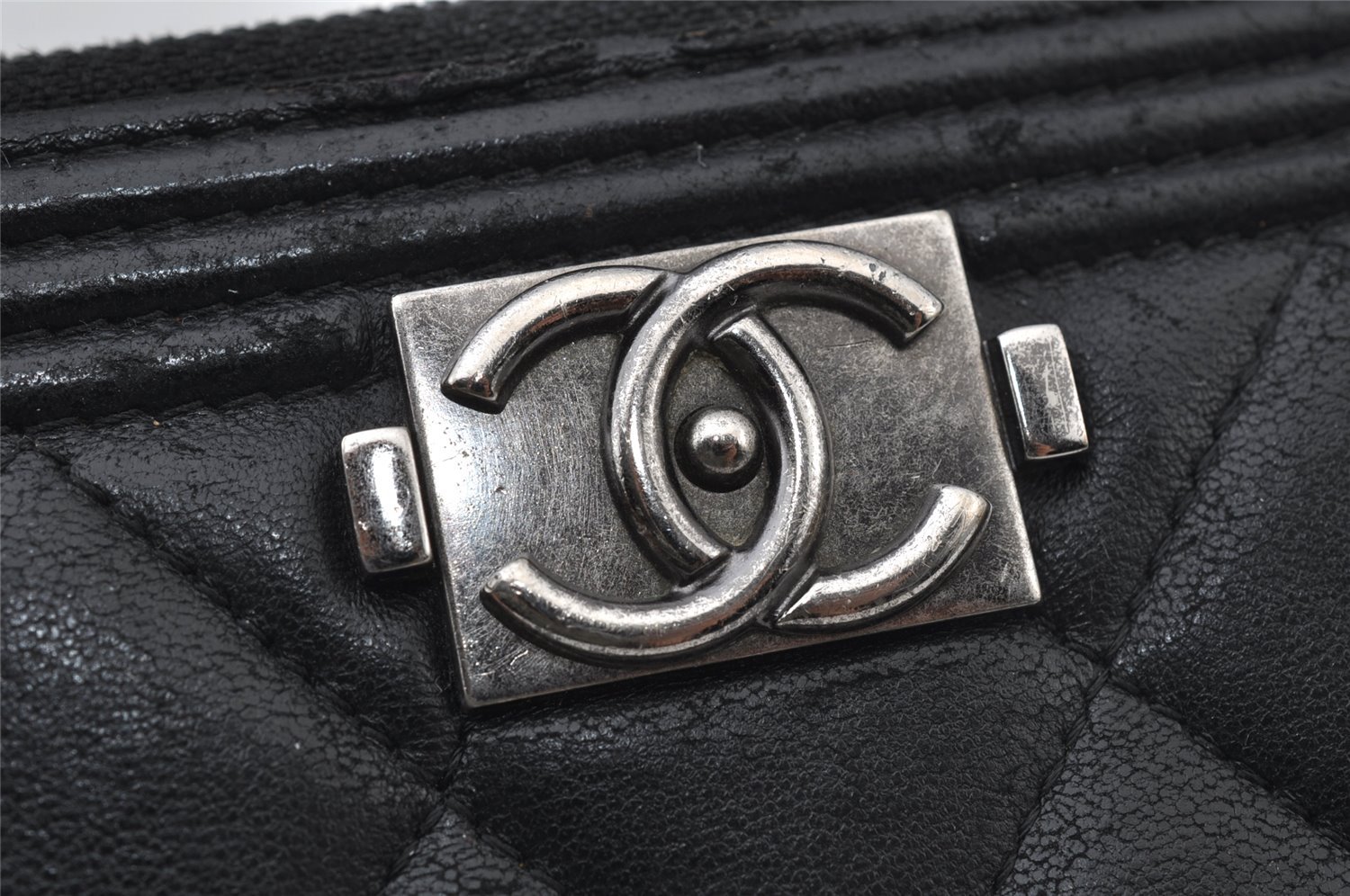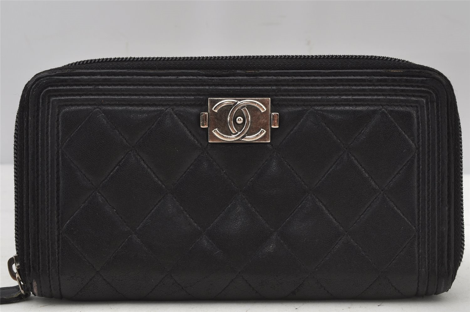 | Authentic CHANEL BOY CHANEL Lamb Skin Matelasse Long Wallet Purse Black | |
