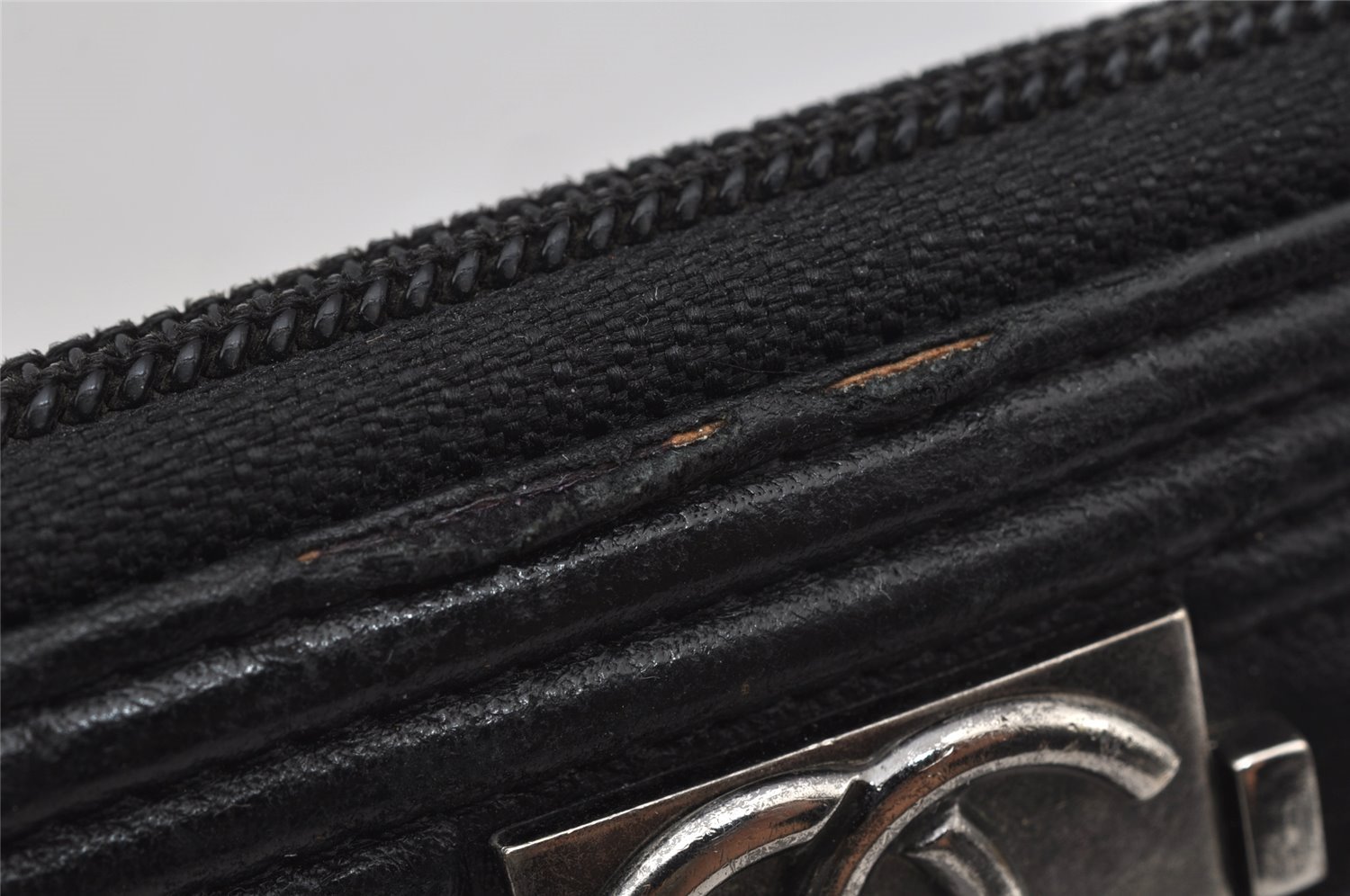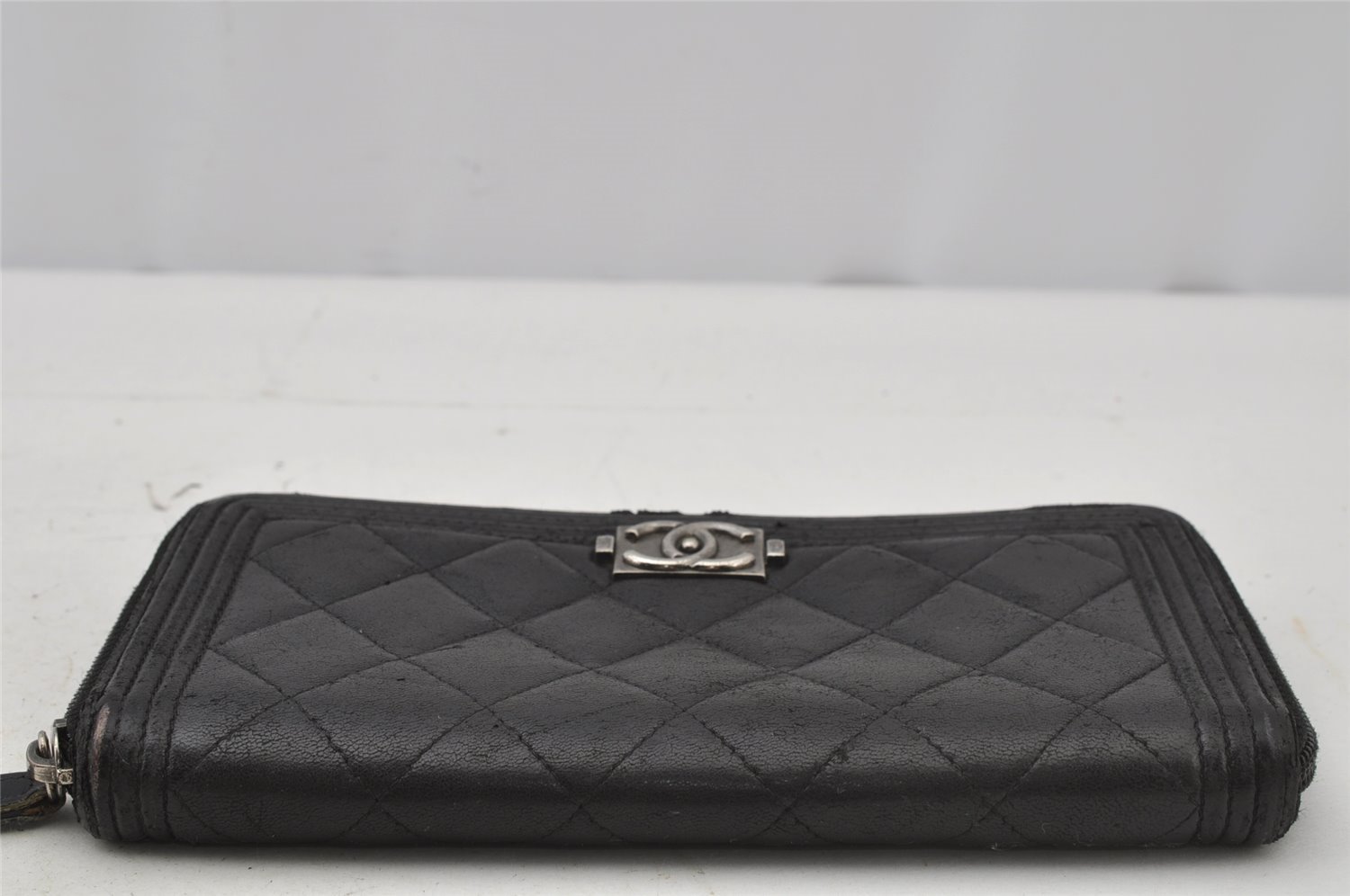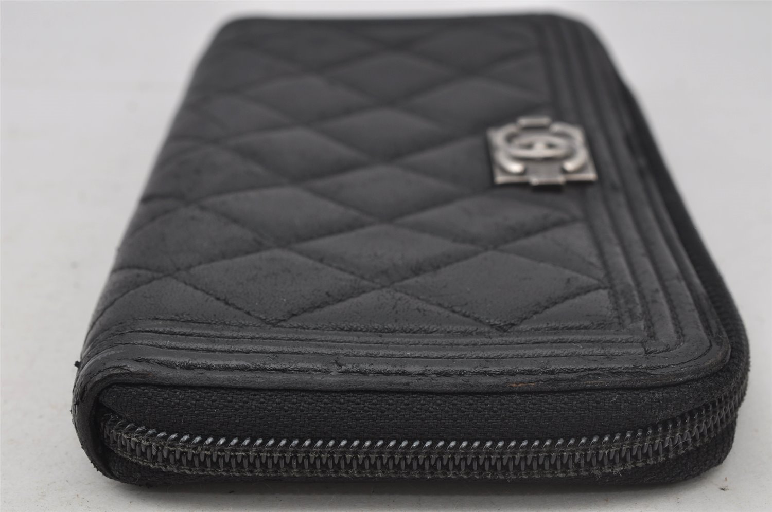 | Authentic CHANEL BOY CHANEL Lamb Skin Matelasse Long Wallet Purse Black | |