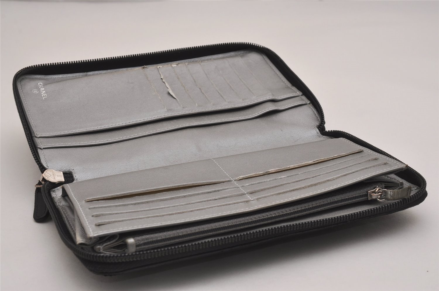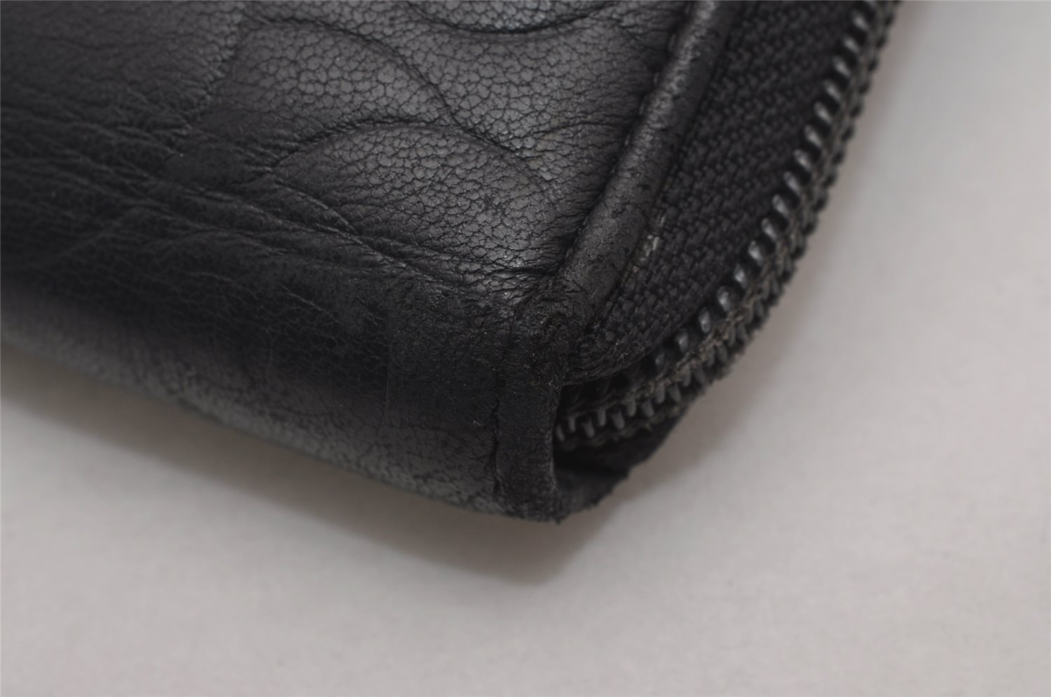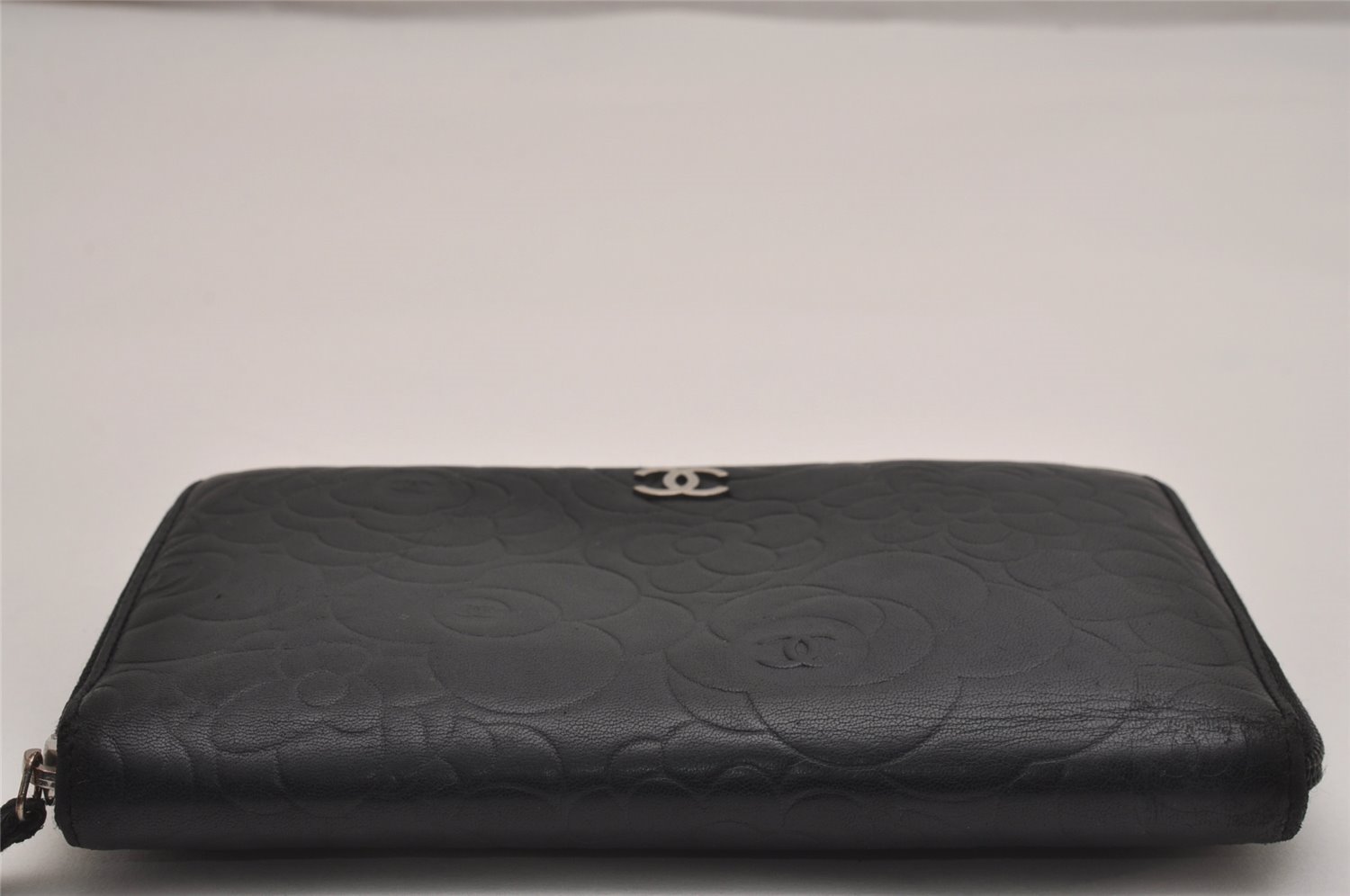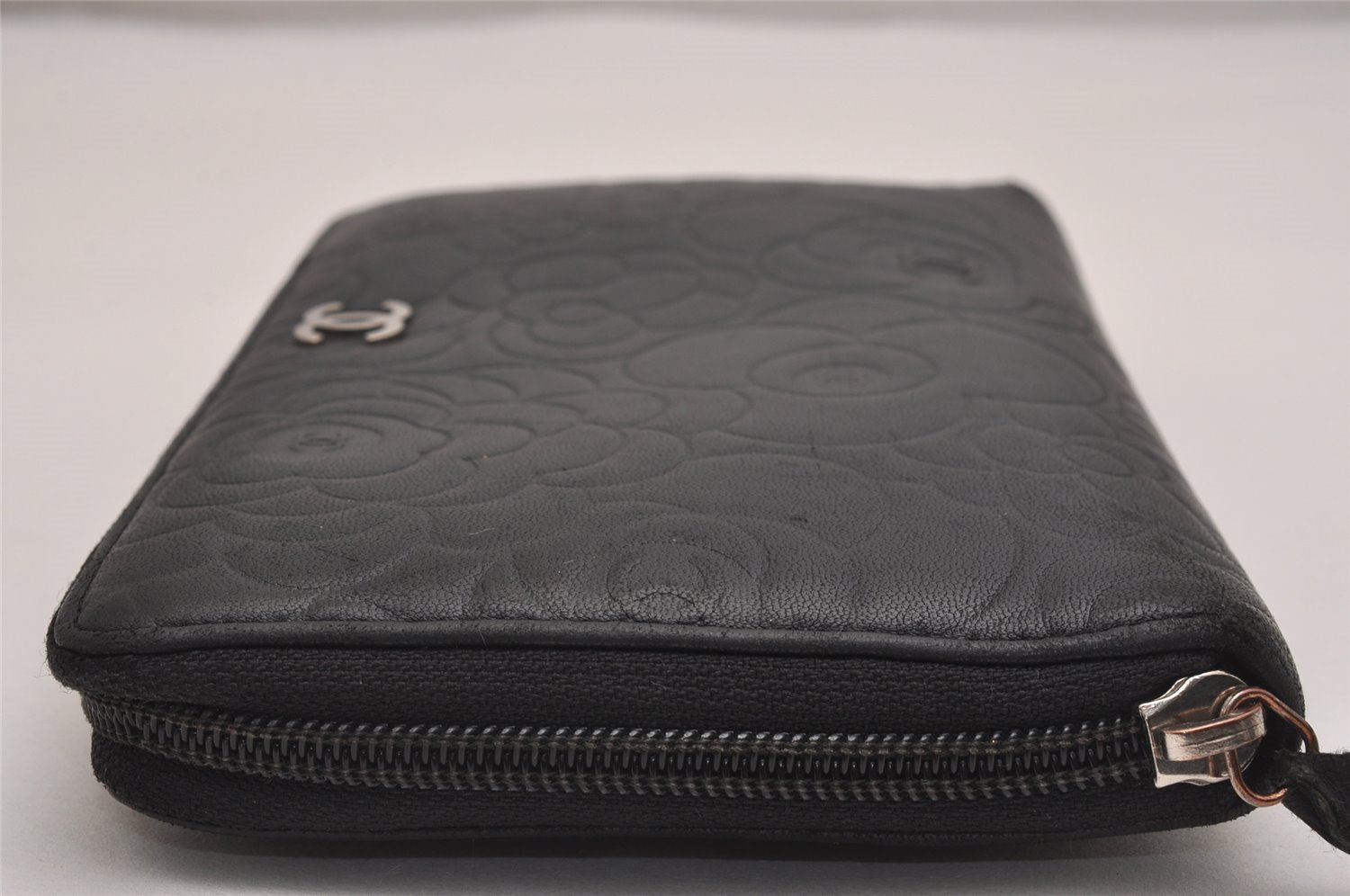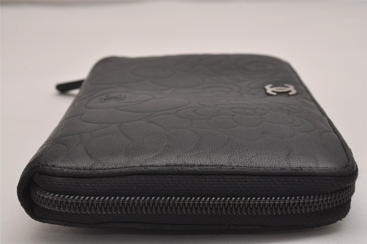 | Authentic CHANEL Camellia Calf Skin Round Zip Long Wallet Purse Black | |