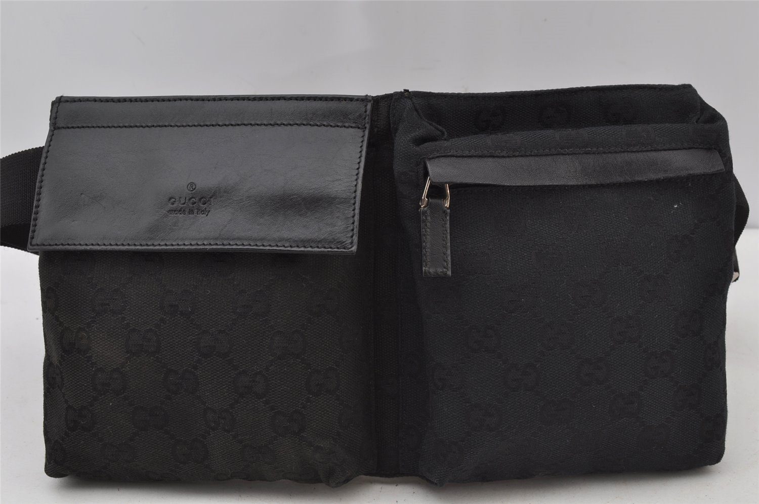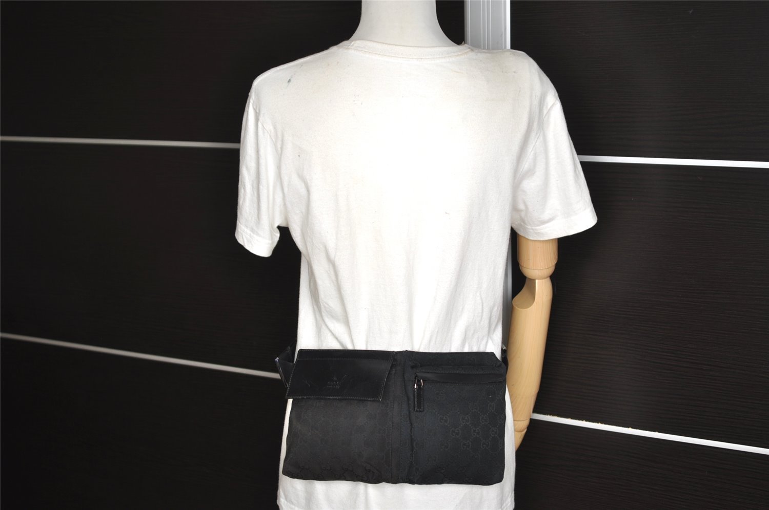 | Authentic GUCCI Waist Body Bag Purse GG Canvas Leather 0181621 Black | |