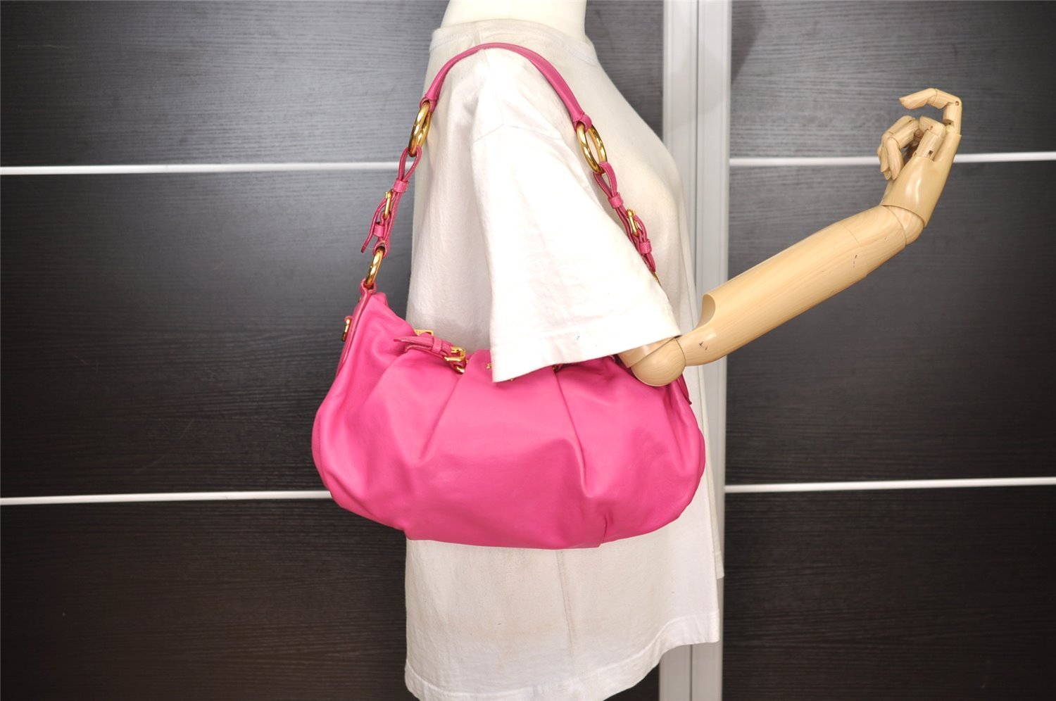 | Authentic PRADA Vintage Leather Shoulder Hand Bag Purse Pink | |